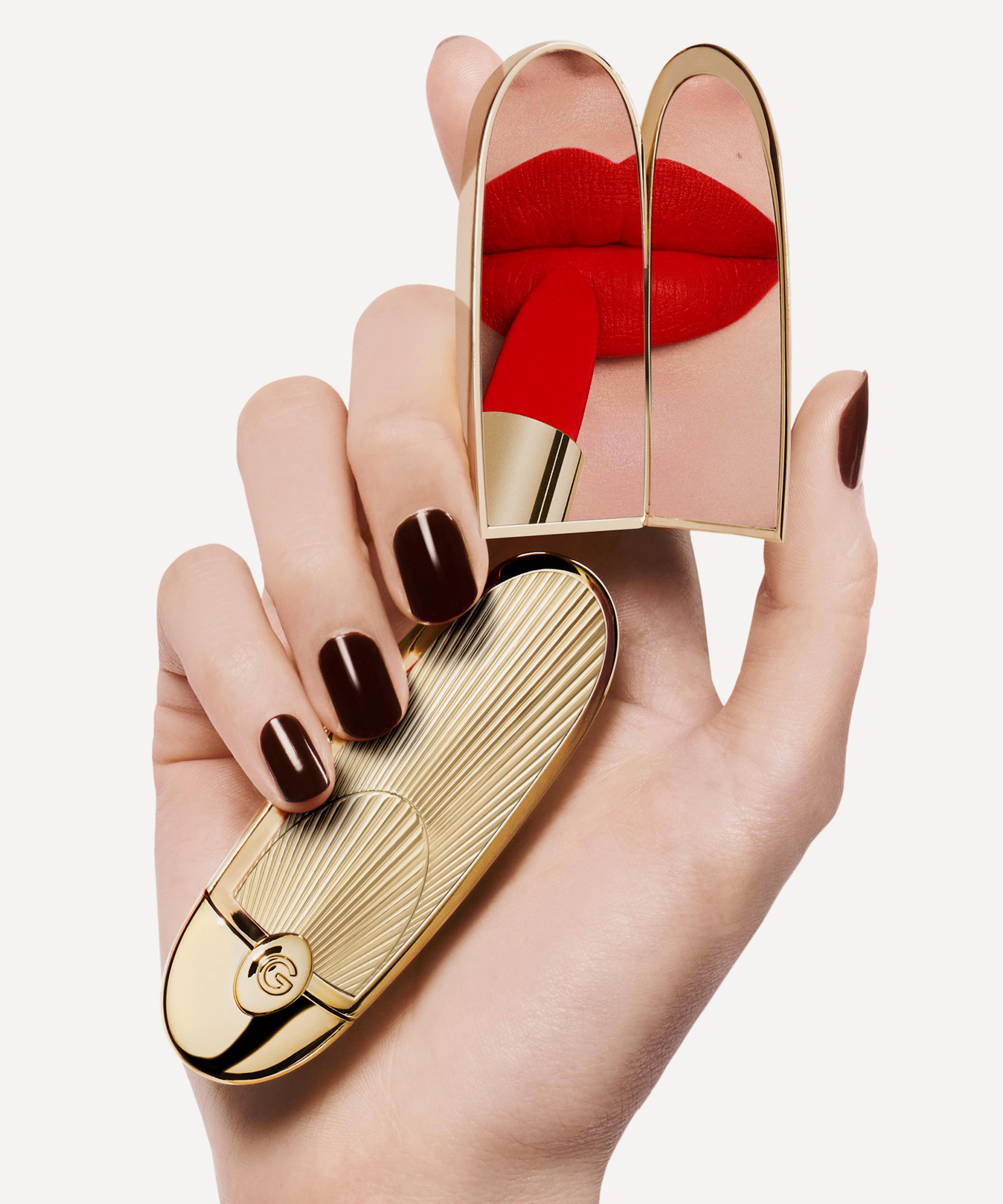 Bringing a touch of personality to your beauty kit, GUERLAIN's Rouge G Refillable Lipstick Jewel Case opens up to reveal a secret double mirror.