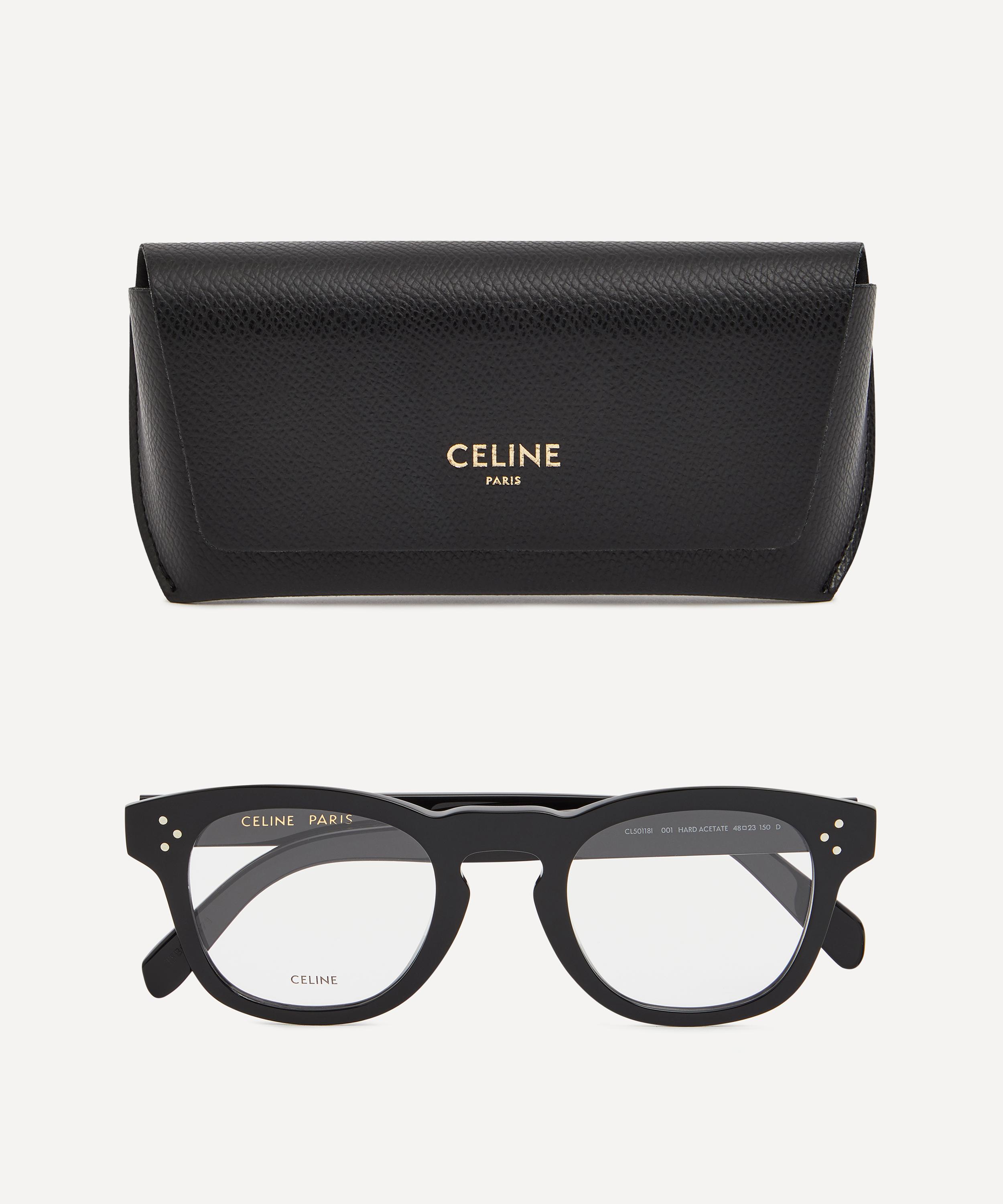 Innovatively styled and impeccably crafted, these round-frame optical glasses from Celine pay homage to the esteemed fashion house’s chic Parisian aesthetic. Crafted from glossy black acetate, they’re detailed with gold-tone Celine branding to the temples for a refined finish.