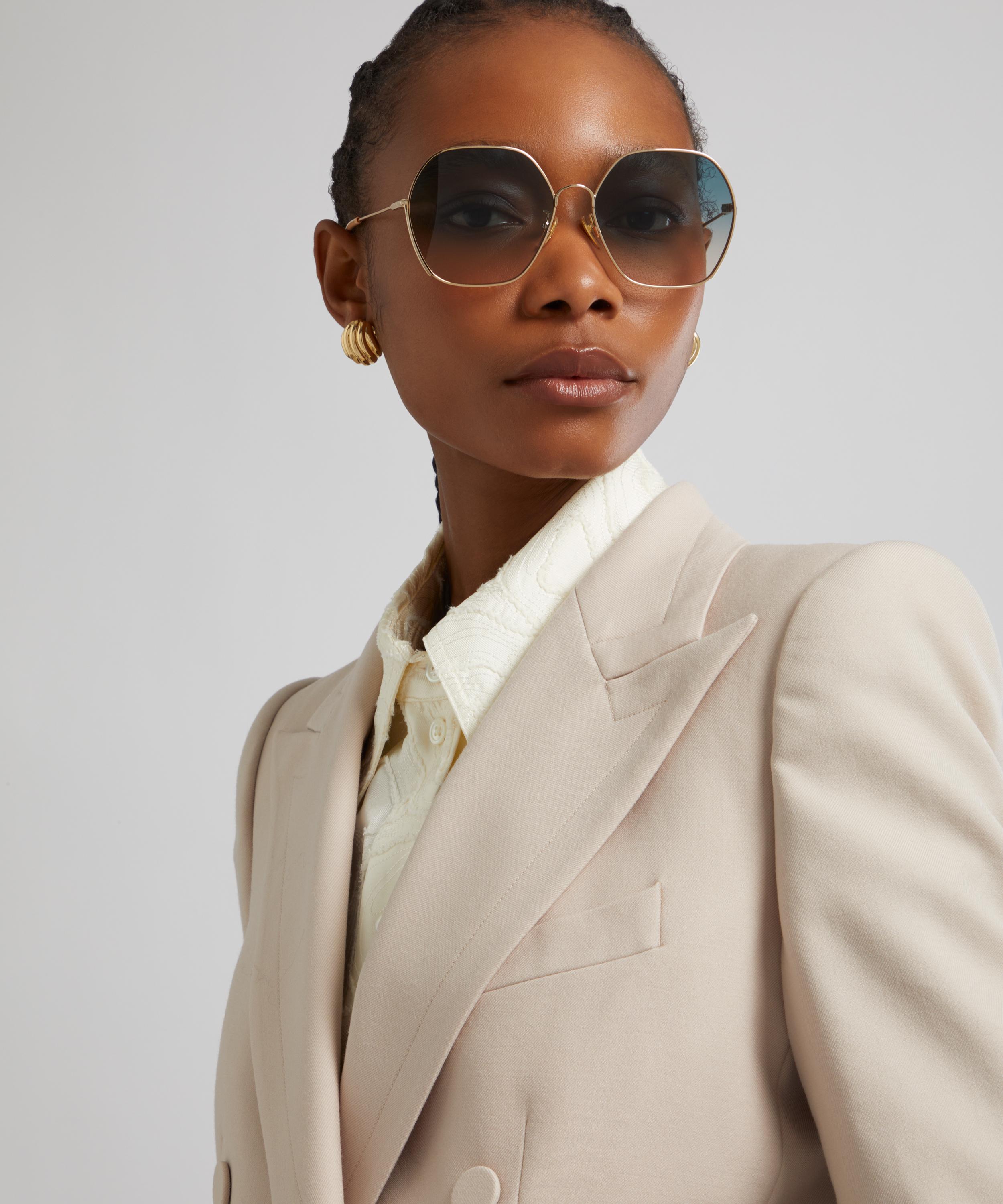 A statement-making pair from Chloé, these round sunglasses will add a stylish finishing touch to your look. Featuring glamourous, hexagon-shaped frames made from gold-tone metal and green gradient lenses, they feature a slim profile, adjustable nose pads and are elegantly punctuated with the brand’s logo at the temples.