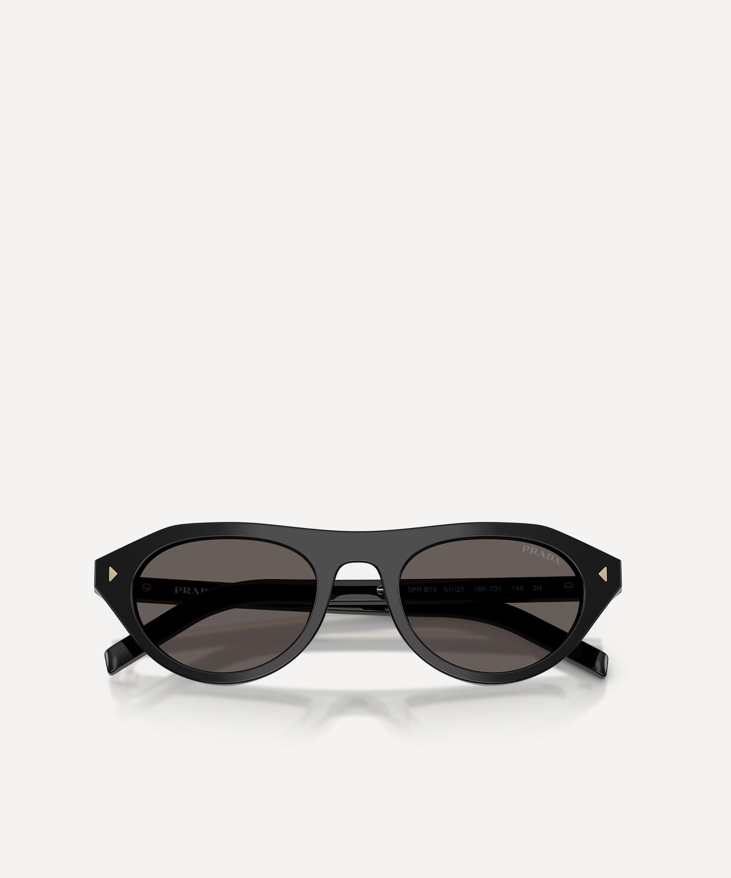 Invigorate any attire with Prada’s round sunglasses for a highly contemporary flair. Expertly crafted from premium acetate in a black colourway, this stylish pair feature an irregular silhouette with a comfortable saddle nose bridge and dark-grey lenses to give you a clearer view on sunny days whilst protecting your eyes from UV light. Finished with a subtle brand logo at the temple for a punctuating finish, throw them on whenever you need a statement boost.