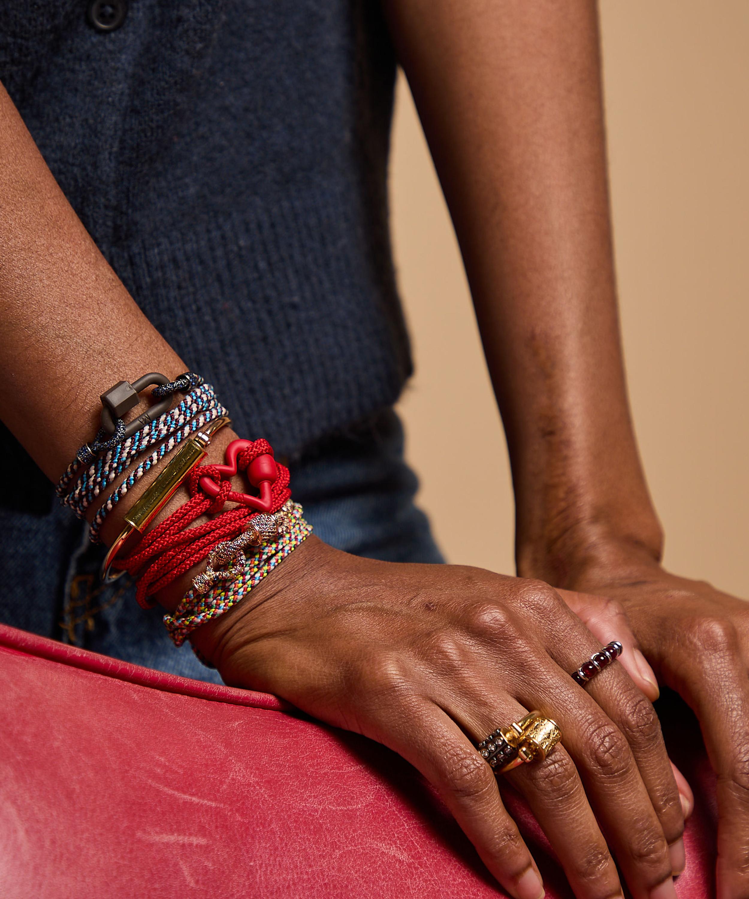 Marla Aron approaches jewellery with a philosophy of functional maximalism. What began in 2012, with a reinvention of the classic carabiner lock, sparked a rapid expansion into a collection of rings, bracelets, convertible earrings, charms and other distinctive pieces – many of which hold US patents. Guided by the belief that jewellery’s sole purpose is to bring joy to as many people as possible, the brand’s playful and personal perspective, has carved out a unique place in the jewellery world, attracting collectors of all ages and identities.