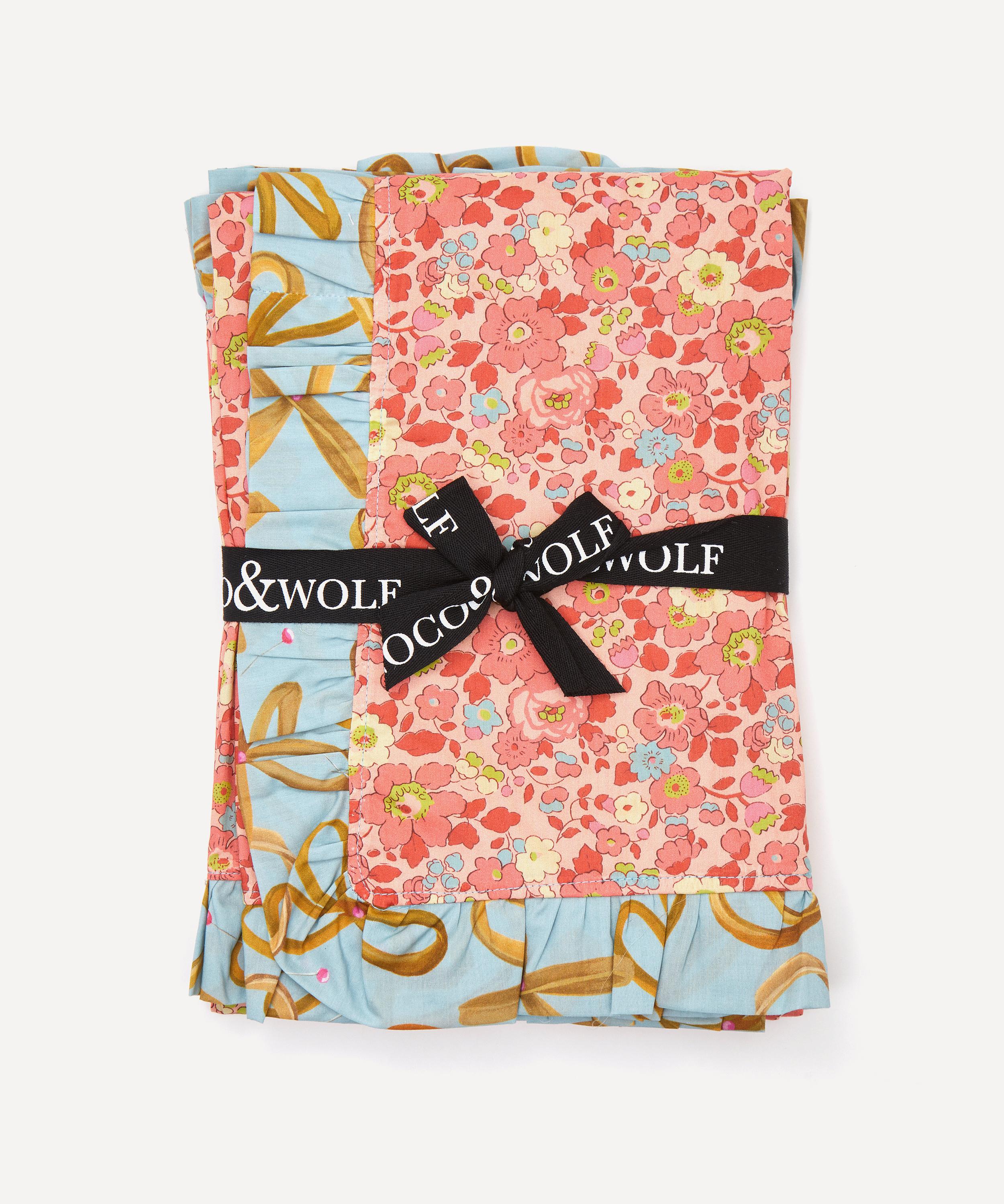 Somerset-born bedding brand Coco & Wolf is renowned for its Liberty print textiles, crafted from our inimitable Tana Lawn™ cotton - a modern masterpiece of fabric production that Liberty has been perfecting for over 100 years. Made for a blissful slumber, these two pillowcases are trimmed with a delicate frilled hem and dressed in Liberty Fabrics’ Rubberband Man and Betsy prints - fantastical, energetic patterns created in collaboration with visionary set designer Shona Heath for the Liberty Fabrics Design Series. Coordinate with other pieces from the collection to infuse a touch of print into an otherwise, subdued sleeping space.