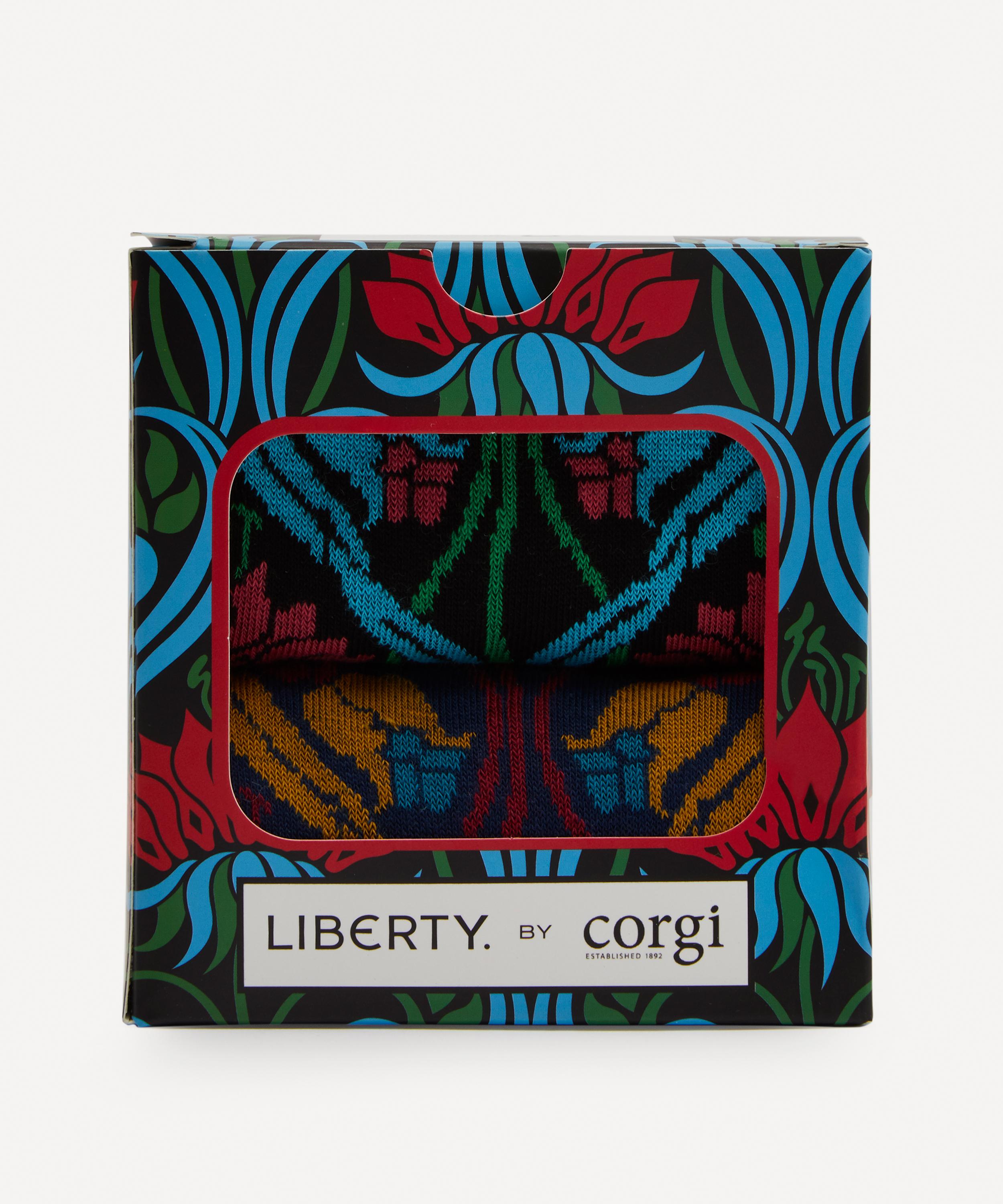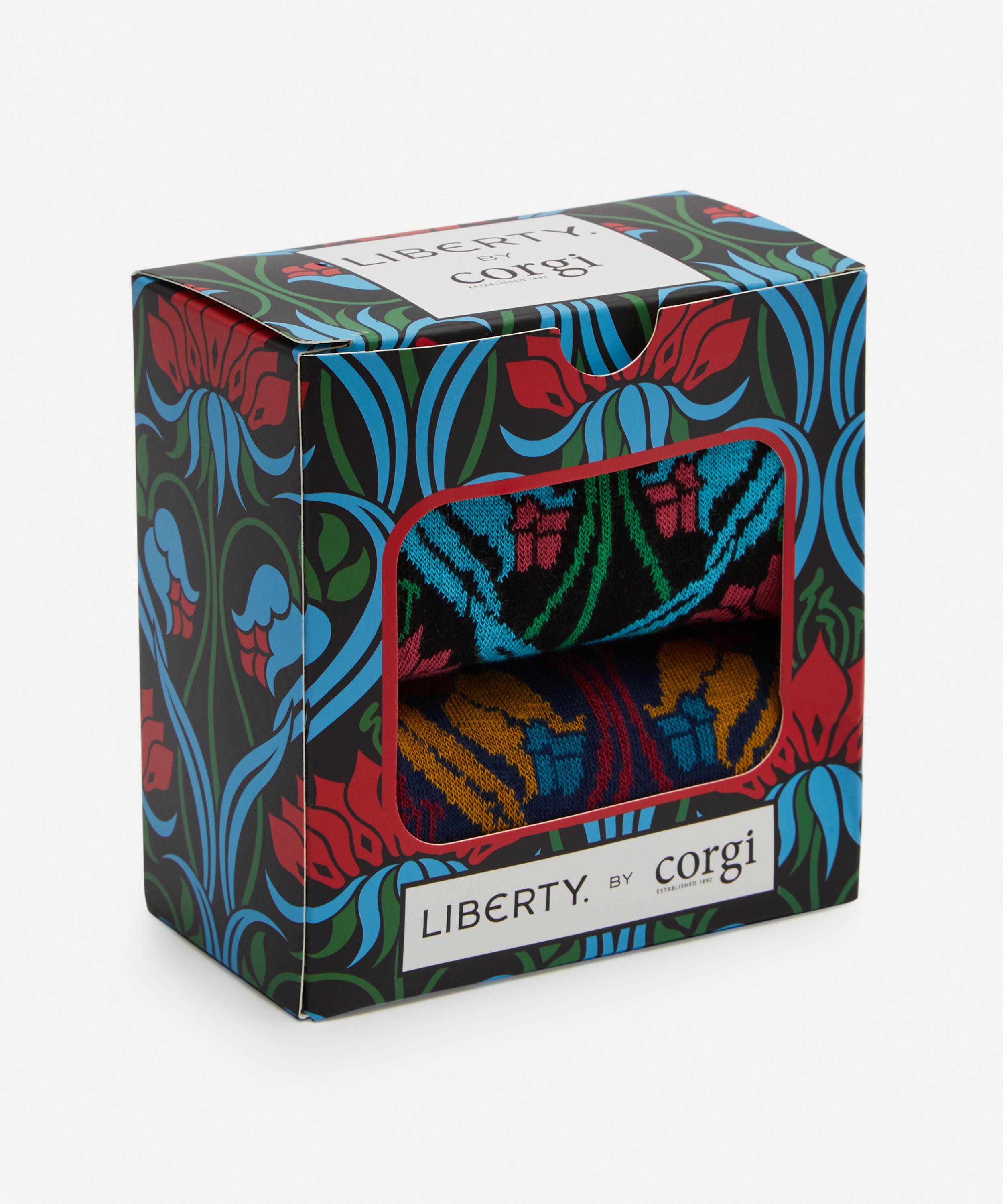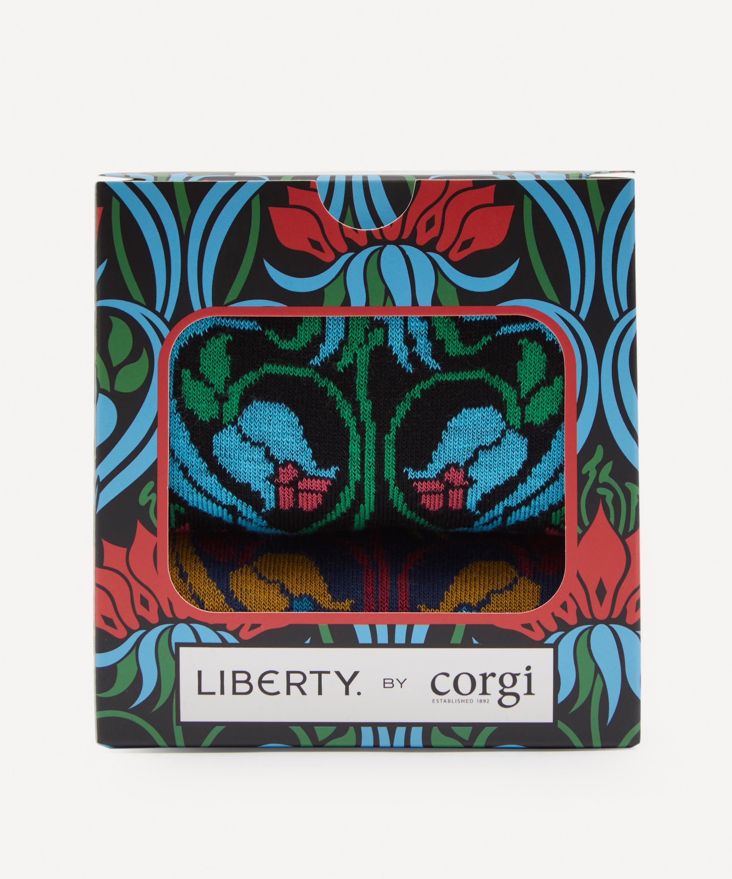 Crafting luxury socks since 1892, Corgi introduces these cotton-blend designs woven with an iconic Liberty print.