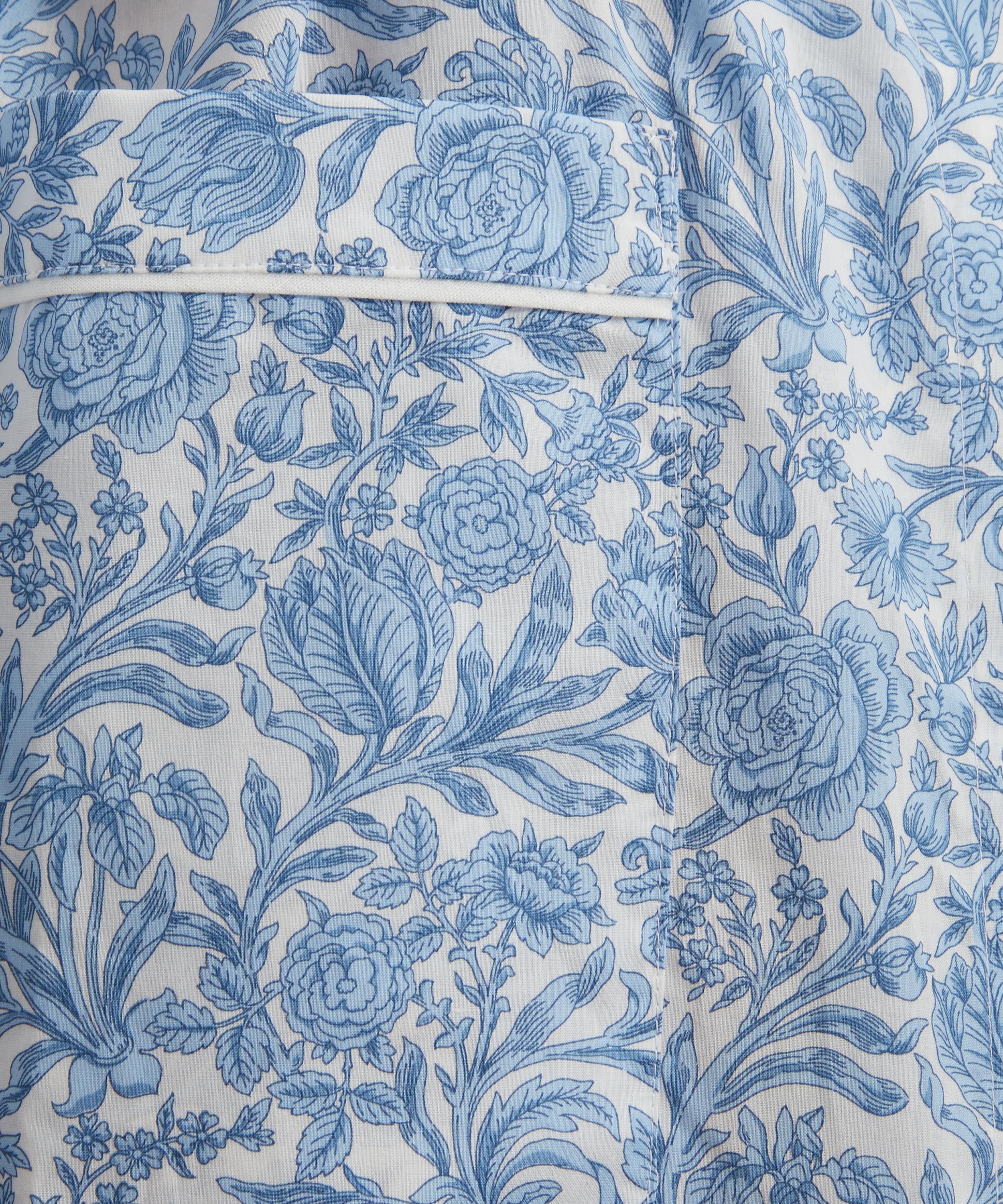 Bringing a touch of opulence to your nightwear edit, this robe showcases our Sambourne print. An ornamental monochrome floral print with roses, lilies, pinks, tulips, and pomegranates hiding amongst its trailing foliage. Sambourne was originally created for Liberty in 1971 as a large-scale, hand painted artwork.