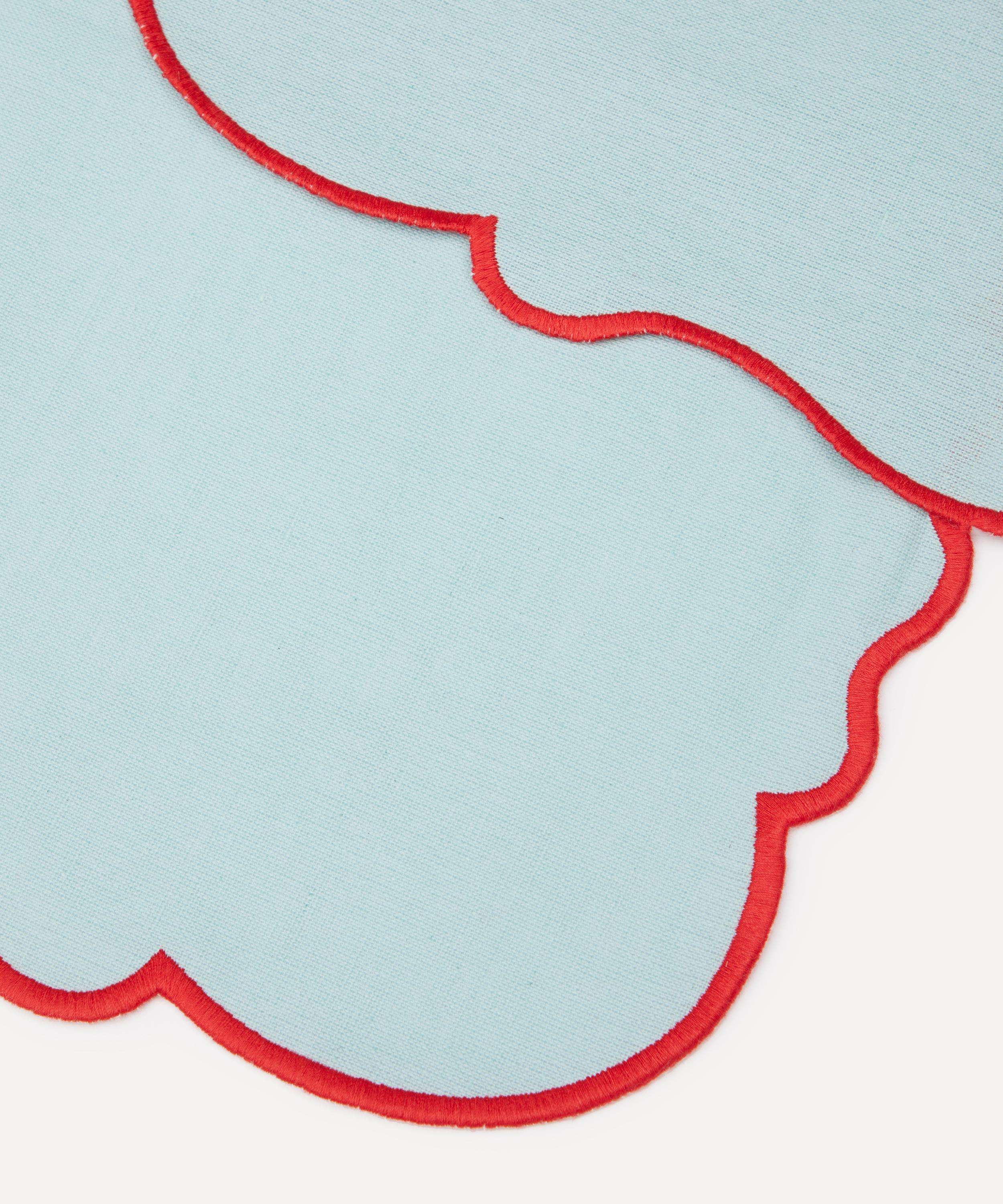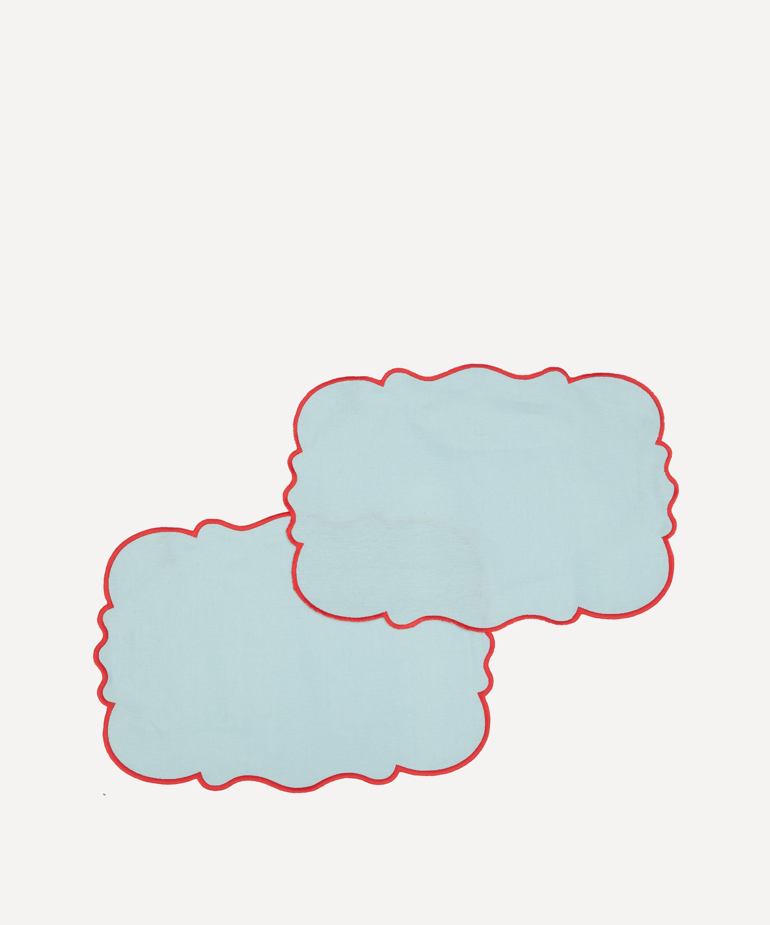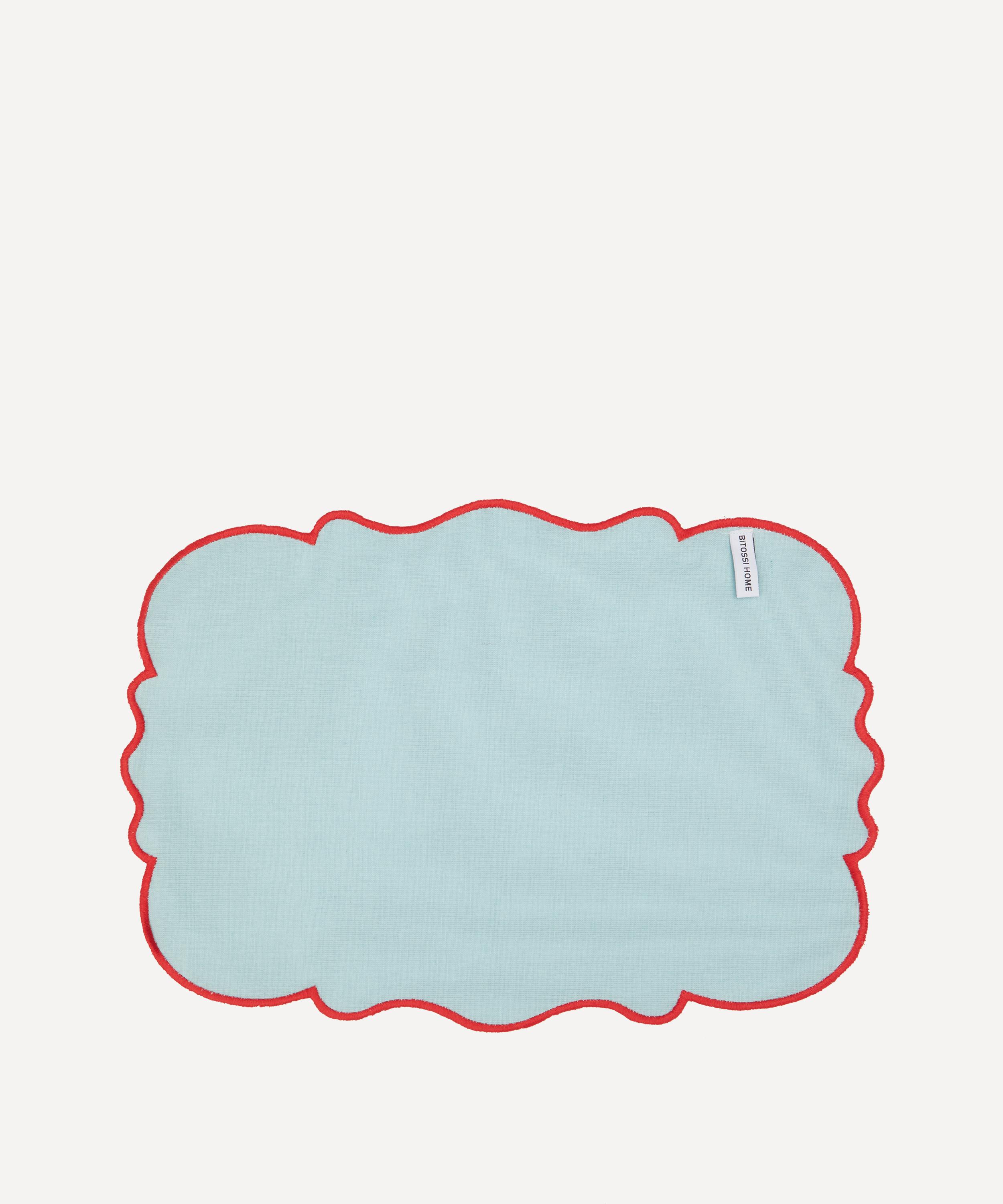 Bring life and vibrancy to your tablescape with this set of scalloped placemats from Bitossi. Evoking rich colour and Italian heritage, this set includes two cotton-linen placemats, each featuring a scalloped design in a light blue colourway with a red rim, perfect for everyday dining or elevated gatherings. Team them with crockery and glassware from the brand to create an inviting and unforgettable tablescape, bound to set the atmosphere.