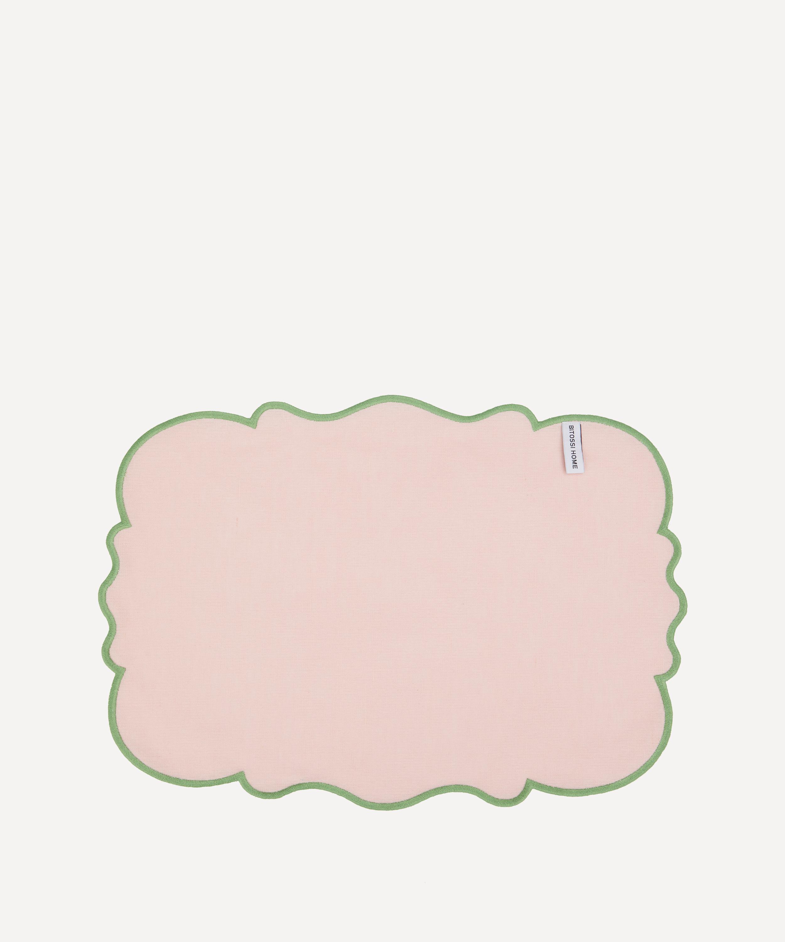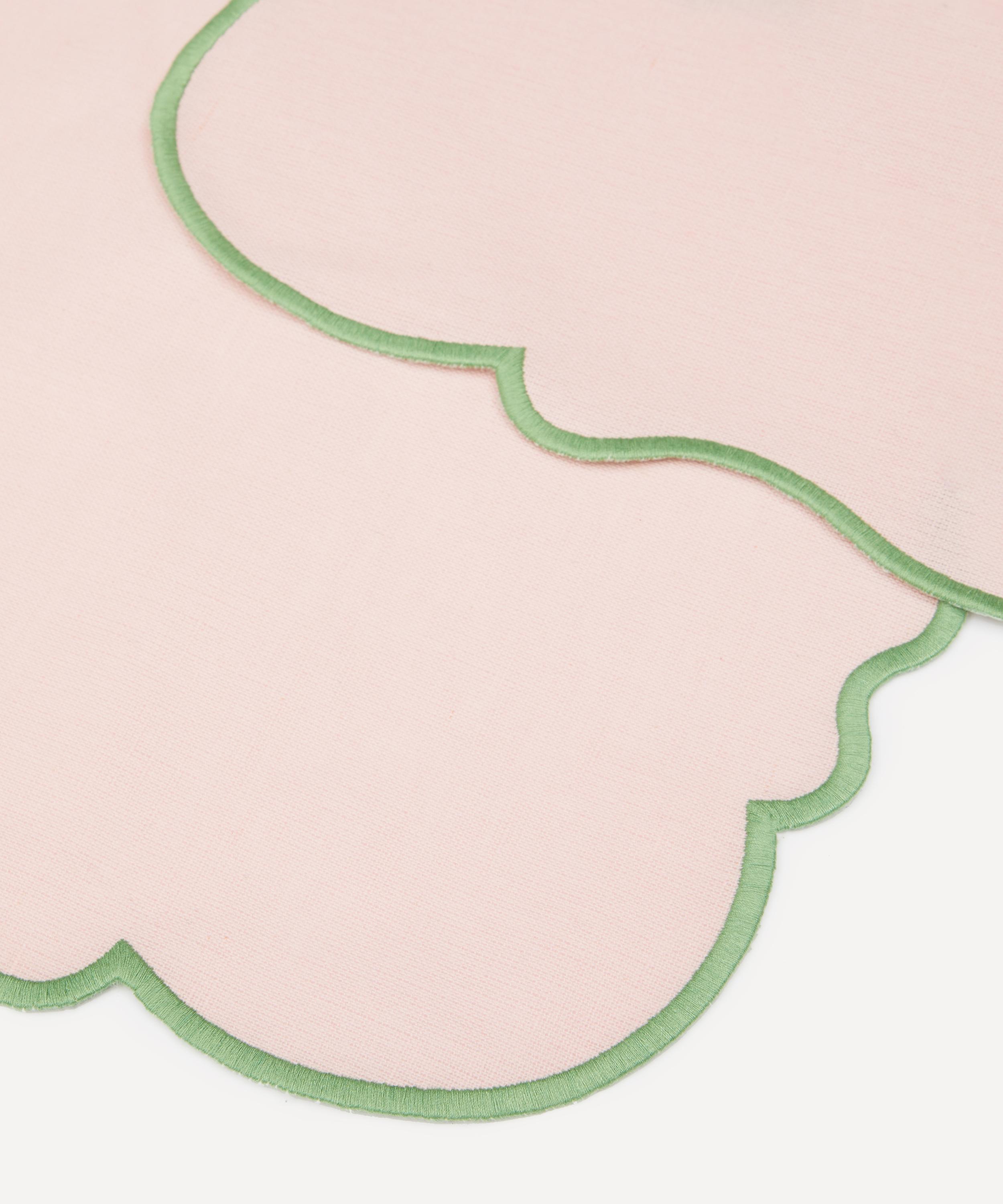 Bring life and vibrancy to your tablescape with this set of scalloped placemats from Bitossi. Evoking rich colour and Italian heritage, this set includes two cotton-linen placemats, each featuring a scalloped design in a pink colourway with a green rim, perfect for everyday dining or elevated gatherings. Team them with crockery and glassware from the brand to create an inviting and unforgettable tablescape, bound to set the atmosphere.