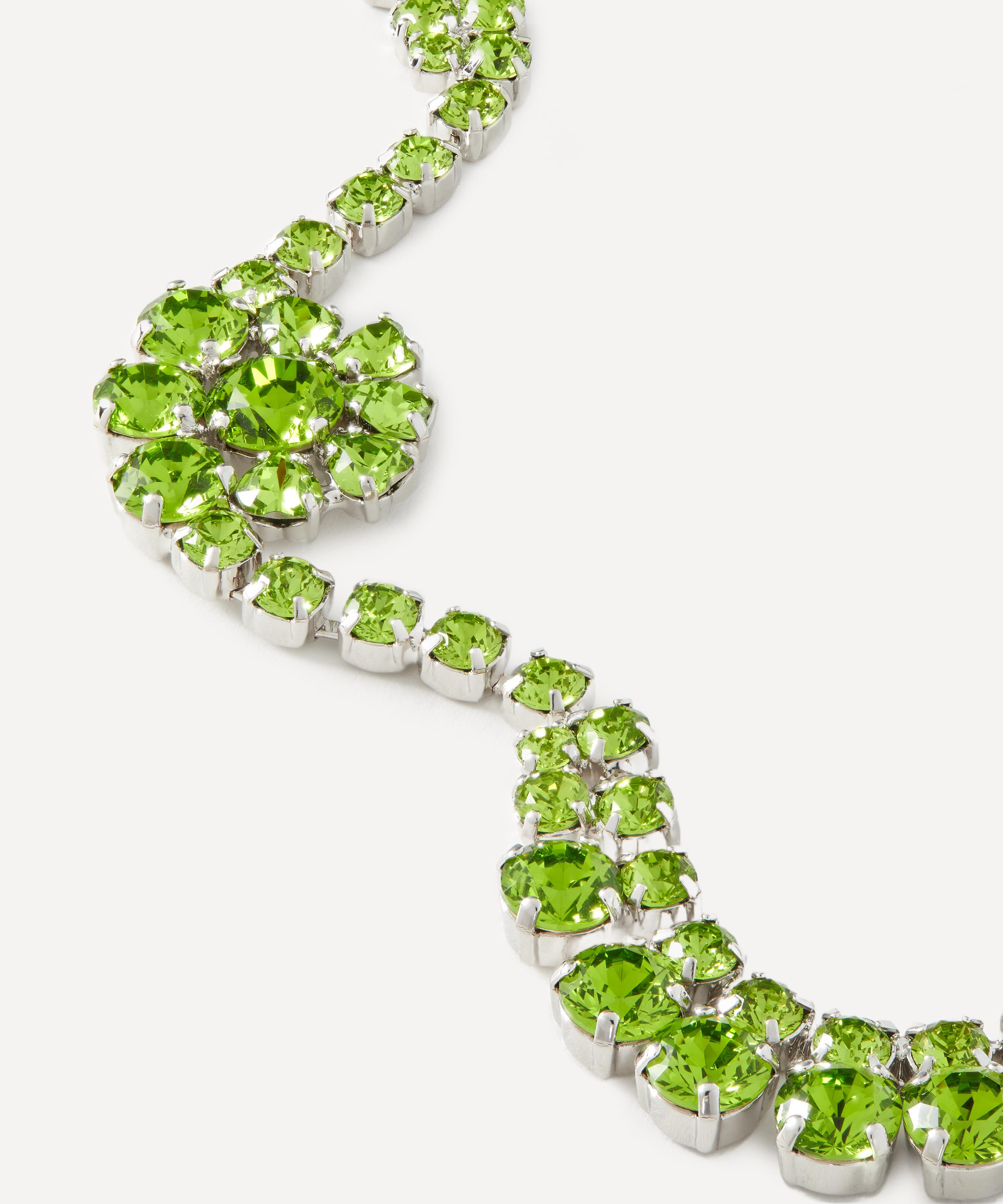 The design is composed bright green crystals – reminiscent of flower buds – beautifully arranged in a scalloped construction that lays flat just above the collarbone. Perfectly complementing the brand’s standout dresses, they can be styled with the matching Heartbloom Hair Clip and Heartbloom Drop Earrings for a coordinating look.