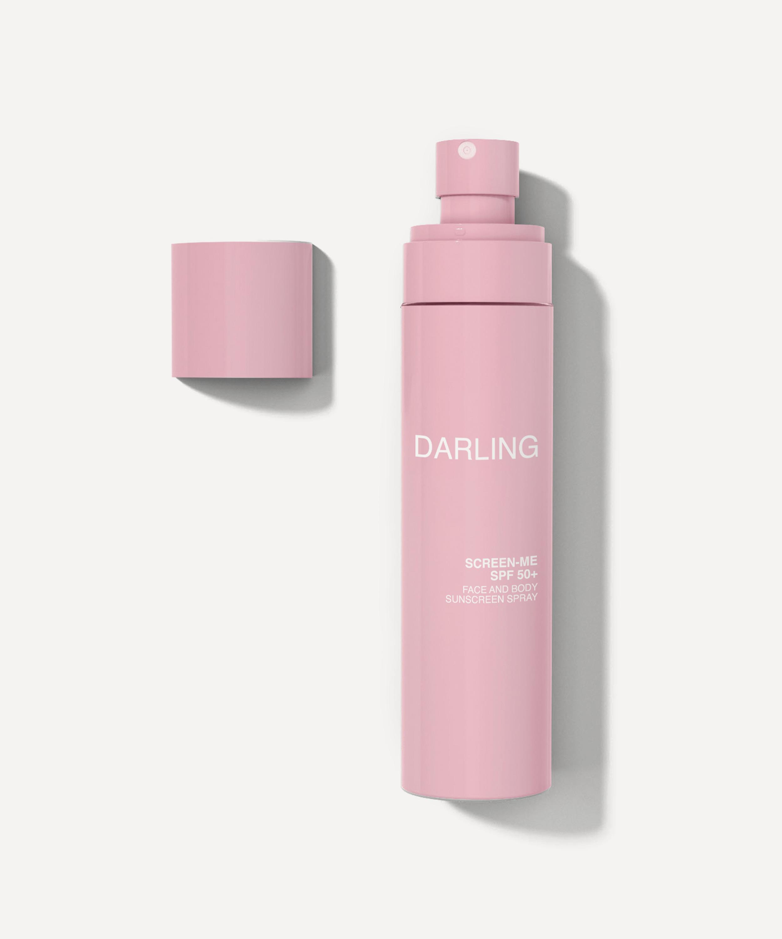 Fusing next-generation sun protection with advanced skin care benefits, Darling's Screen-Me SPF 50+ is a delightfully scented, lightweight sunscreen spray for the face and body.