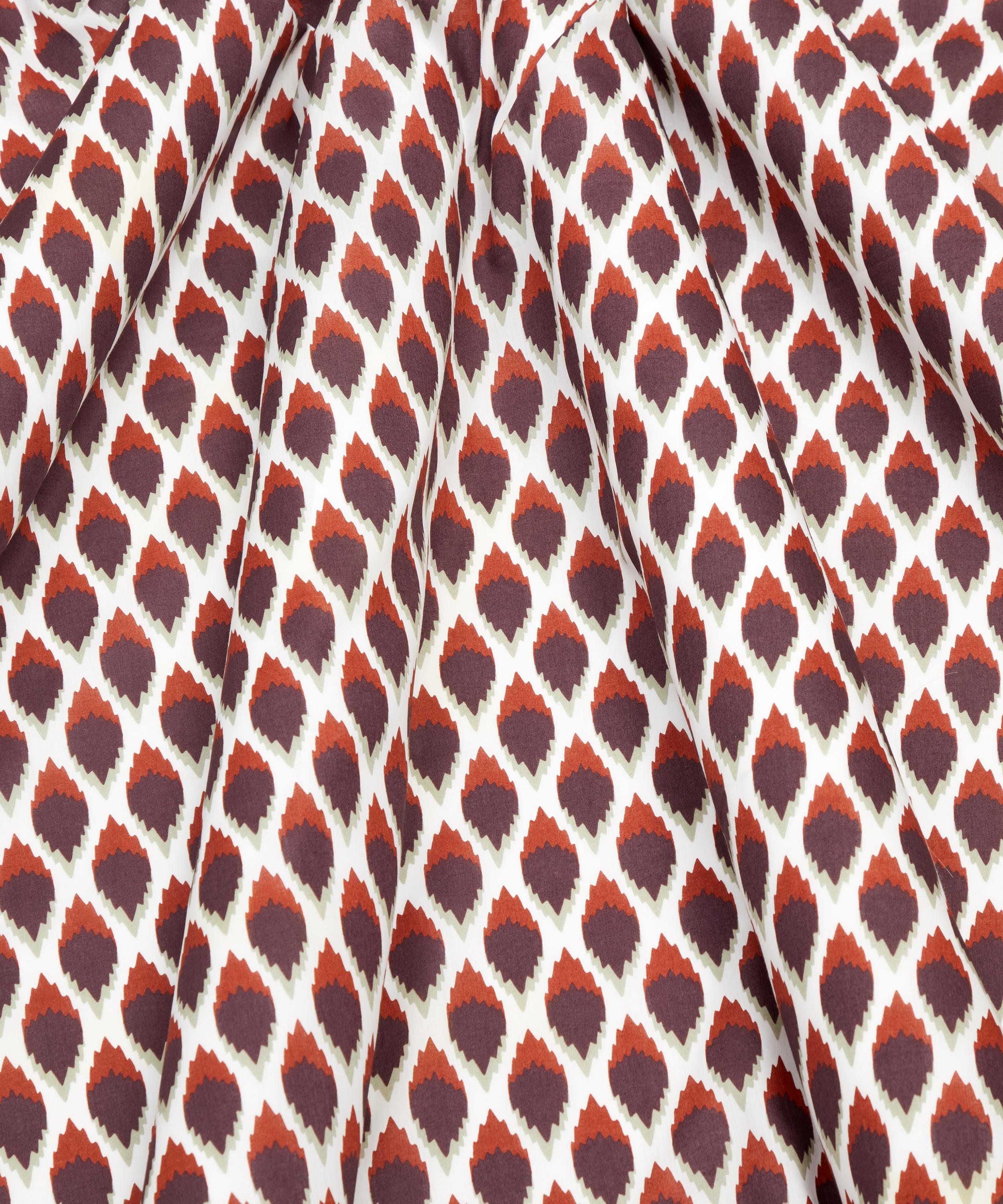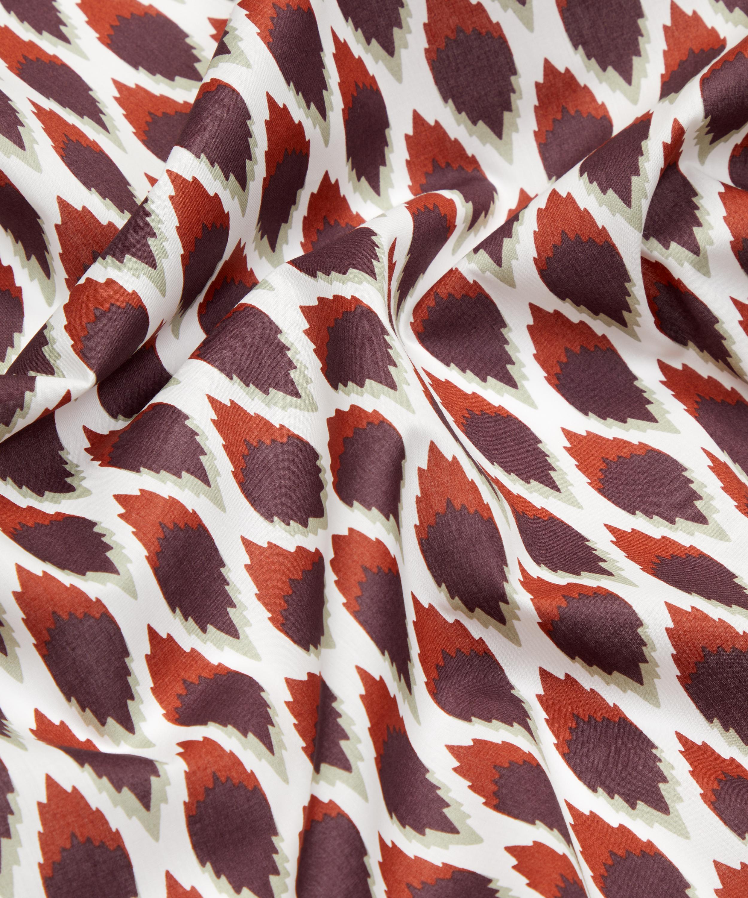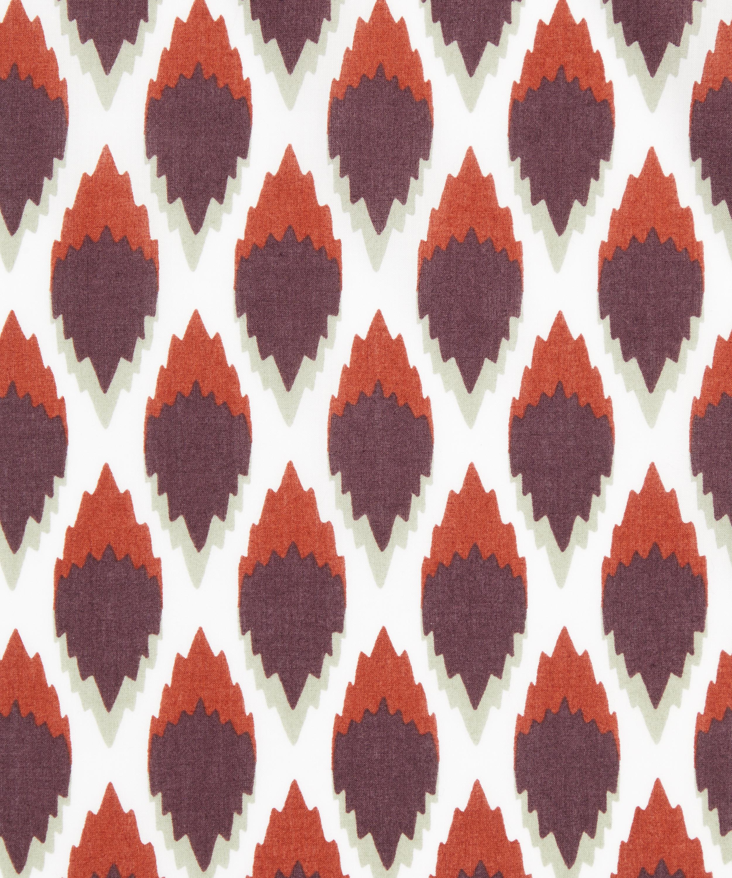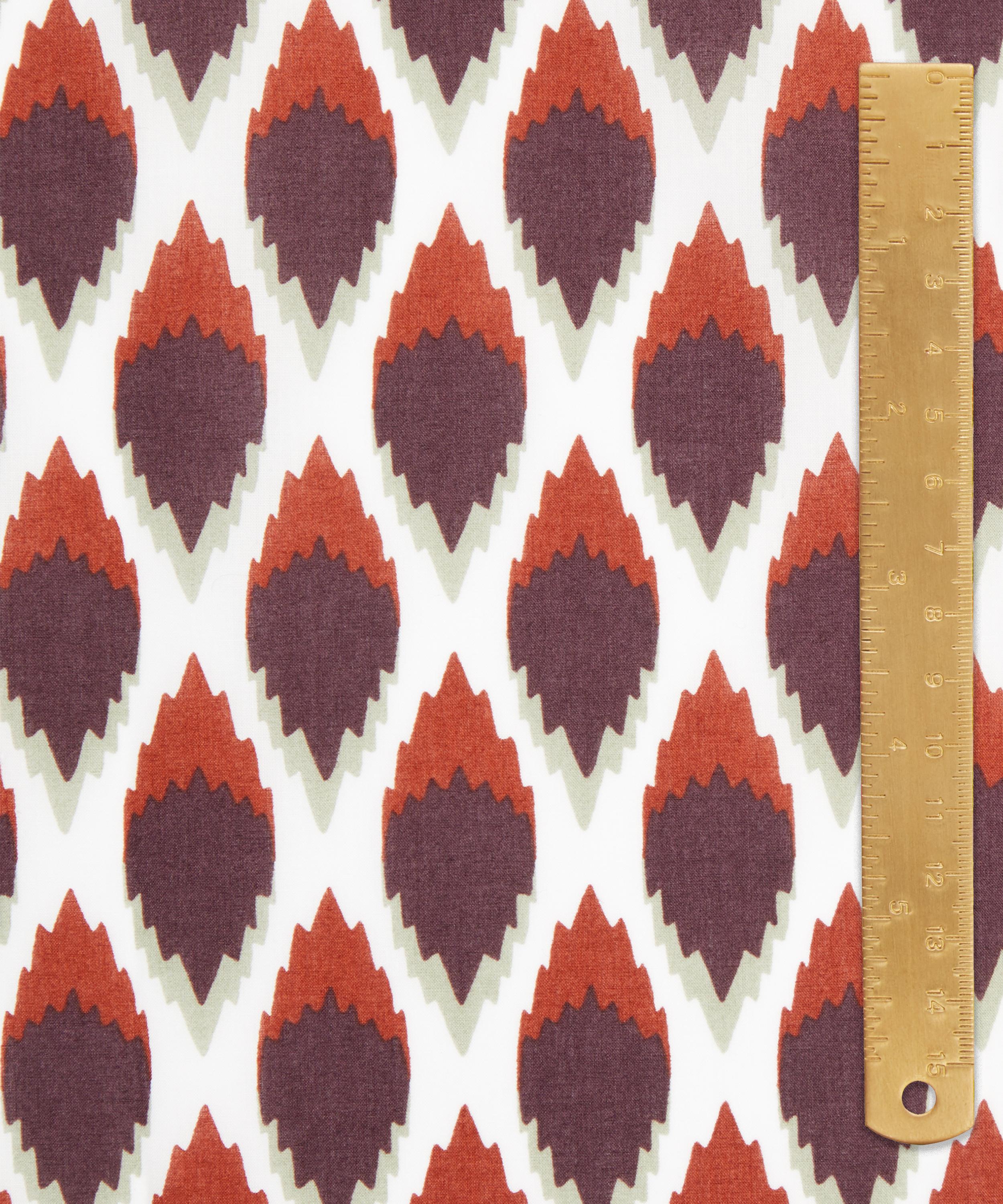 Redrawn from a tiny fabric swatch discovered in the Liberty archive, this bold and dramatic geometric is a tribute to the humble seedling, featuring a series of ikat style rhombus structures. This print is part of the Floral Focus narrative of the AW24 collection – inspired by countless artists who have attempted to tame their unruly blooms through the genre of still life, this series is a true celebration of organic forms and flourishes.