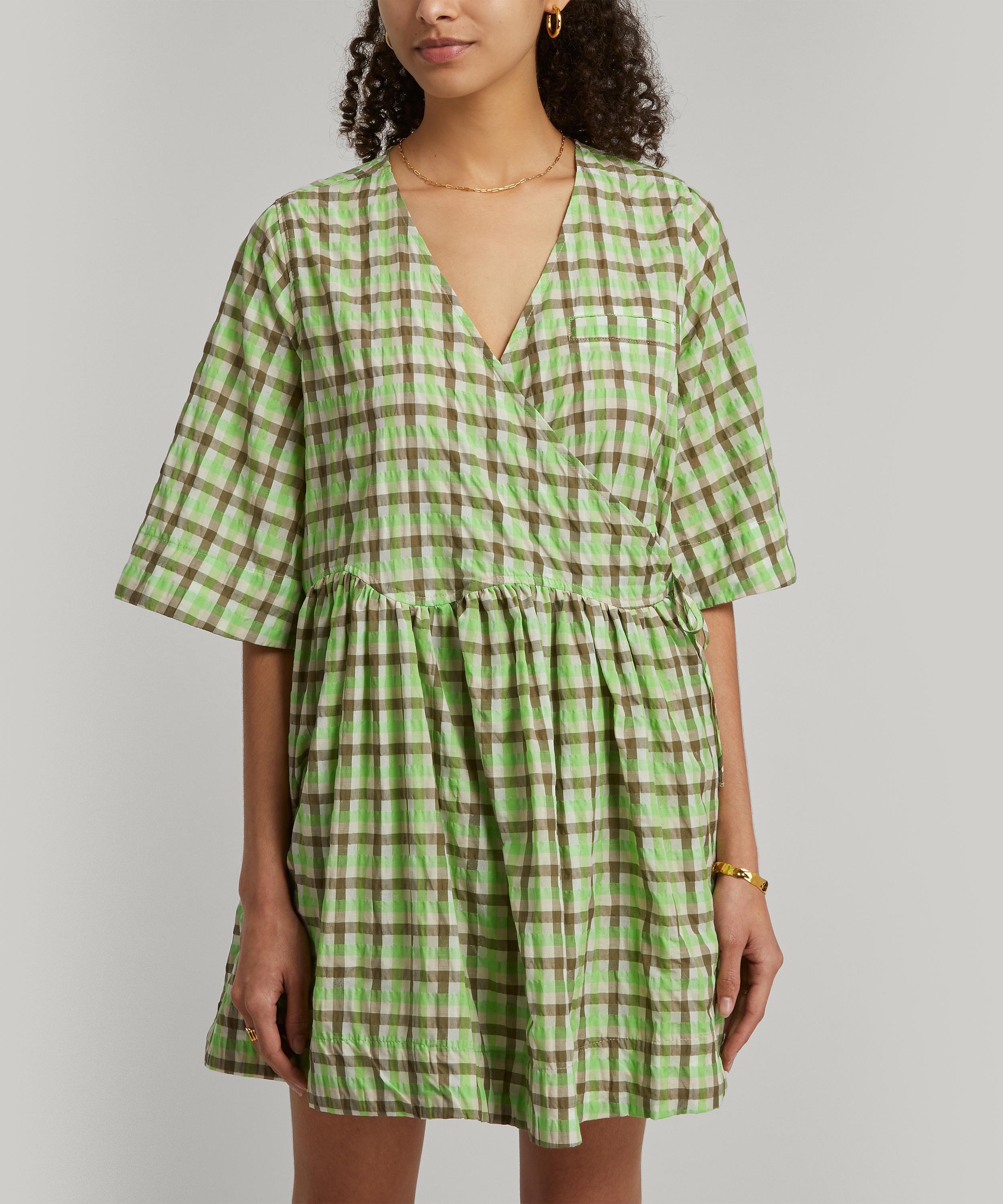 Instantly recognisable as Ganni, this wrap-style dress has the oversized trapeze silhouette that has become a signature of the Scandi brand.
