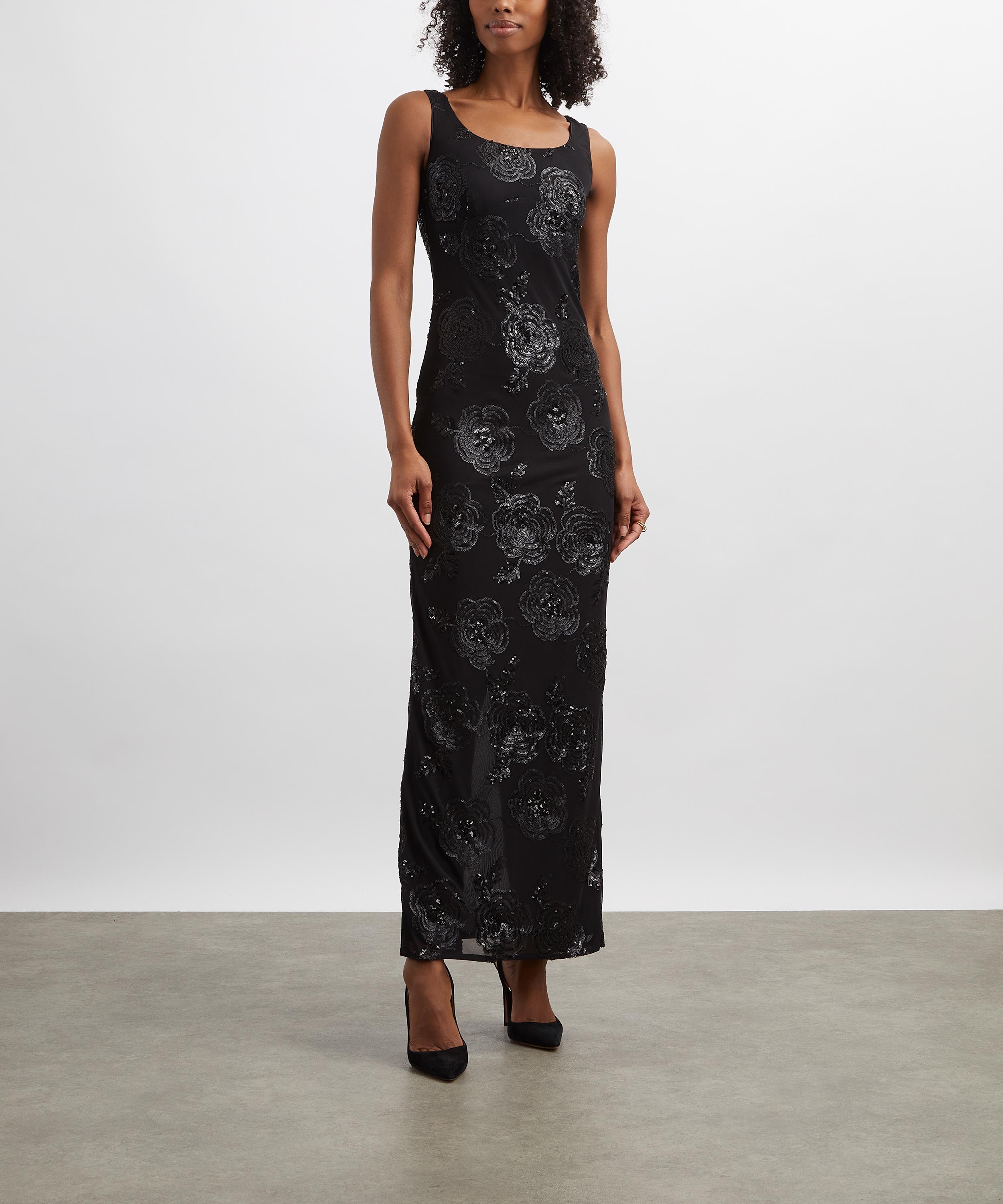 The Sequin Fitted Maxi Dress from ROTATE Birger Christensen brings a bold dose of Copenhagen cool to your evening wardrobe.