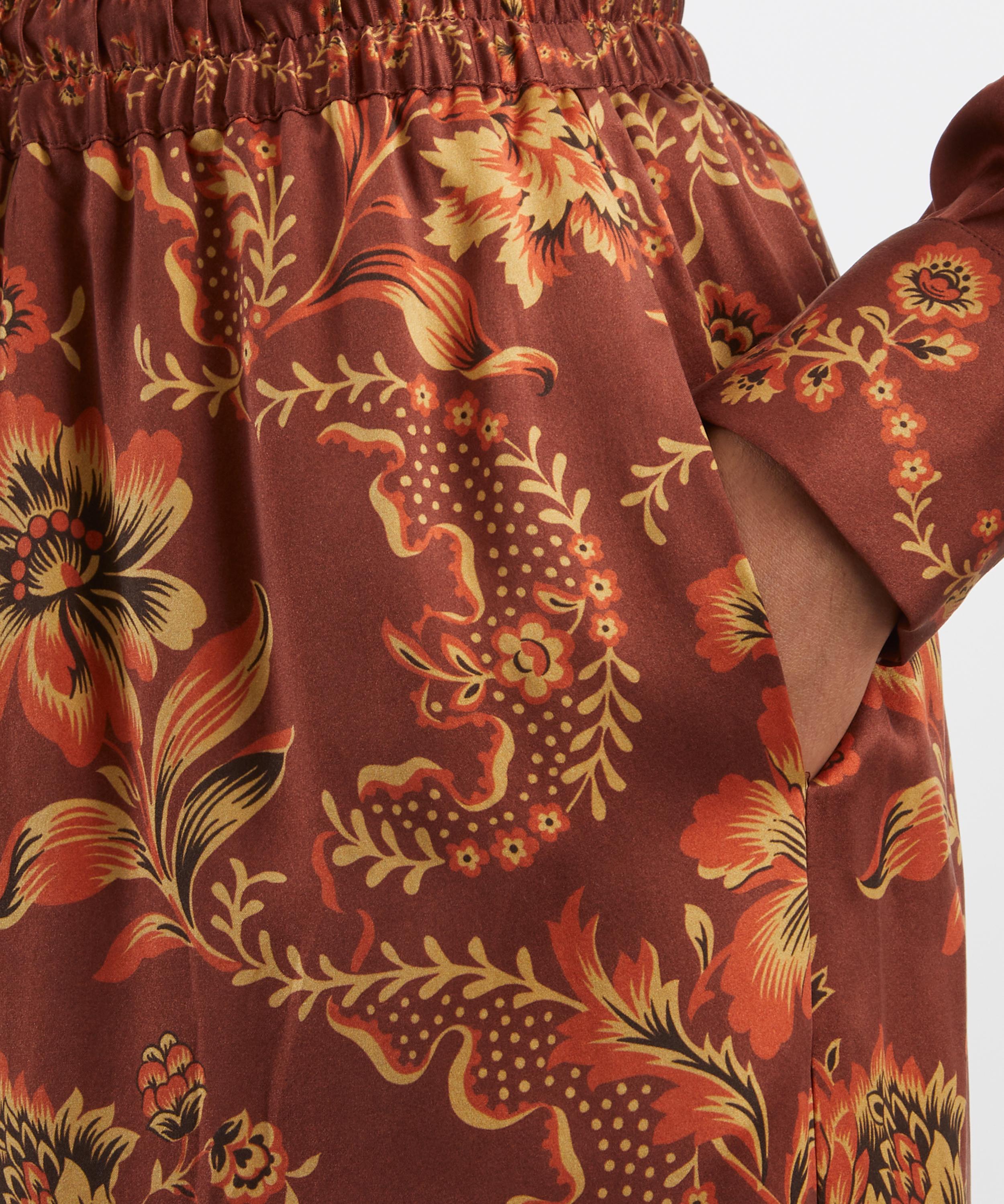 Crafted from pure silk printed with vibrant orange florals, the Seraphina trousers feature a relaxed, jogger-inspired silhouette with an elasticated drawstring waist - offering effortless elegance and all-day comfort.