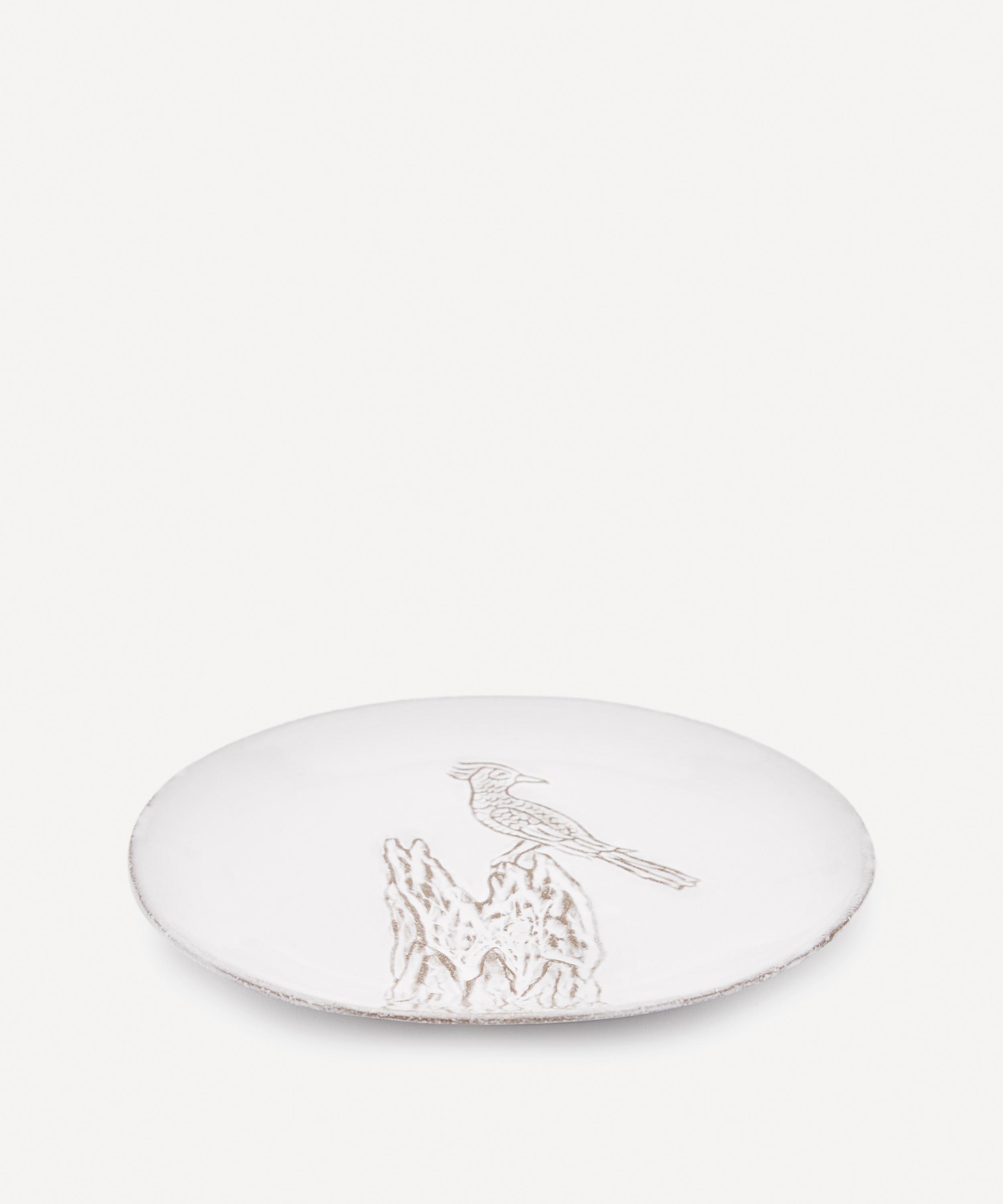 Votary of pre-industrial fabrication, Astier de Villatte is celebrated for being the one and only studio in Paris to hold and harbour the traditions of artisanal ceramic production. Restoring the ancestral systems of moulding and stamping, the bird on tree saucer is made using techniques from the Middle Ages which involve moulding a sheet of handmade clay, double firing the ‘biscuit’ piece and glazing the product in white enamel – a lengthy process that requires a drying time of up to one month. Characterised by exposed clay and subtle indentations, the saucer is engraved with the brand’s signature crest - depicting an interlacing A & V - alongside the initials of one of the 40 master artisans who created it. Each handmade piece tells a beautiful story, it romances and imparts a sense of nostalgia into its owner. Pair with mugs and espresso cups from Astier's range for a considered afternoon tea setting.