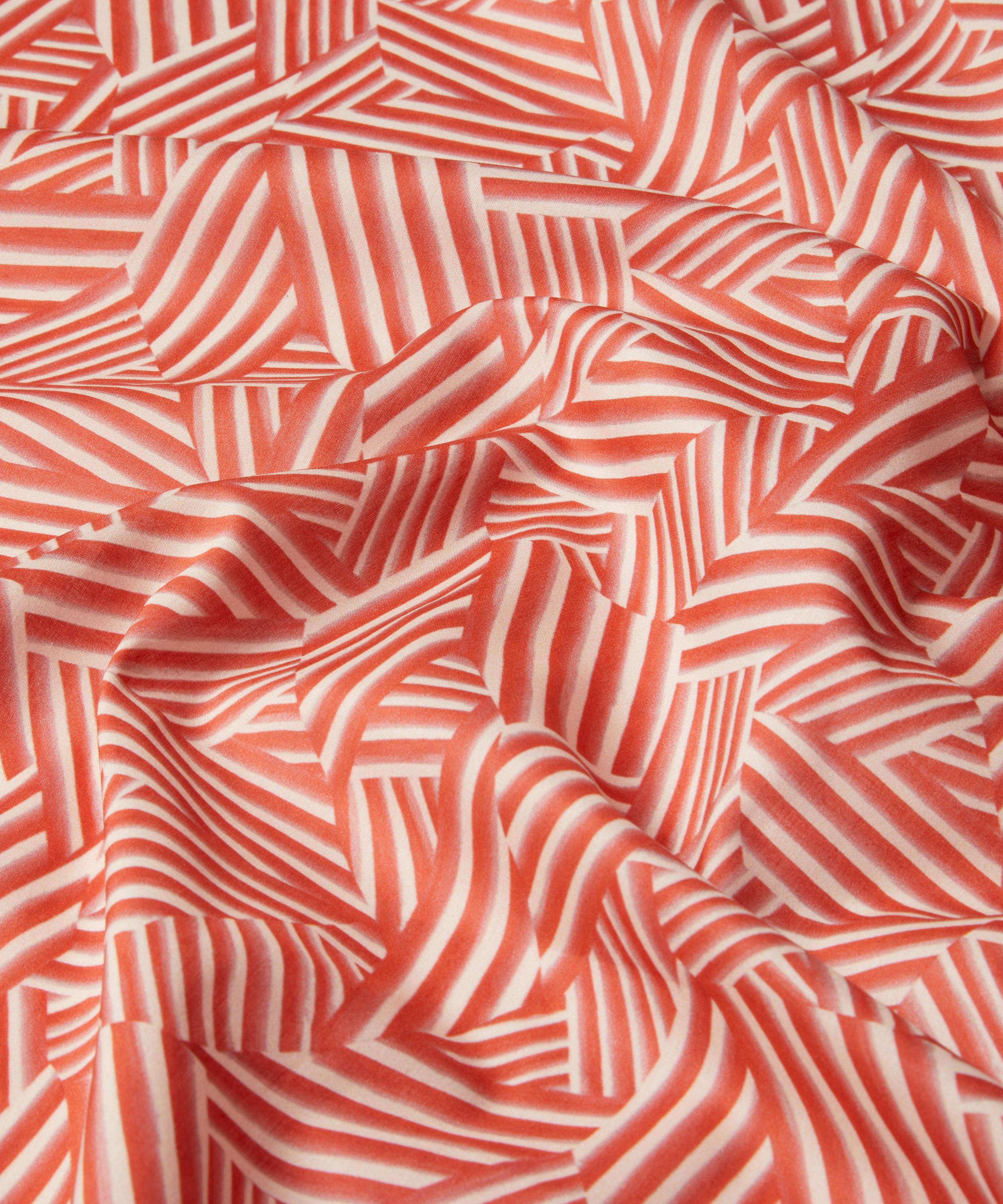 Shadow Stripe is a bold graphic design reworked from a larger, Futurist-inspired artwork created by the Liberty Design Studio. The print features a small section of that painting, with soft three-dimensional stripes.
