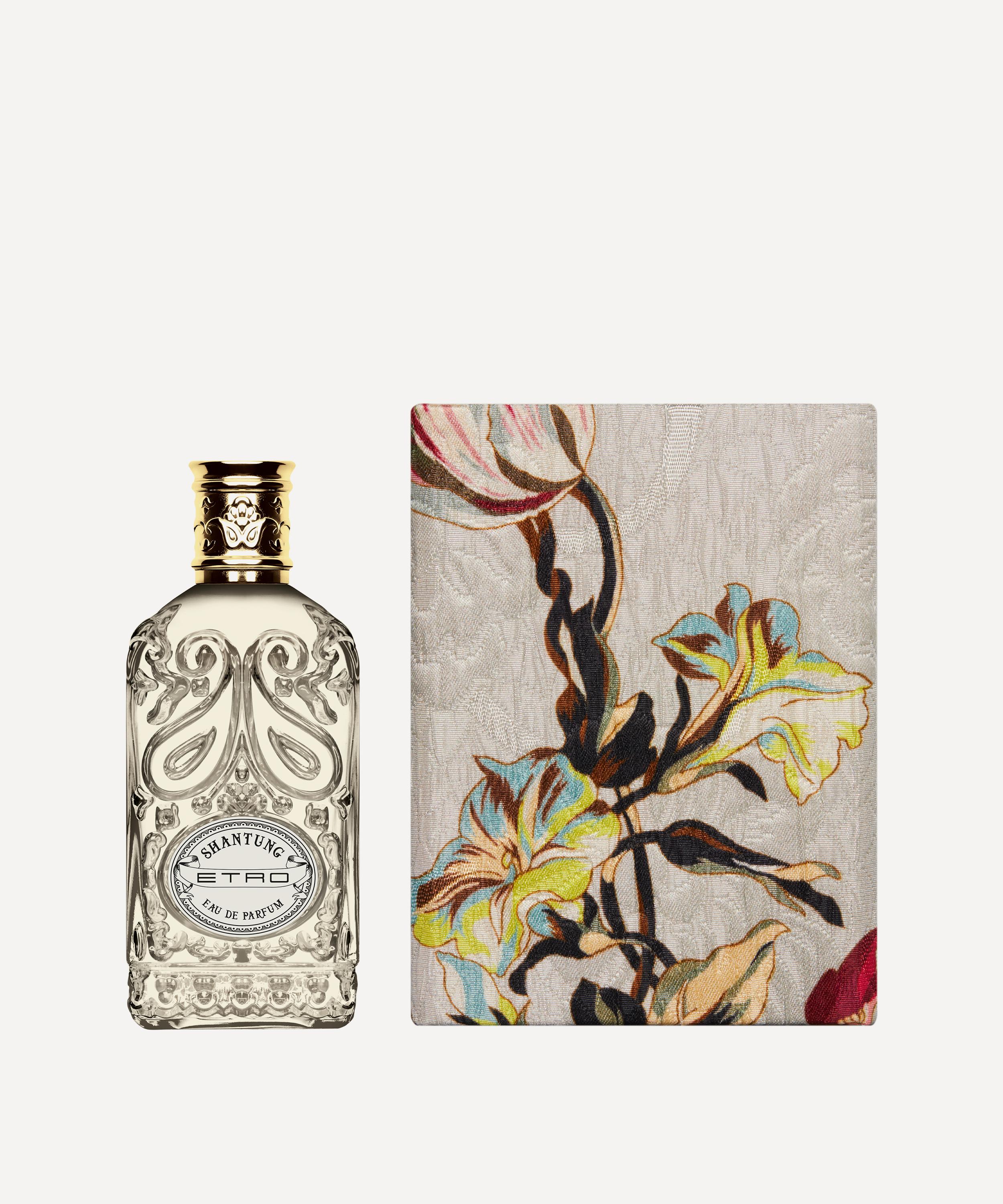 Envelop in the voluptuous floral aromas of Etro's captivating Shantung eau de parfum deluxe - housed in a keepsake gift box, wrapped in one of the brand's archive fabrics. Vibrant mandarin infuses the dewy air of morning in the Orient with its' sparkling aroma, sweetened with notes of blackcurrant and lychee and the delicate blooms of pink flowers, a welcome sign of warmer days to come - cloaked with a mysterious veil of incense for an enticing finish.