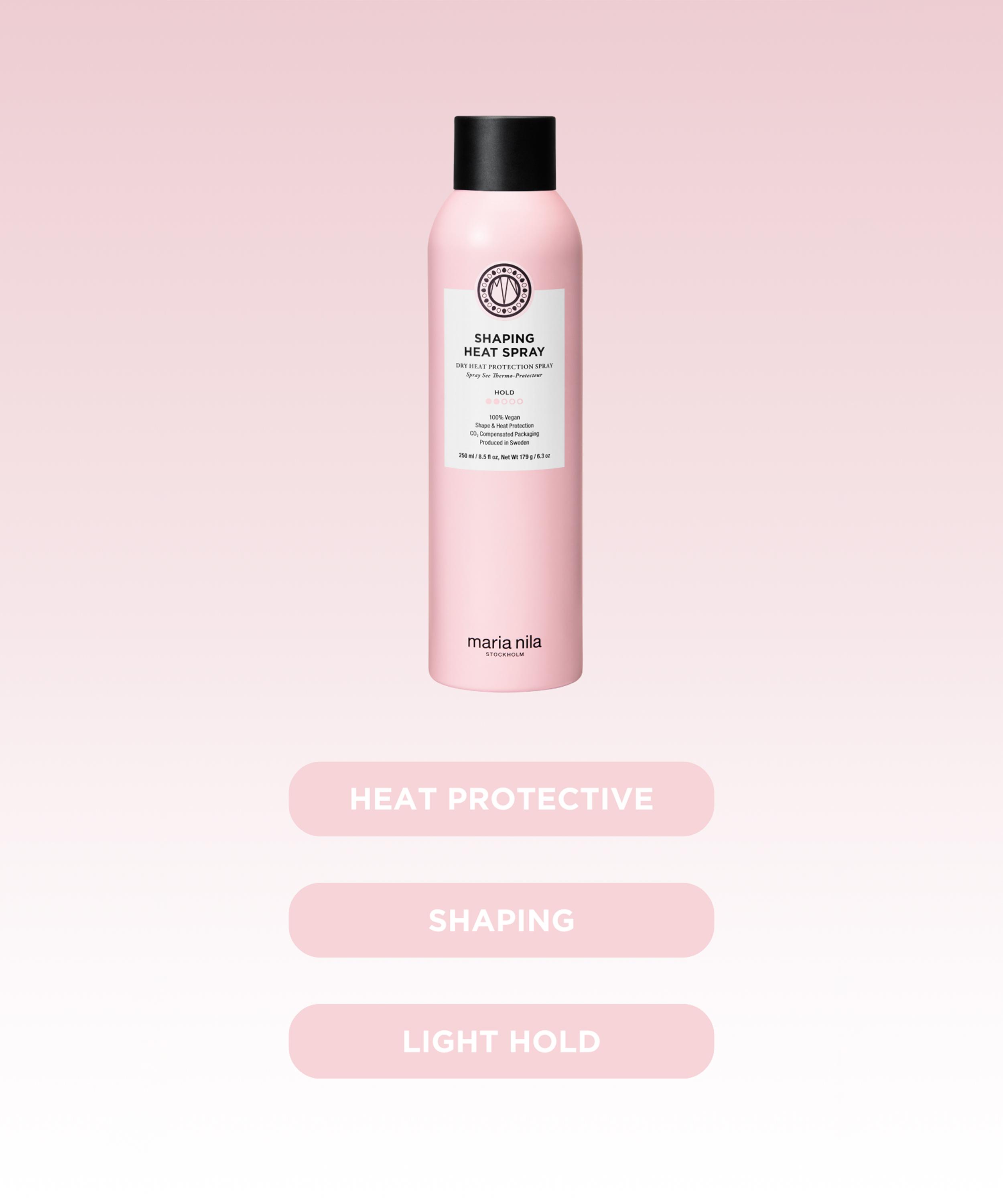 Elevate your hair styling routine with Maria Nila's Shaping Heat Spray, a moisture-replenishing styling spray designed to protect hair against thermal damage