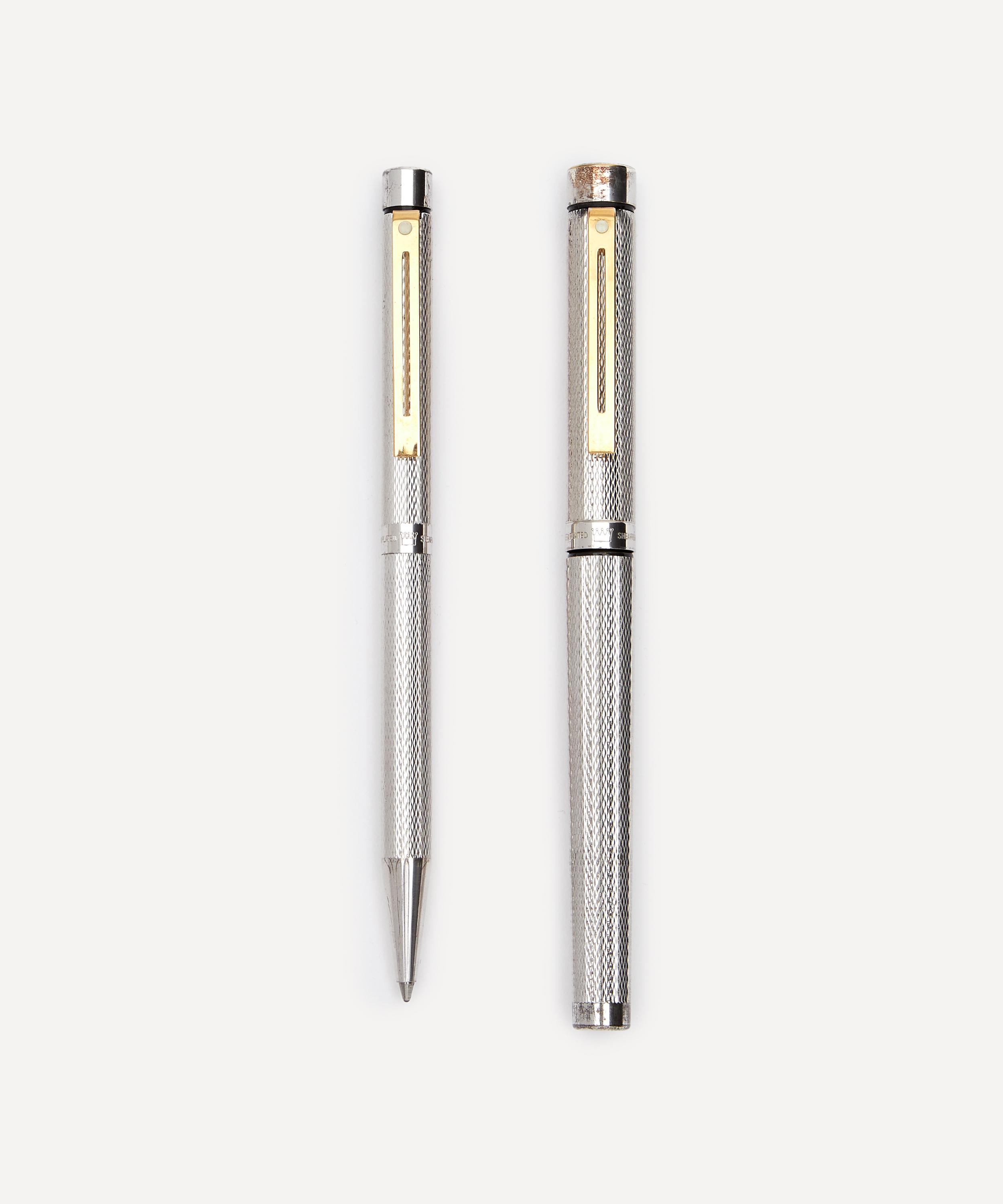 Featuring a silver fill with a fine barleycorn pattern, this fountain and ballpoint pen set is sure to become a future heirloom - crafted to be passed down for generations. Smartly presented in its original box, this sleek stationary essential is a chic addition to your workspace or a perfect gift to a loved one with literary tendencies.