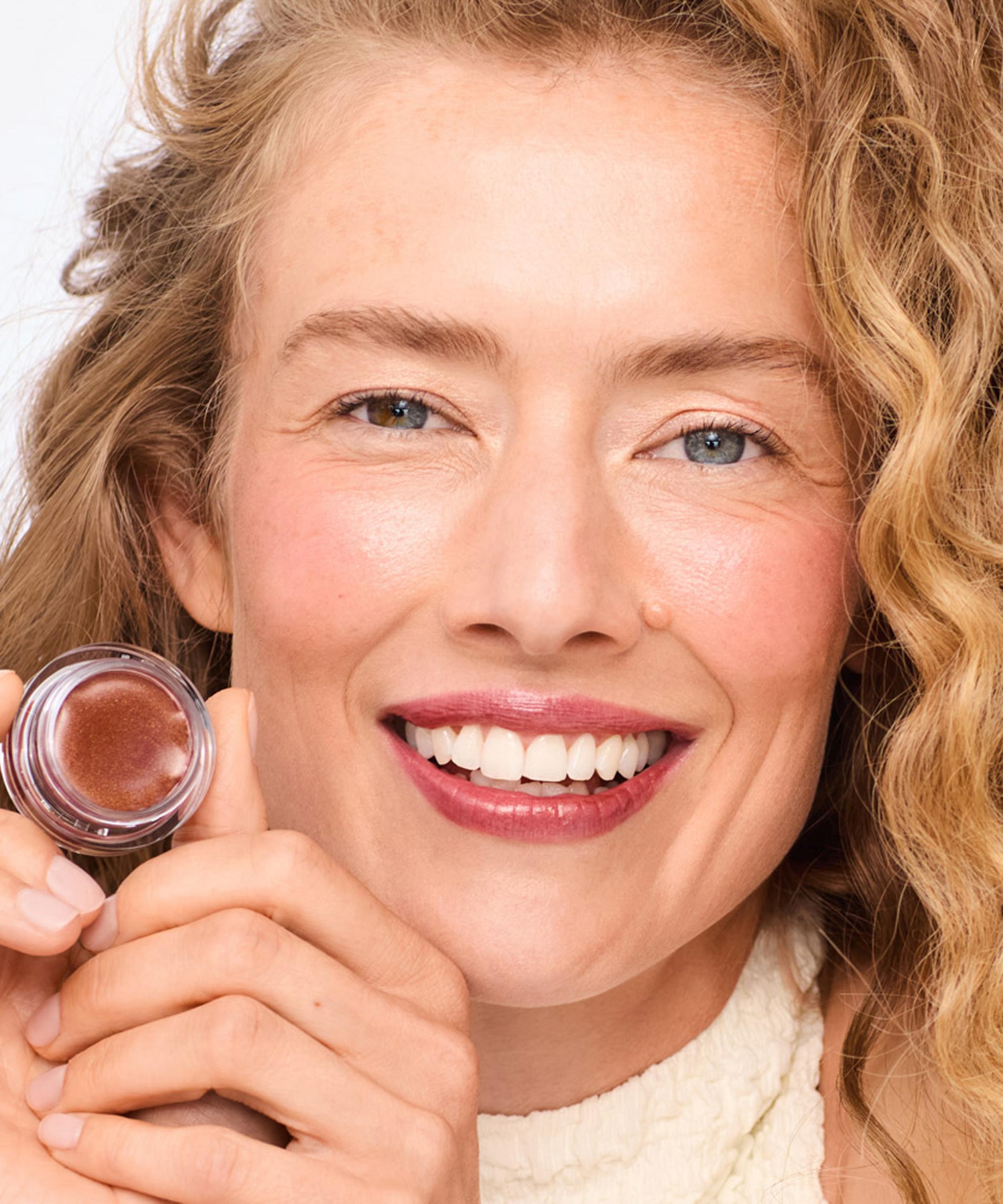 Gently dab Sheer Shimmer above your cheekbones and onto your lips using your fingers.