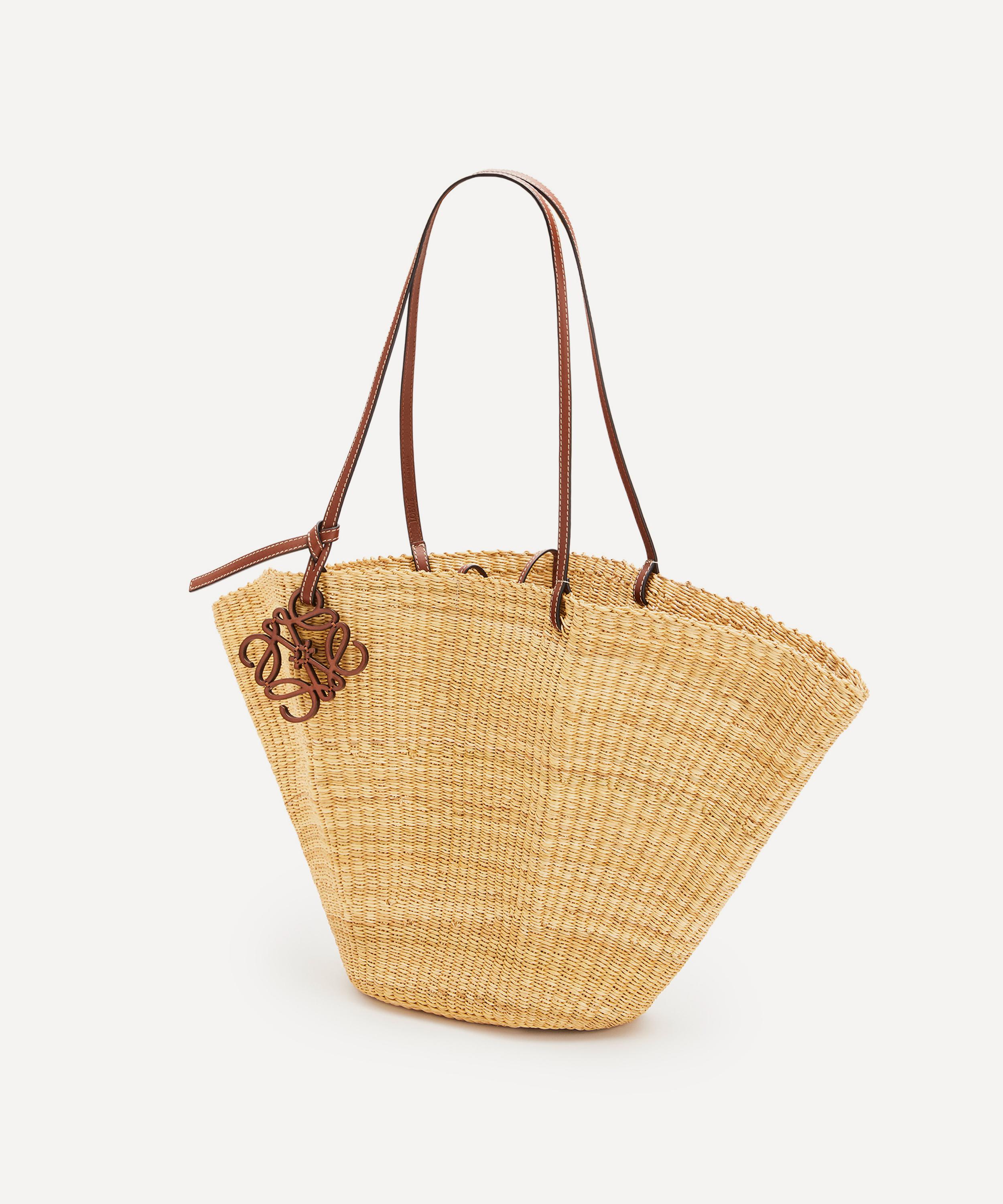 Hand-woven from elephant grass, Loewe's Shell Basket bag features a roomy, unlined design with two slim calfskin leather top handles and the brand's distinctive Anagram logo hanging in charm form. Ideal for market shopping, city strolls and trips to the beach, this spacious piece is perfect for toting all your daily essentials in true Mediterranean style.