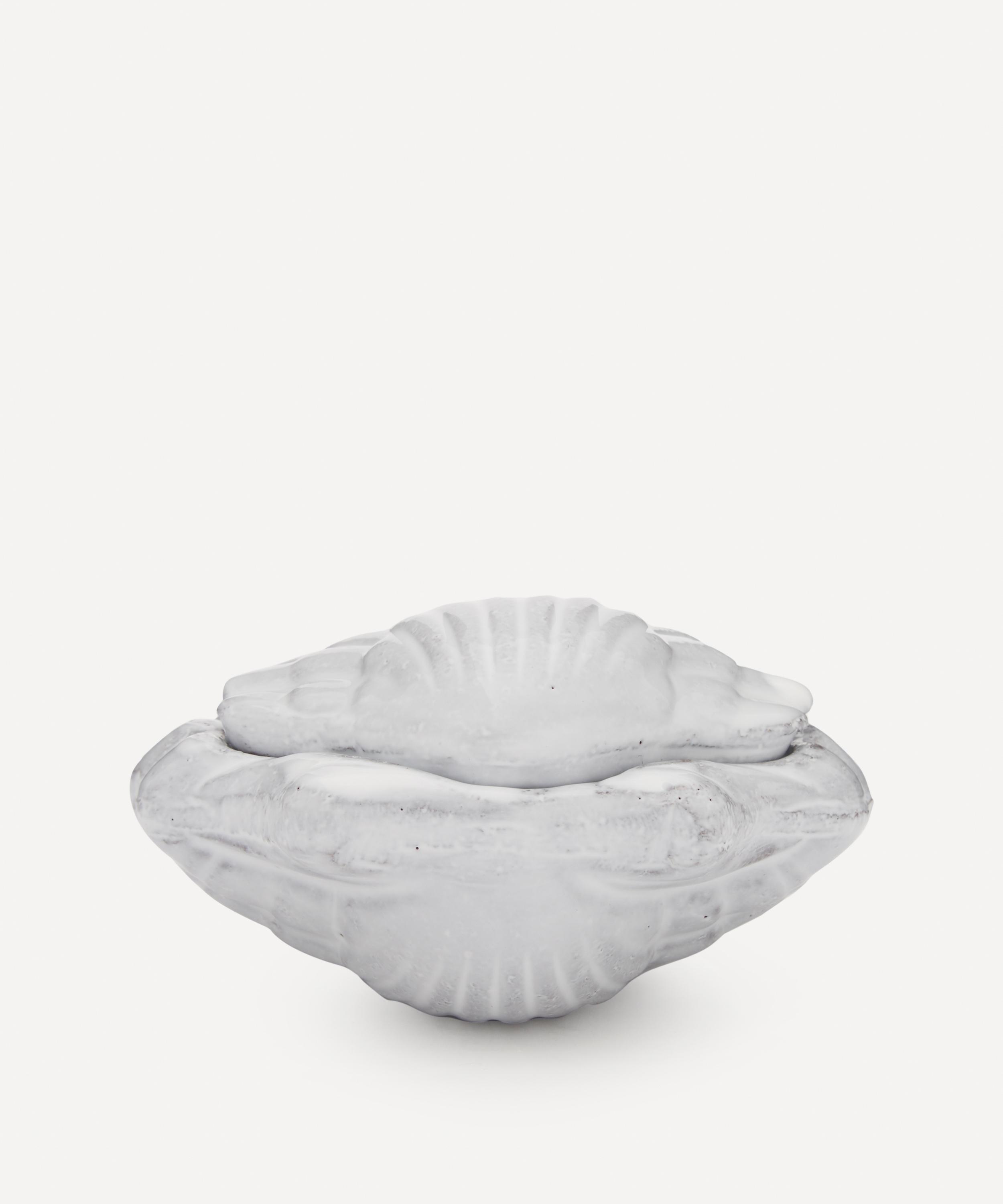 Votary of pre-industrial fabrication, Astier de Villatte is celebrated for being the one and only studio in Paris to hold and harbour the traditions of artisanal ceramic production. Restoring the ancestral systems of moulding and stamping, this box is made using techniques from the Middle Ages which involve moulding a sheet of handmade clay, double firing the ‘biscuit’ piece and glazing the product in white enamel – a lengthy process that requires a drying time of up to one month. Shaped into a cockle shell, the box is finished with the brand’s signature crest – depicting an interlacing A & V – engraved alongside the initials of one of the 40 master artisans who created it. Each handmade piece tells a beautiful story, imparting an irresistible sense of nostalgia. Use it to give your dressing table an authentic French mood, whilst keeping trinkets safely stowed away.