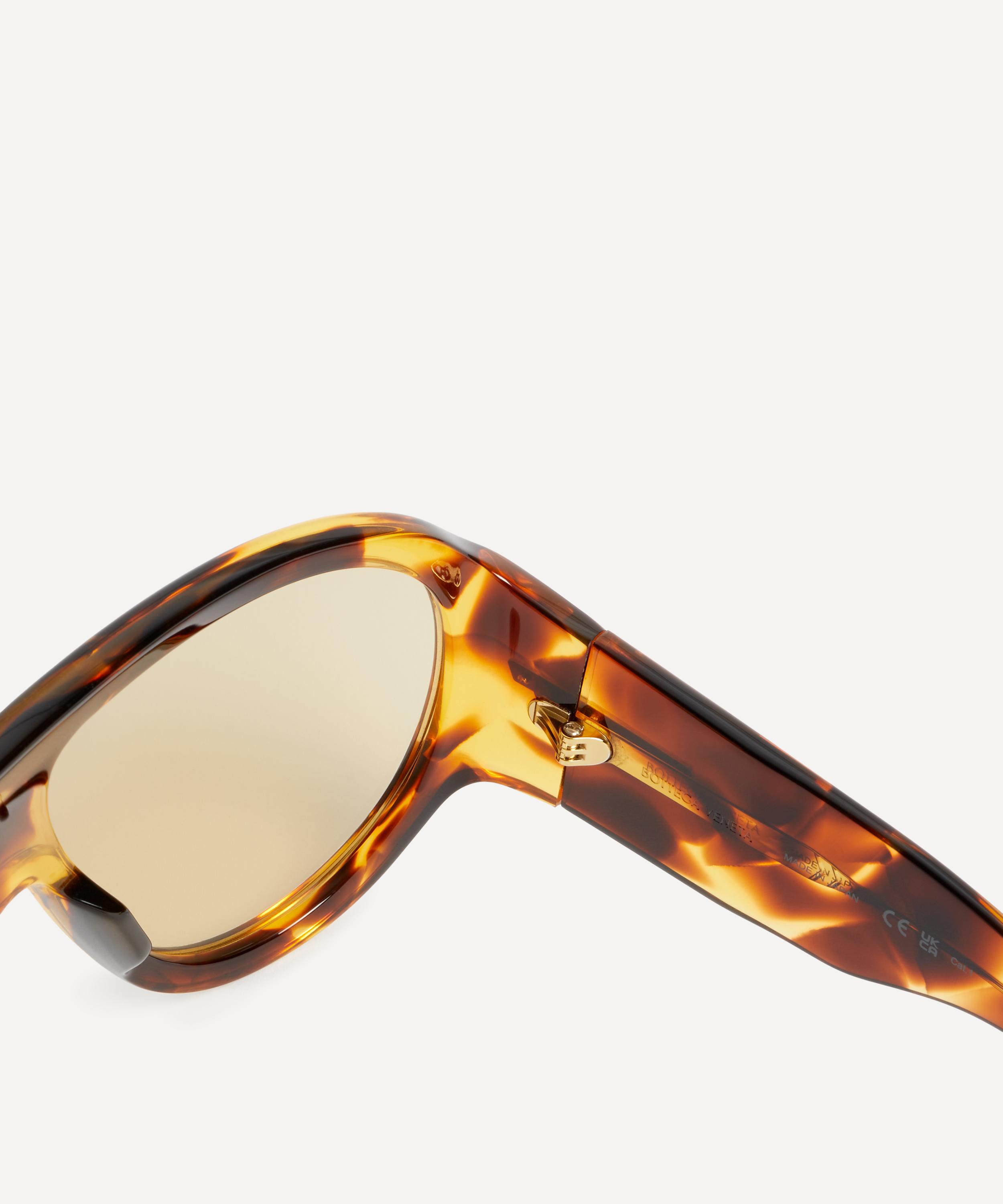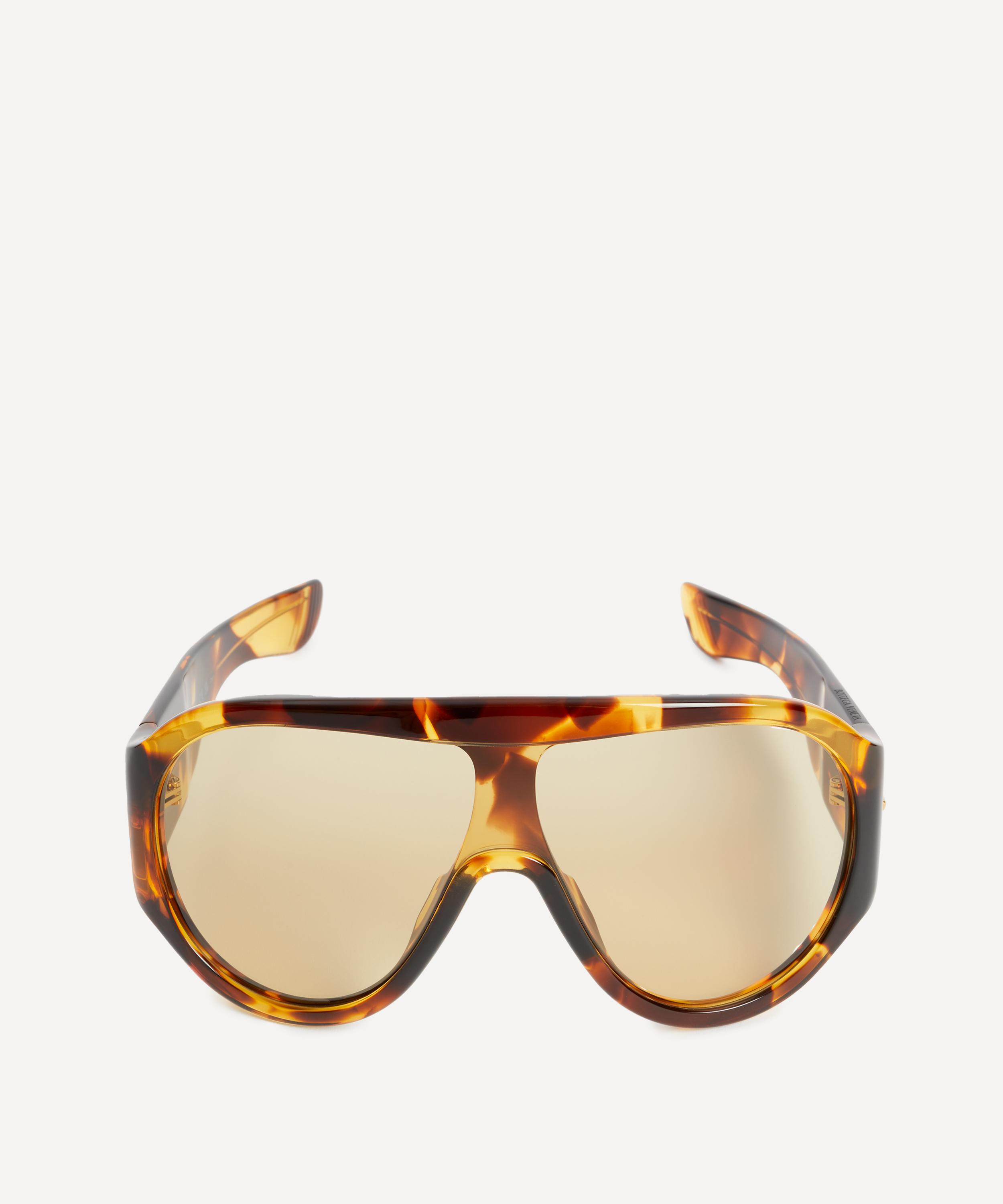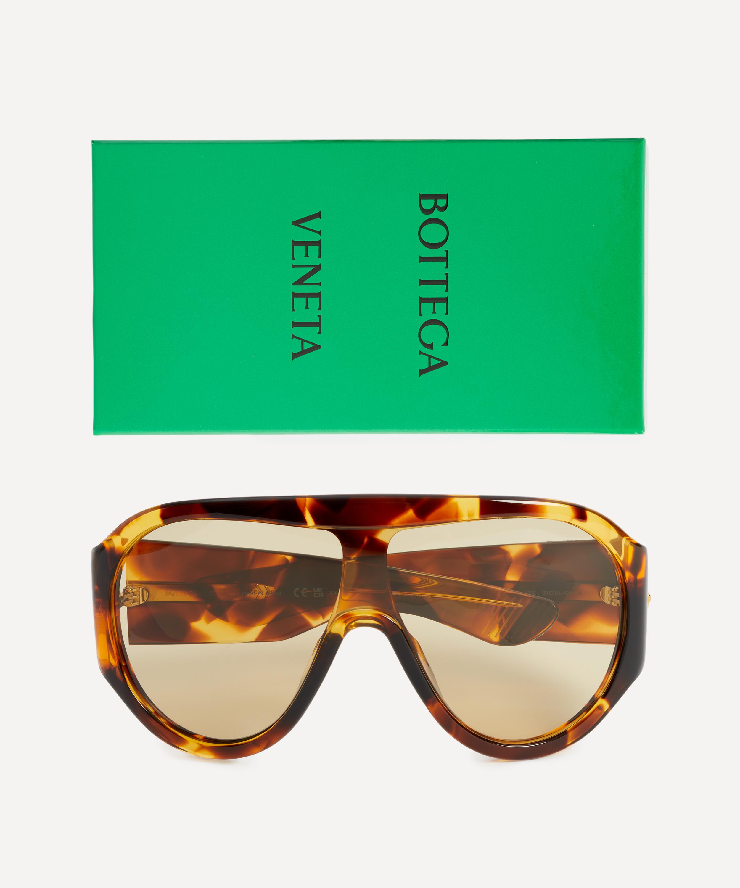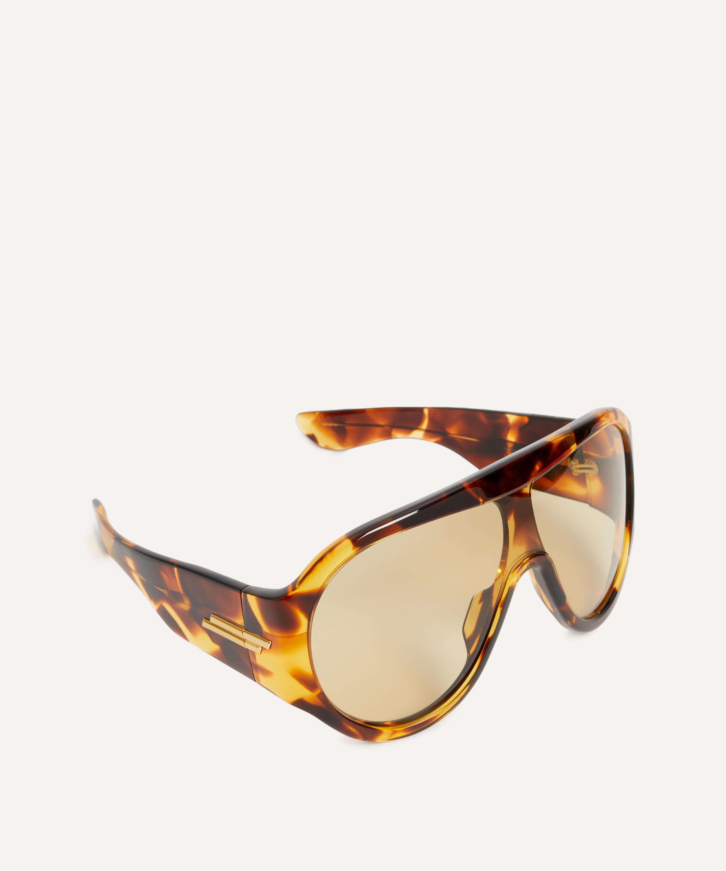 Elevate your style with these shield sunglasses from Bottega Veneta for a touch of sleek Italian glamour. Featuring an oversized silhouette, crafted from Havana acetate and brown-tinted lenses, they’re complete with a brand logo to the temples to take your look from ordinary to outstanding. They come with a protective case and cleaning cloth to preserve peak conditions.