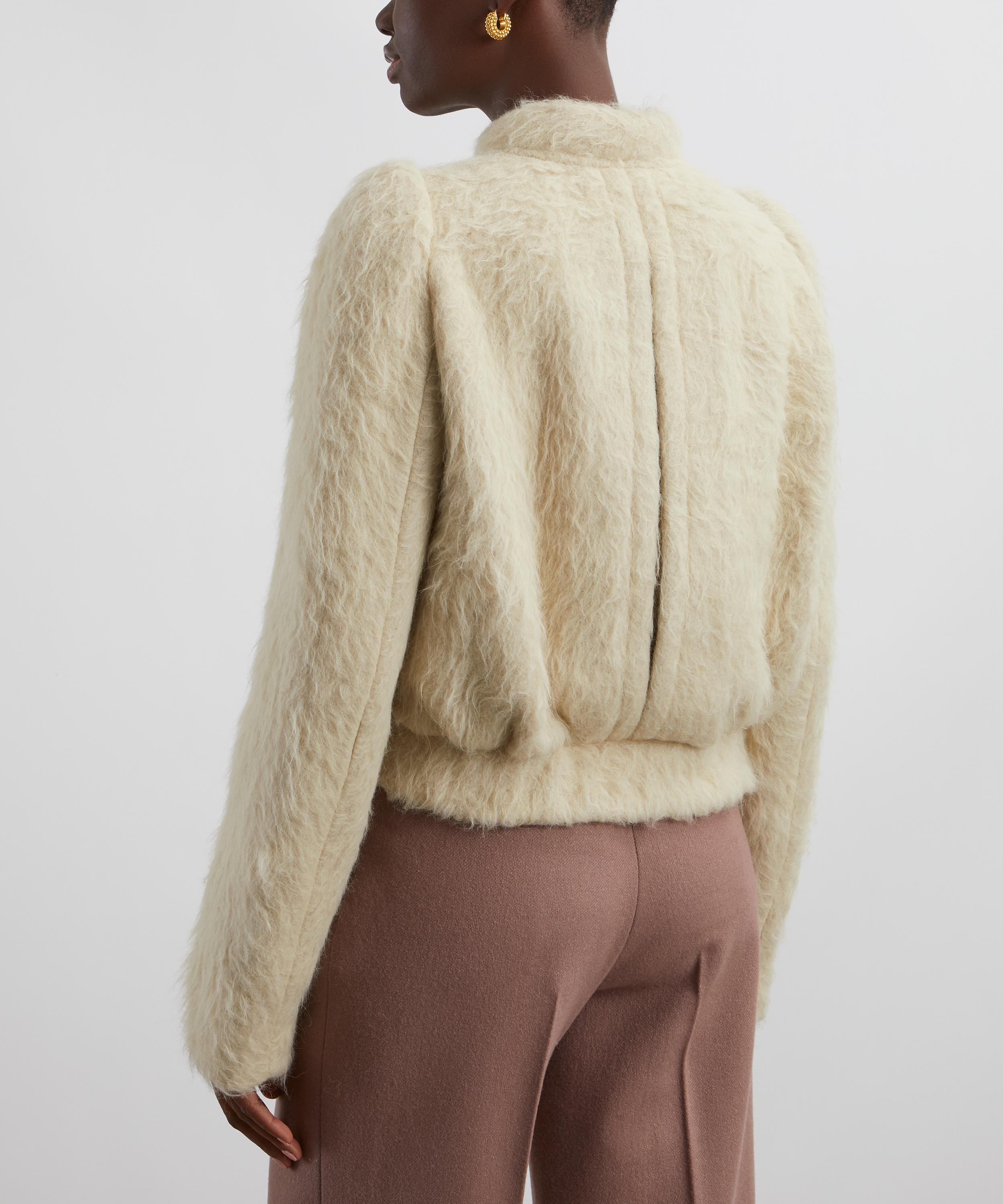 Casual yet chic, this plush wool and alpaca blend jacket combines warmth and style effortlessly, perfect for elevating your everyday look. The fitted, cropped design is complemented by an elasticated hem and cuffs for effortless wear, while its double-ended zip closure makes it a stylish and functional choice.