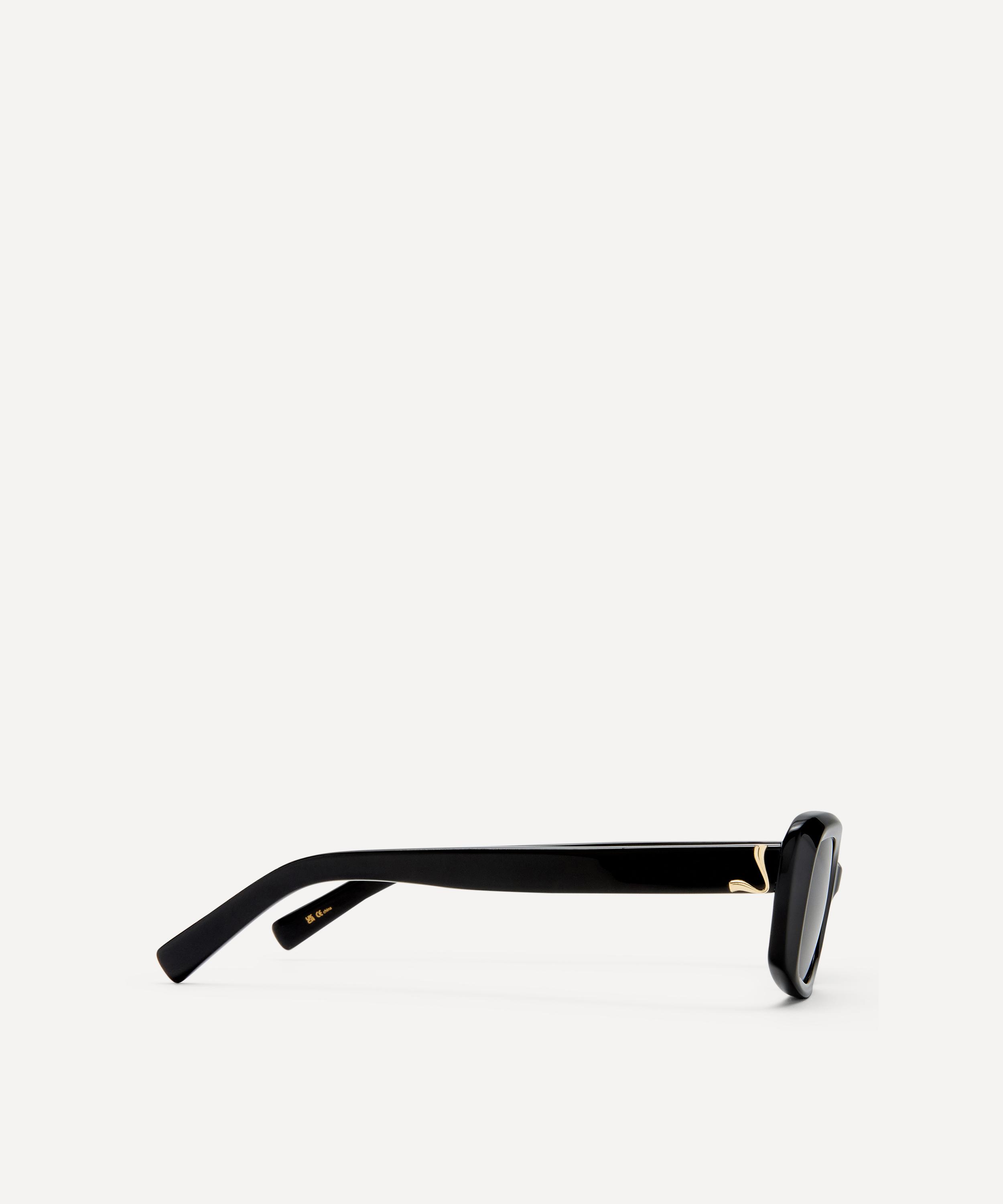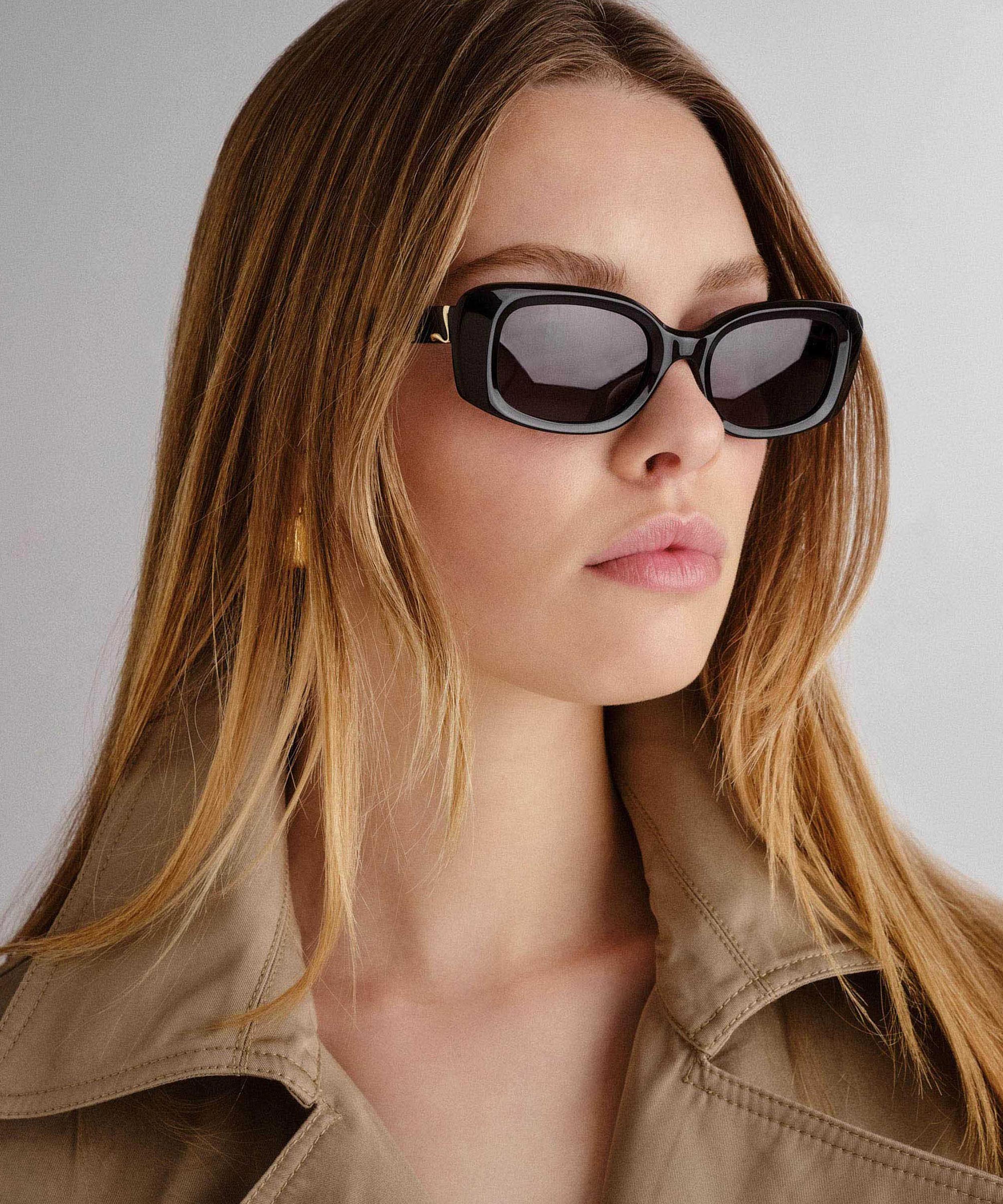 Crafted for the discerning eye, these sunglasses polish everyday looks with their sculptural silhouette and flawless finish. The classic rectangular frame in black acetate, meticulously engineered for comfort and durability, is paired with bevelled detailing, the brand’s signature ‘L’ logo and polarised lenses in smoke mono, offering UV protection and optical clarity. Poised to create an air of intrigue, this is eyewear for those who value quiet confidence and effortless style, designed to transcend seasons and trends.