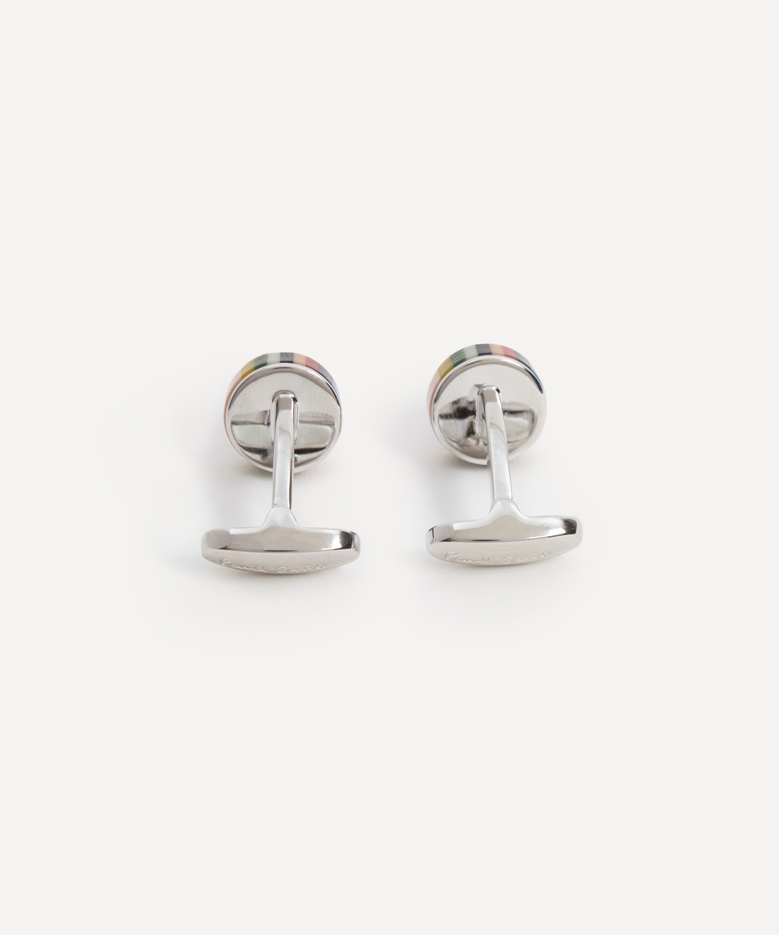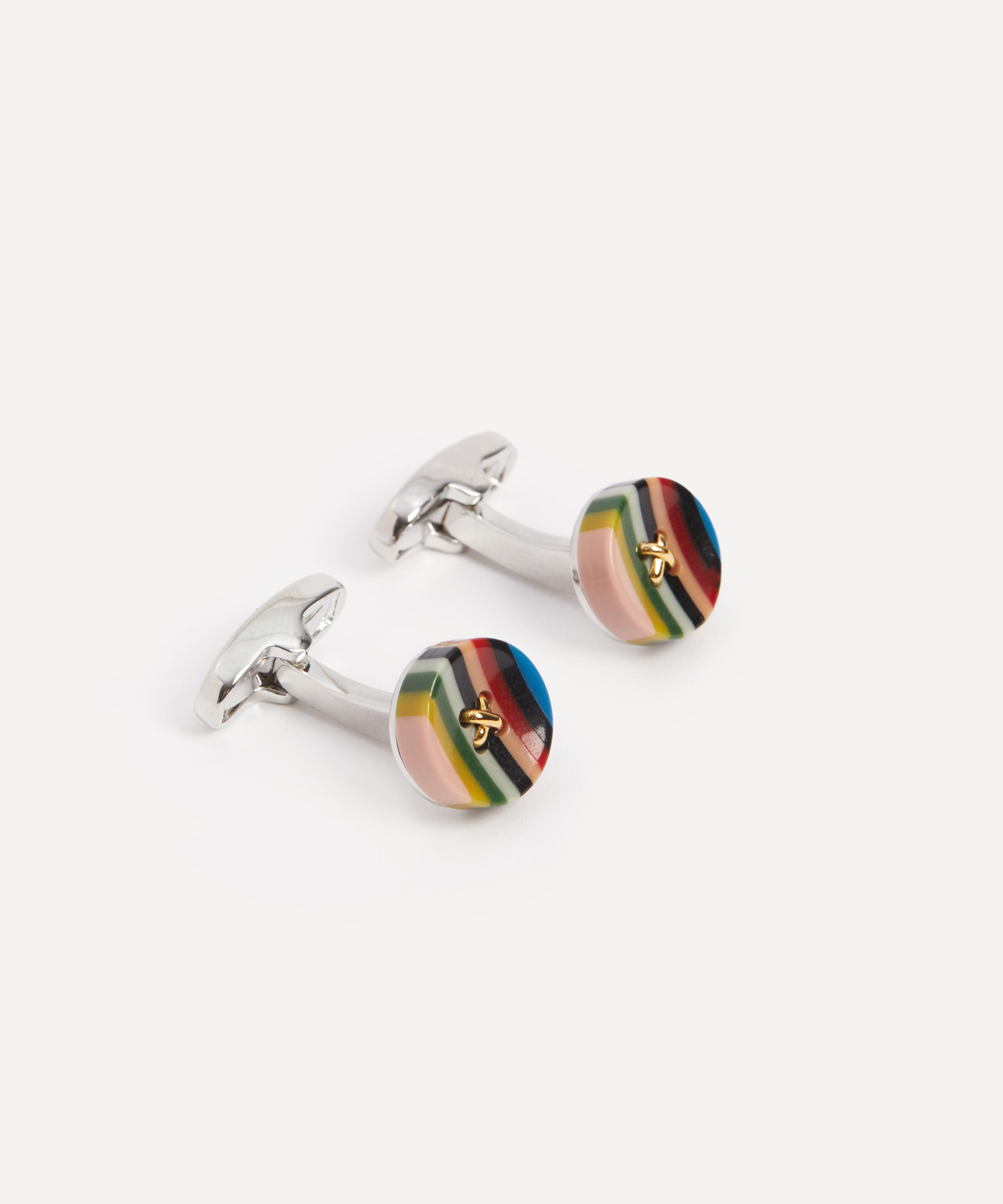 Featuring the brand’s iconic multicoloured Signature Stripe pattern in a charming button design, this set of cufflinks are complete with embossed T-bar fastening and are presented in a branded box - the perfect gift for a Paul Smith devotee.