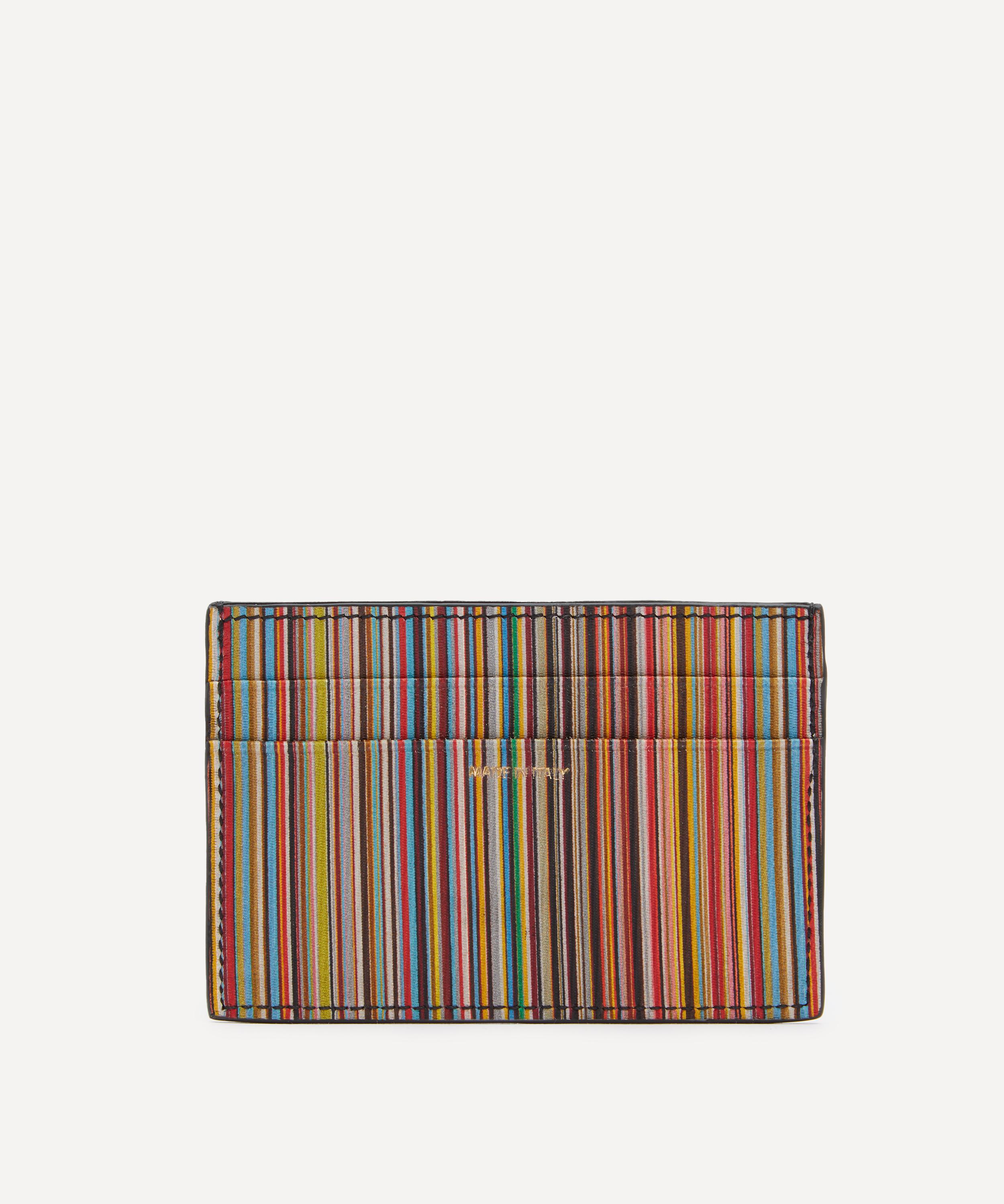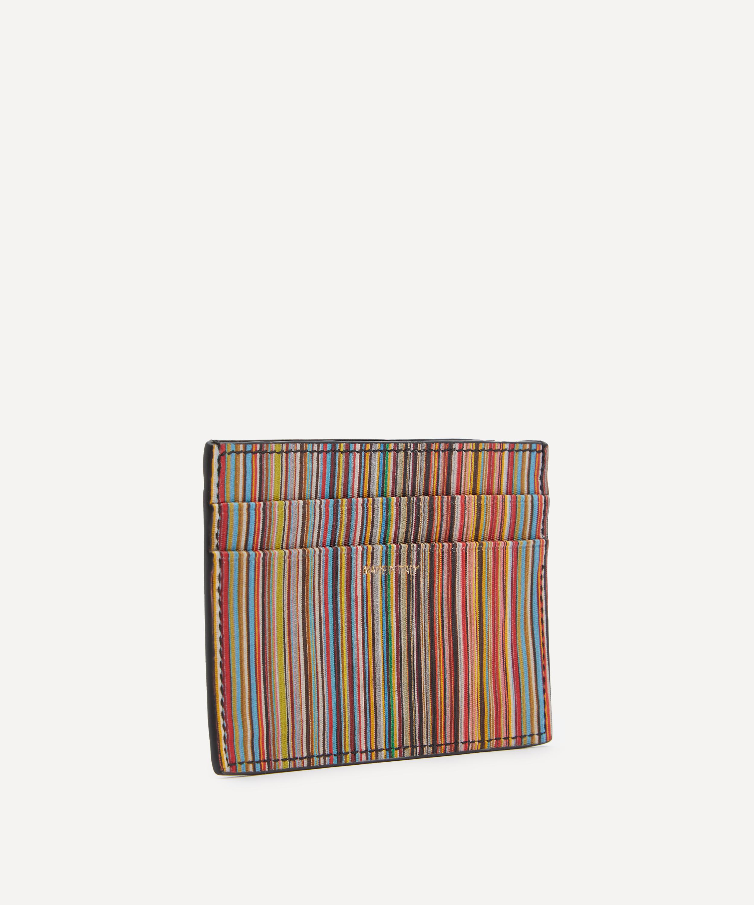 Stay organised in style with this premium leather card holder from quintessentially British brand Paul Smith. Crafted in Italy, it features a classic signature stripe reverse and comes equipped with three card slots and a central compartment for folded notes or receipts – a versatile accessory, perfect for slipping into your jacket pocket.