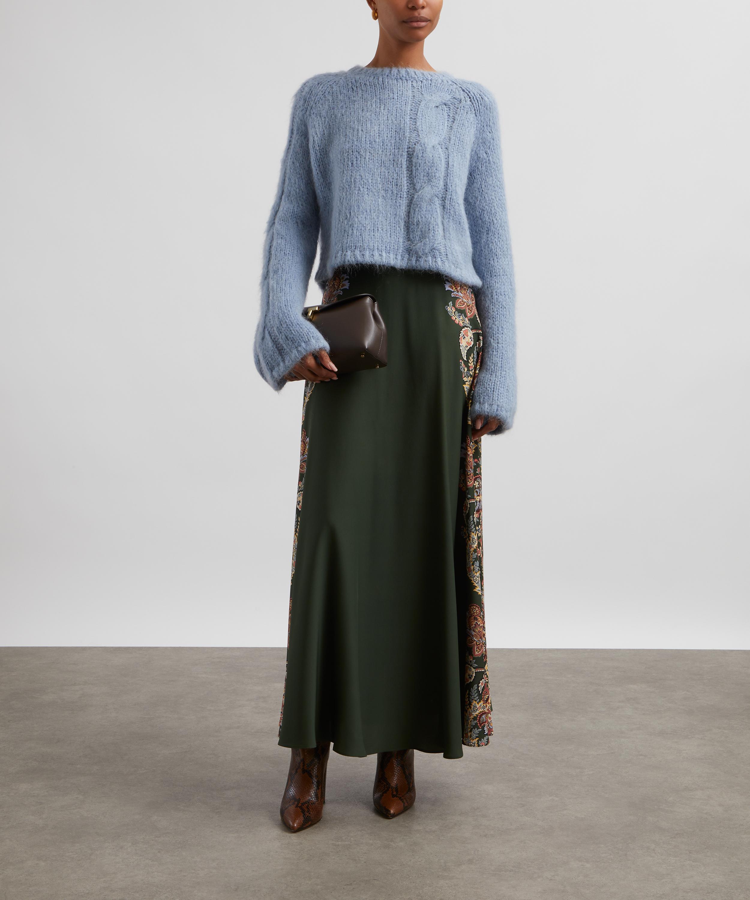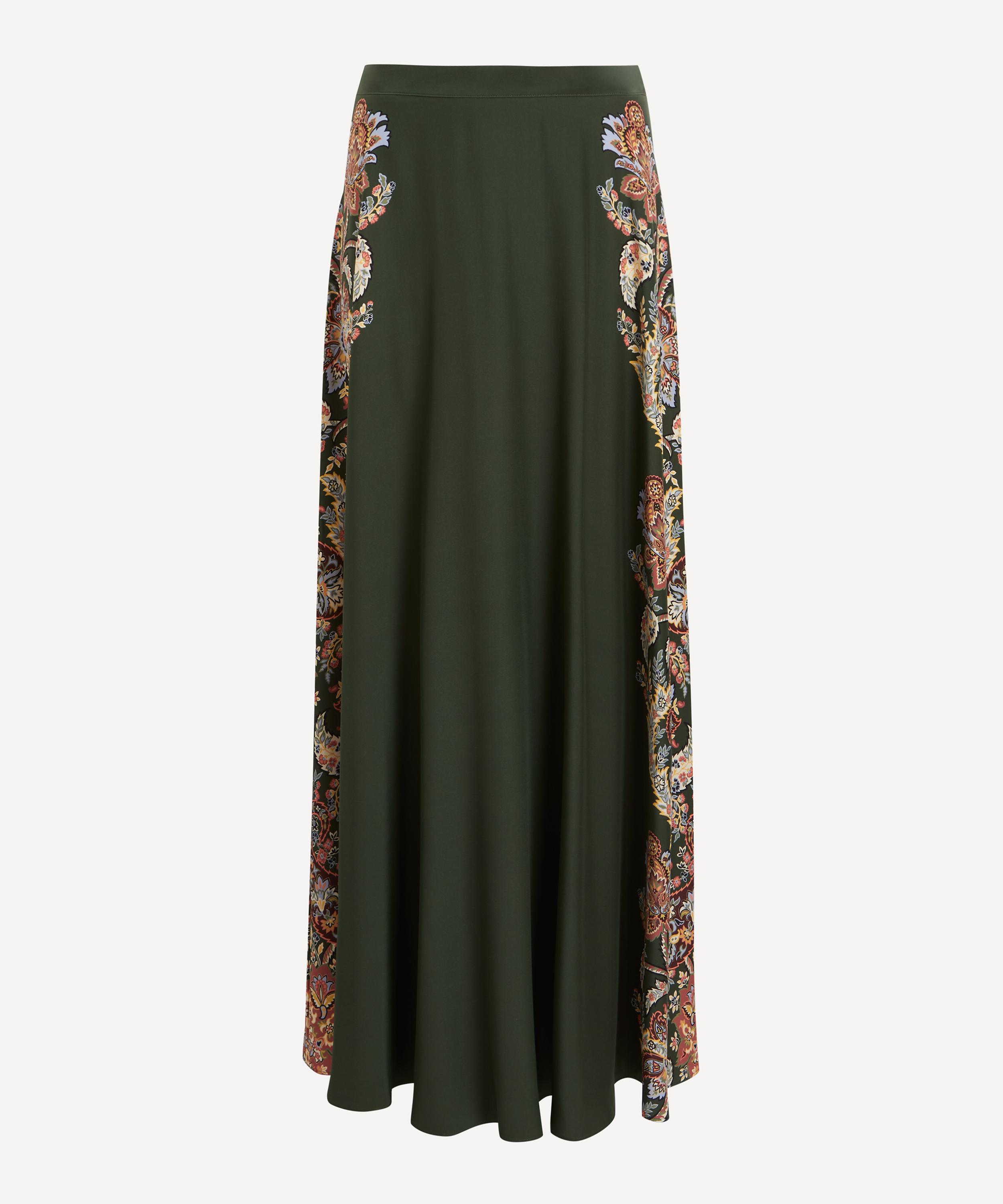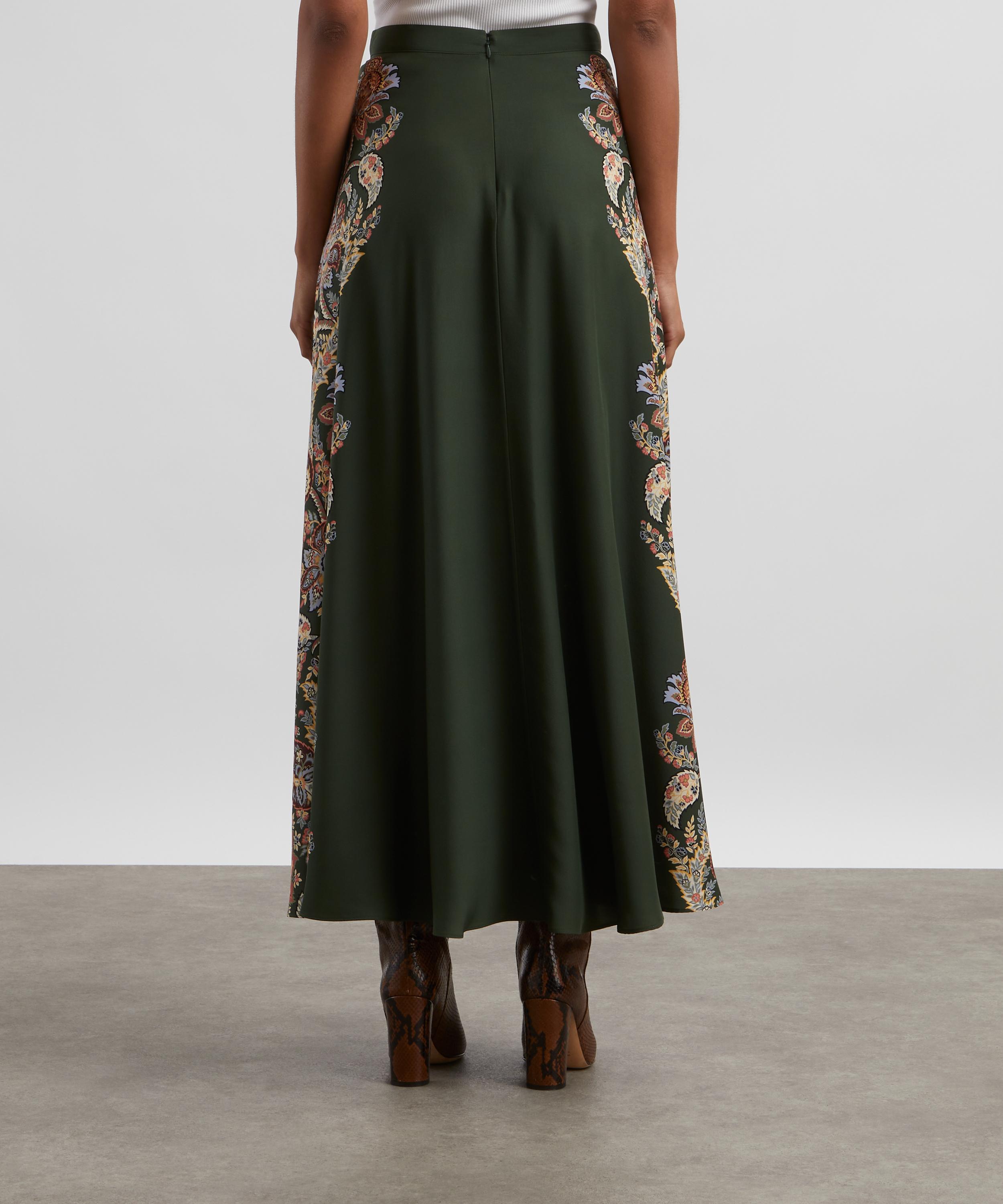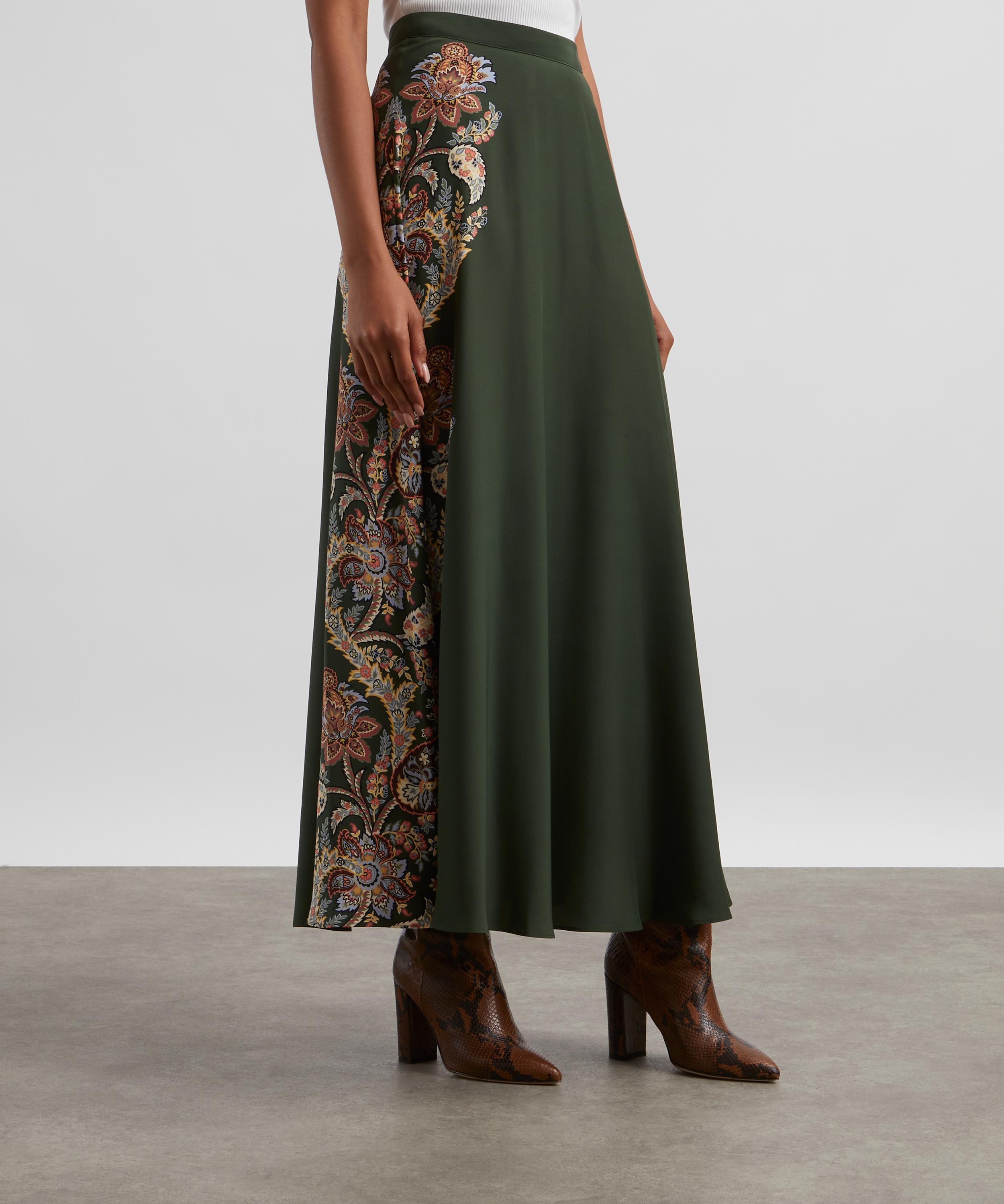 Lightweight and loose in silk crepe de chine, this ankle-grazing skirt exudes elegance with its flattering A-line silhouette. In true Etro style, it’s decorated with a placed floral paisley print for a signature finish.
