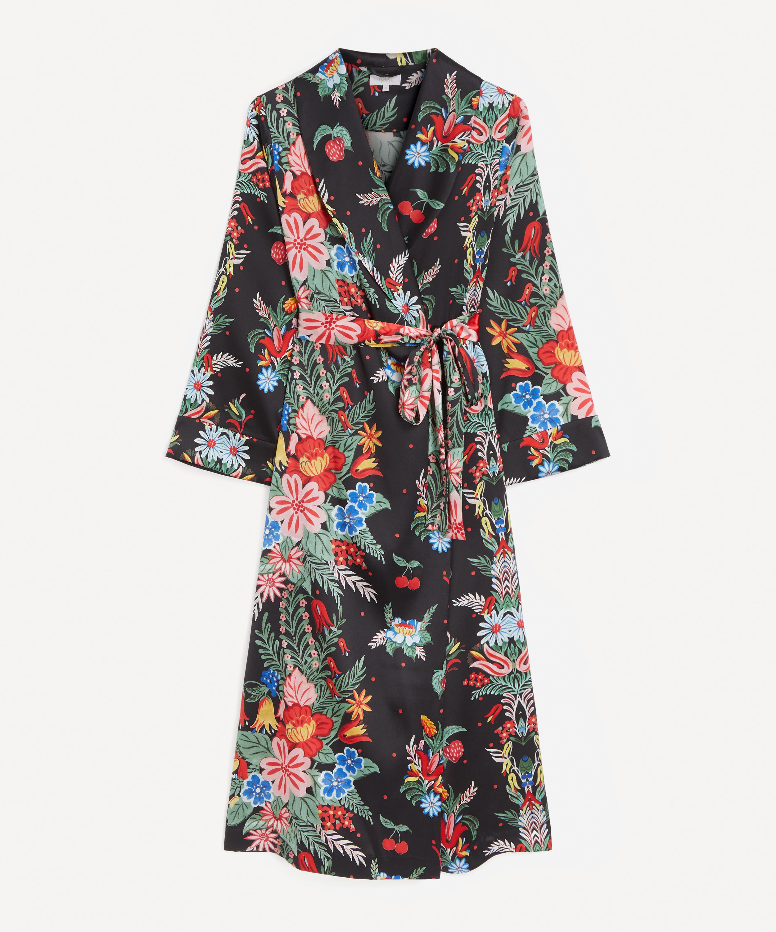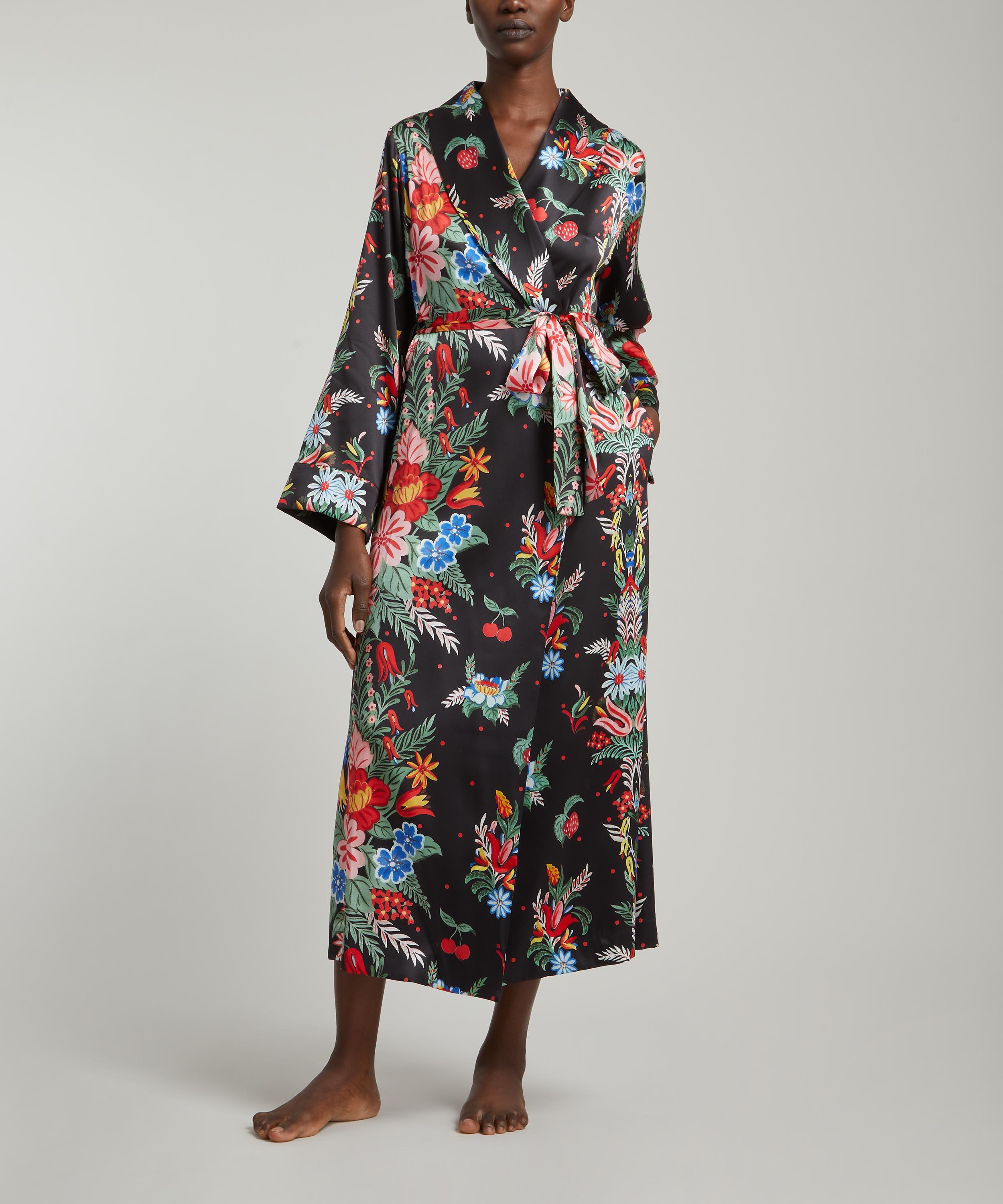 Drawing upon enchanting folklore and fables to design its luscious prints, Yolke’s Silk Dressing Gown is a classically elegant lounging silhouette.