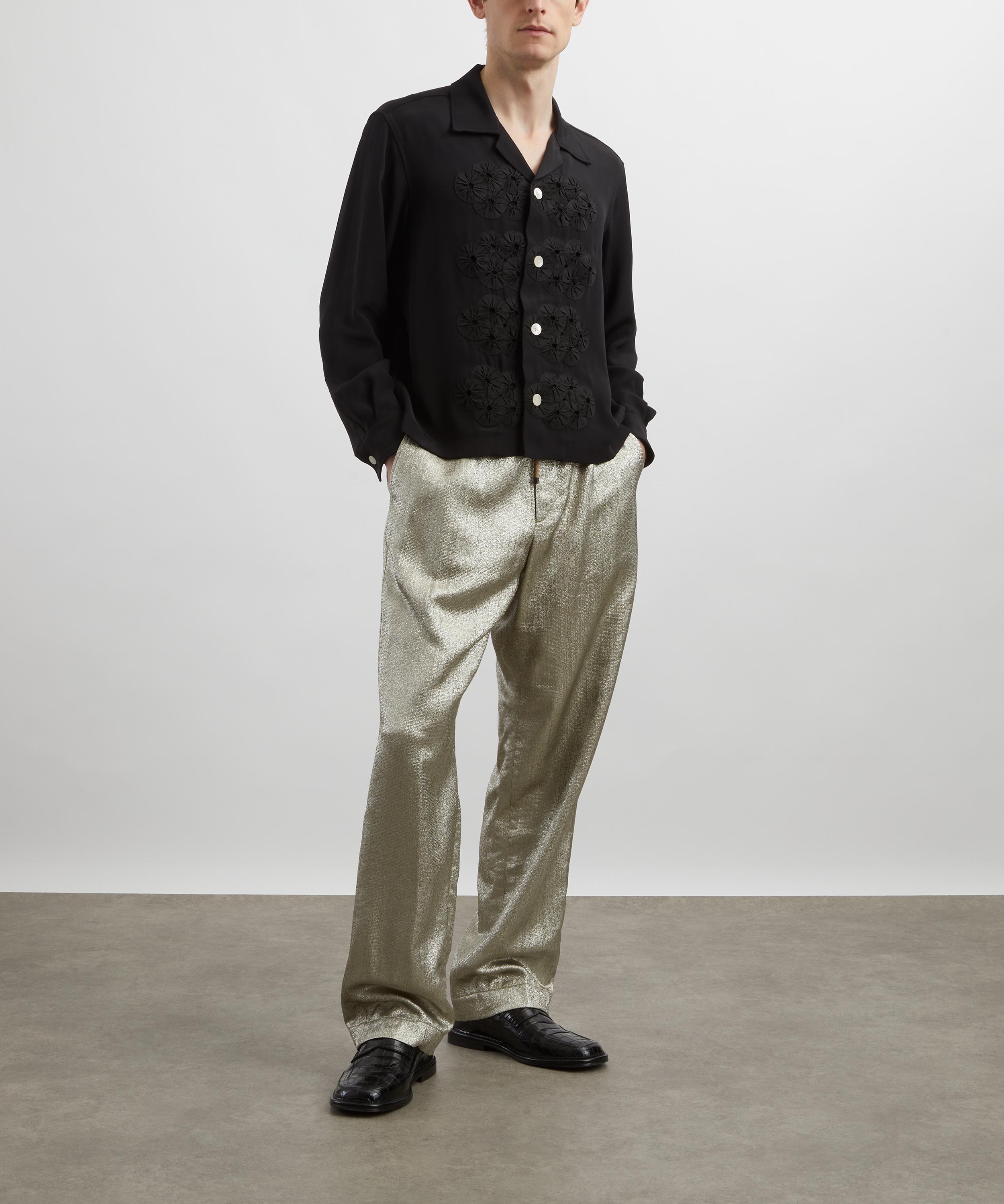 Inspired by a jockey jacket with ribbon appliqués worn by a leading American jockey in 1900, this silk shirt features intricate appliqué work, showcasing the brand’s commitment to exceptional quality. Effortlessly refined, it’s designed for a relaxed fit with an open camp collar.