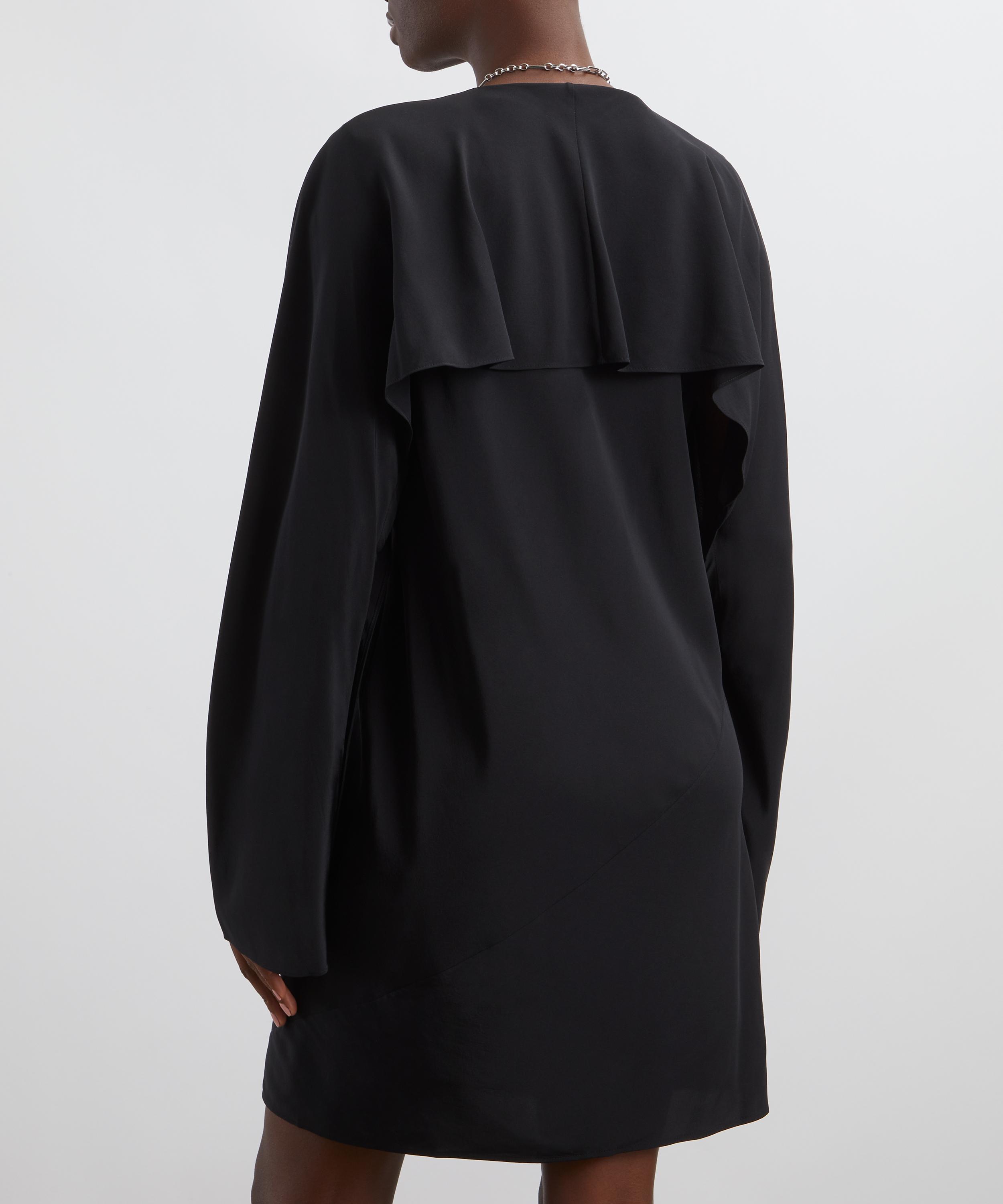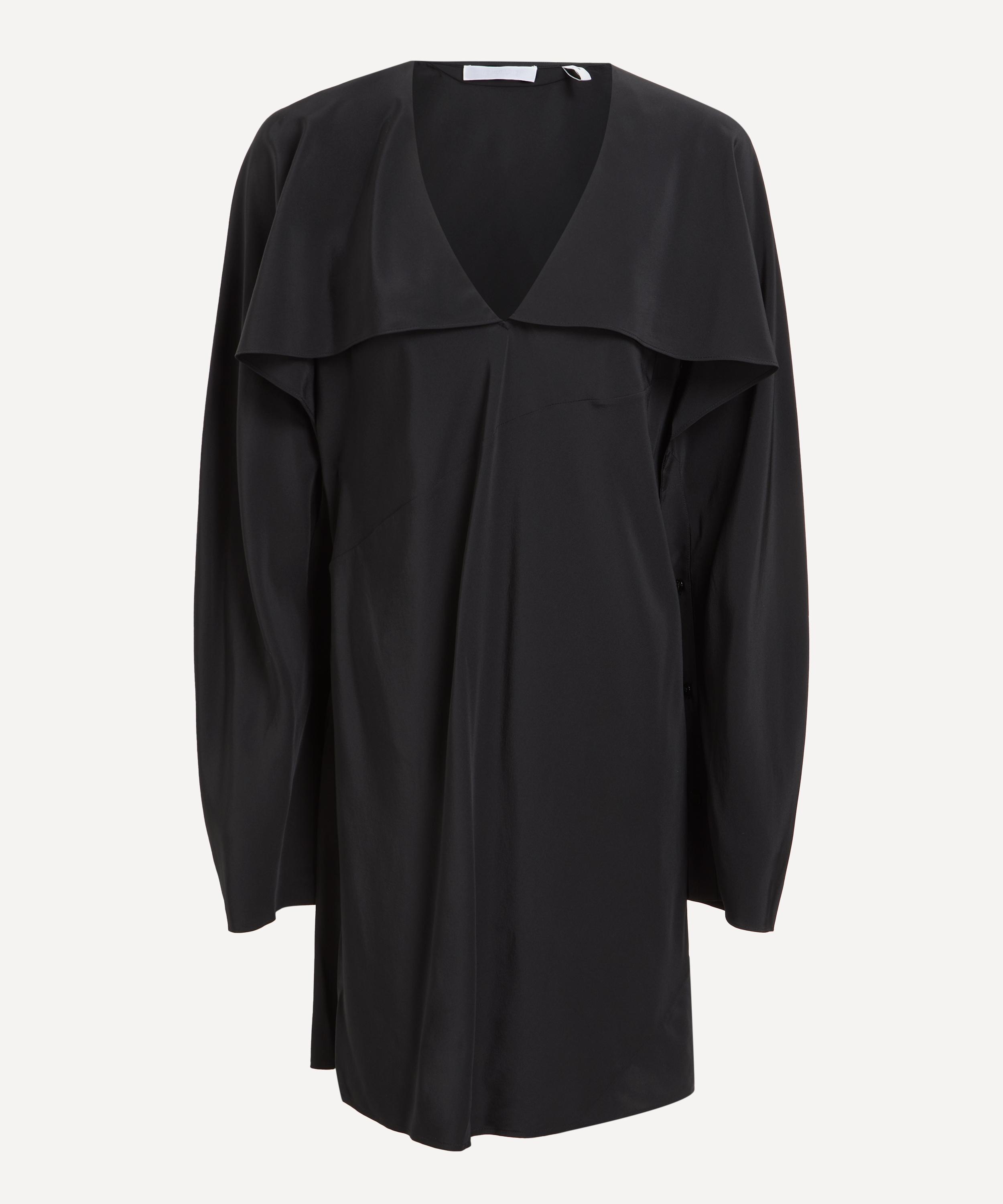 Effortlessly sophisticated, this bias-cut mini dress is made from silk crepe de chine. With a relaxed fit, draped long sleeves, and a plunging V-neckline, its versatile design allows you to wear the sleeves loose like a cape or wrapped as a scarf.