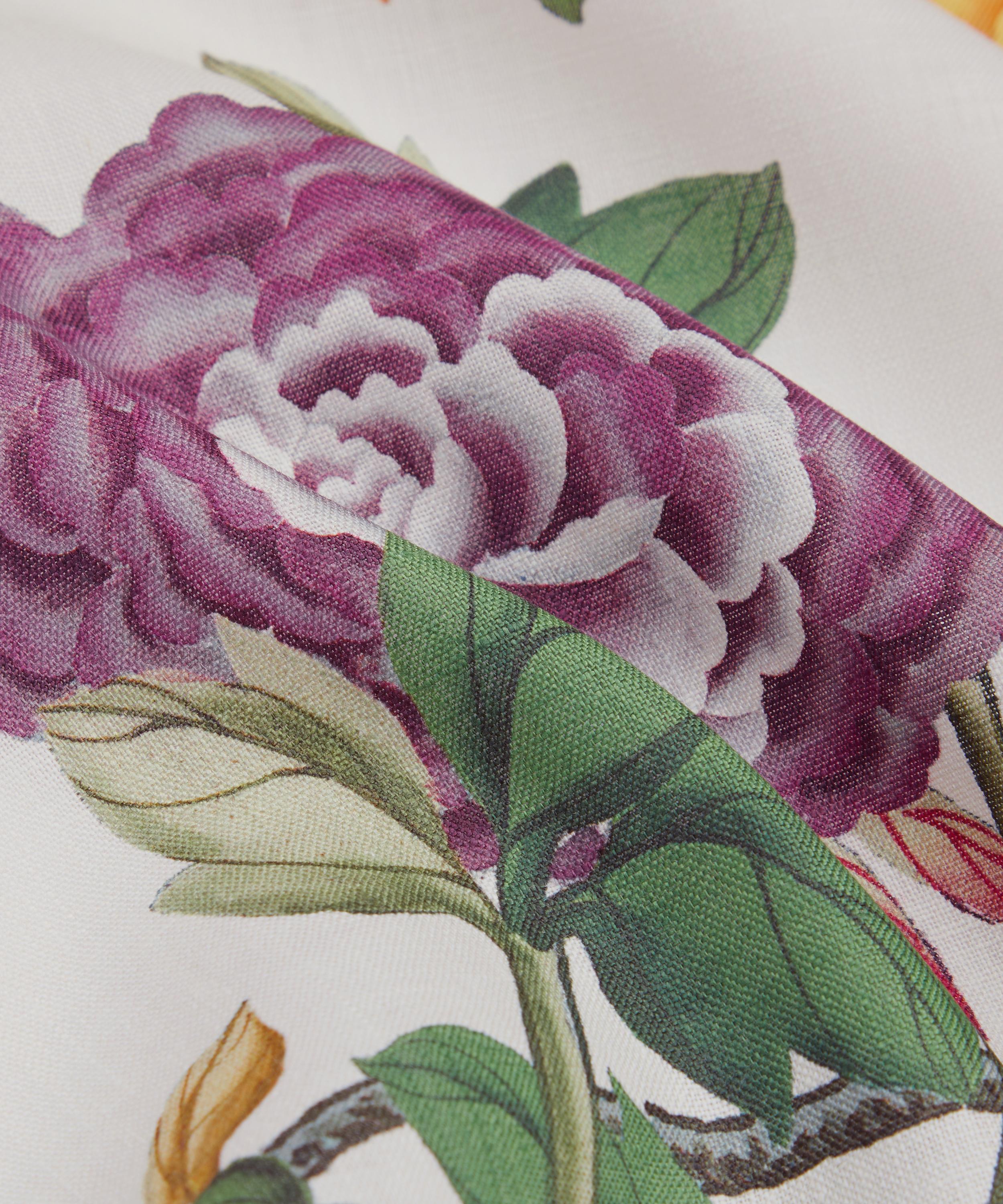 For this print, experts in traditional Chinese silk painting techniques were commissioned to create an artwork using metallic silk paper. Reworked into a scenic panel by the Liberty Design Studio, Silk Tree features a joyful canopy of trees and bamboo branches, decorated with birds, butterflies, Persian silk tree flowers, Chinese physalis, amaryllis, and peonies. The design is expertly printed in Italy onto our Marlowe linen – a superlight, crisp base designed to beautifully highlight our fine-scale prints. Made from pure linen, this is a great option for drapery, window dressings or even a striking, statement curtain panel for interiors, creating maximum light and brightness.