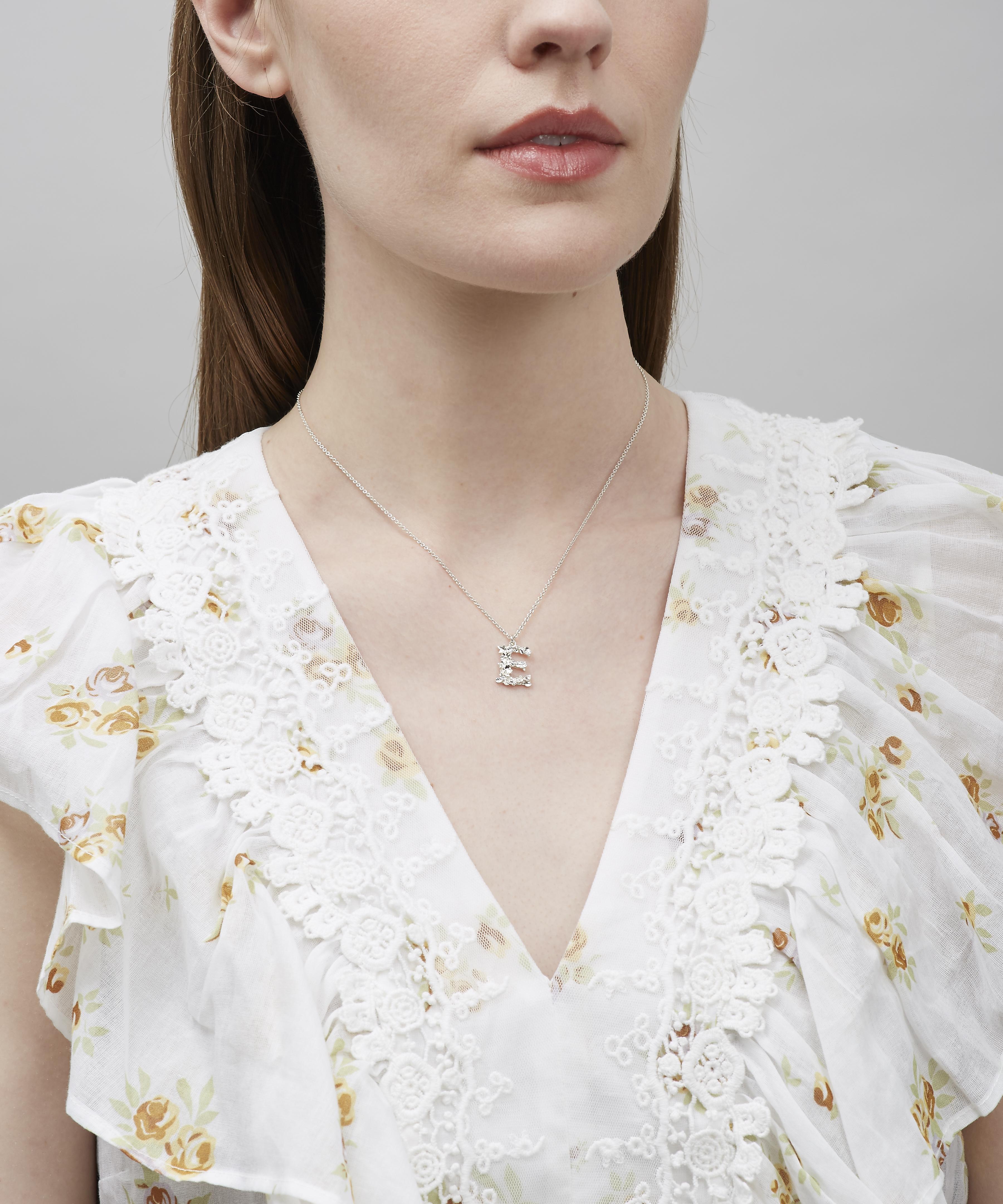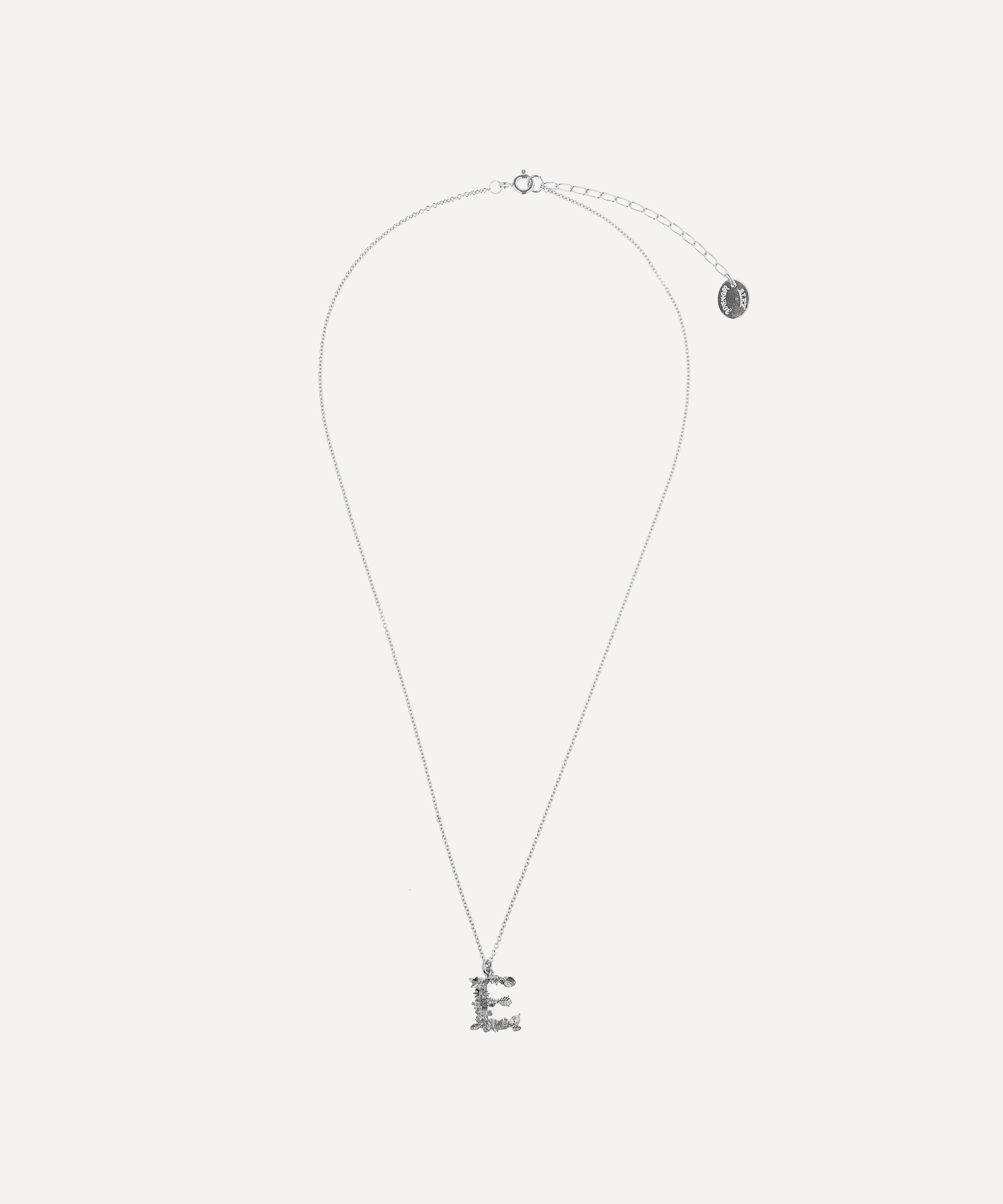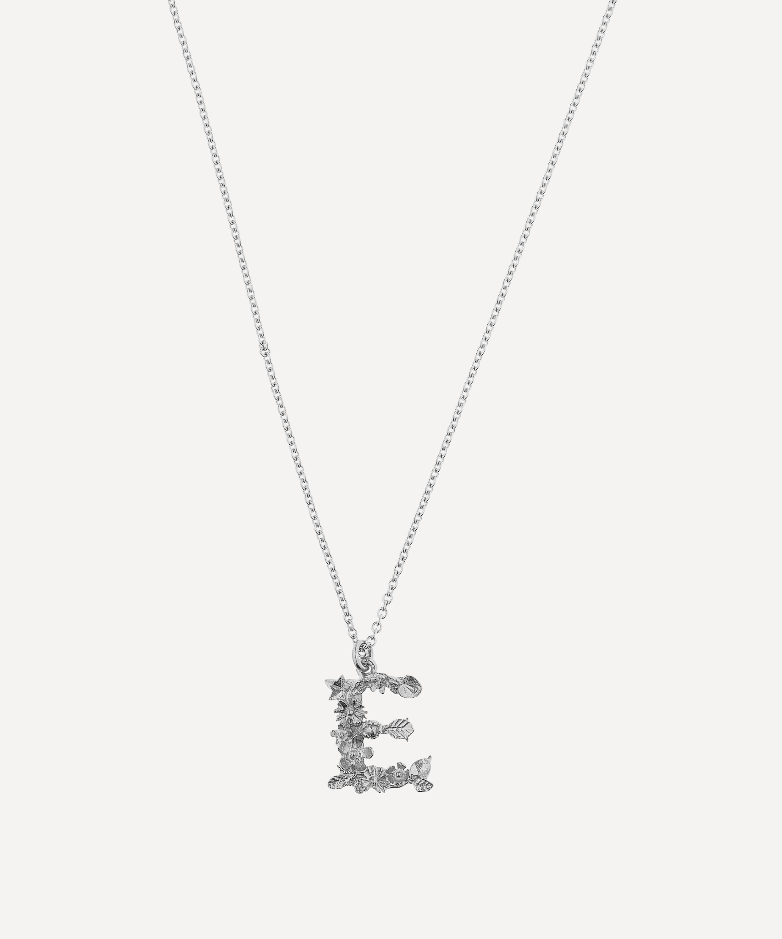 Silver Floral Letter E Alphabet Necklace
