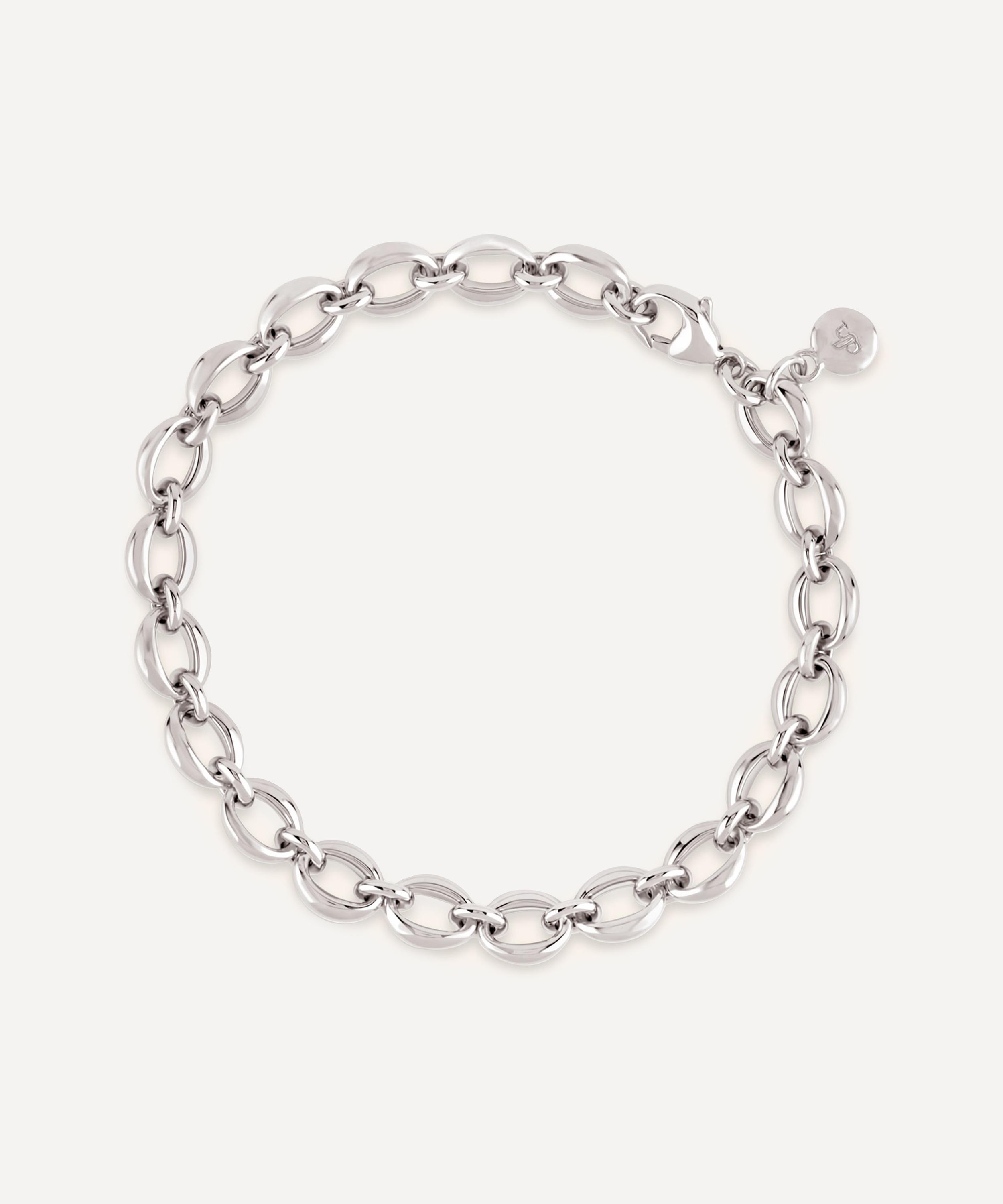 A contemporary reworking of the original handmade chain issued by Dinny Hall in the '90s, this bracelet showcases a series of small and larger links, each one hand-carved from wax, cast in solid silver, polished and soldered. Finished with an easy-to-use lobster clasp and 'dh' logo-engraved tag, its versatile form is ideal for styling solo, stacking with additional bracelets or decking with charms.