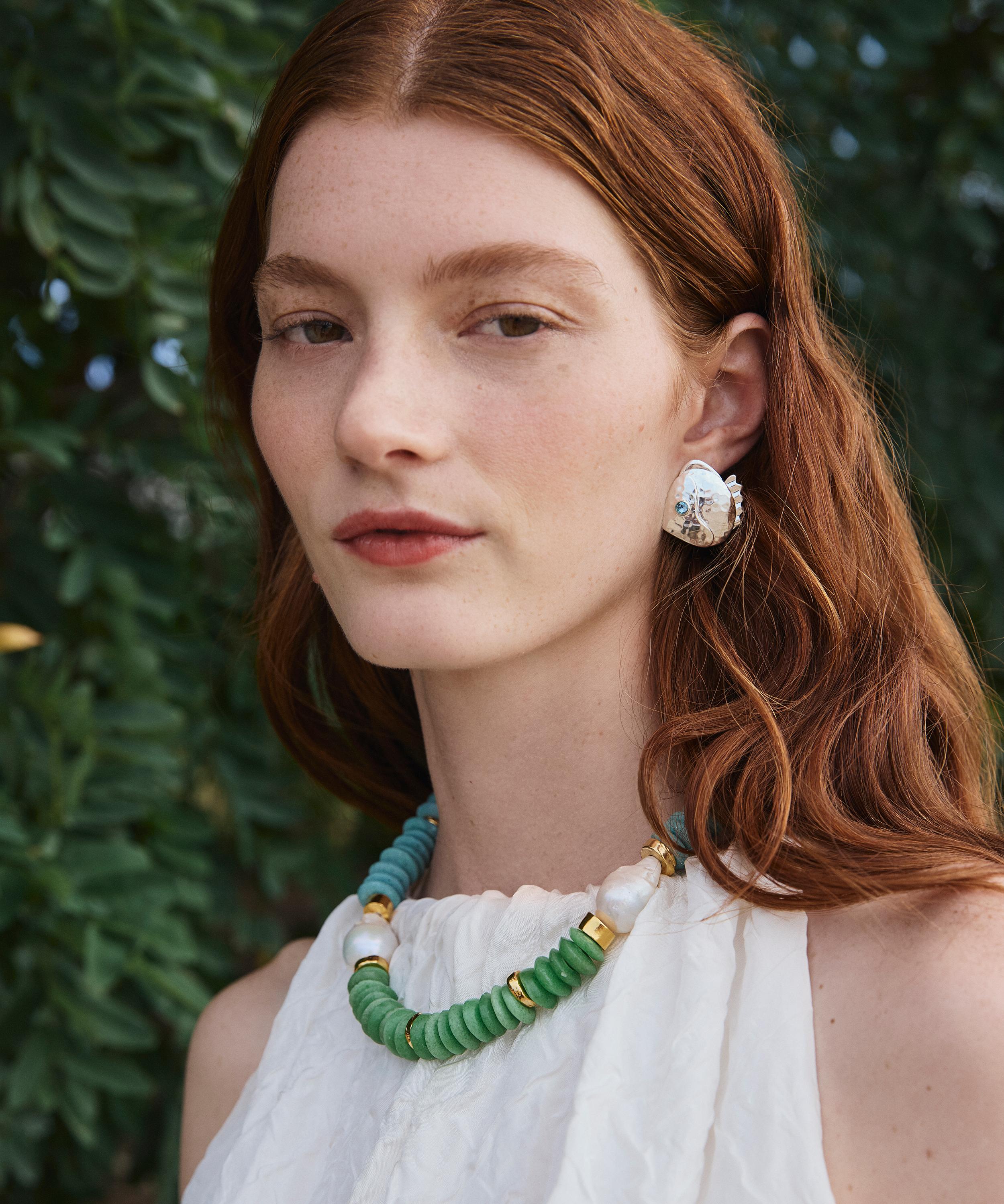 Informed by a long-held love of travelling, Lizzie Fortunato brings vibrant optimism to daily dressing with the charming Mikuni stud earrings.