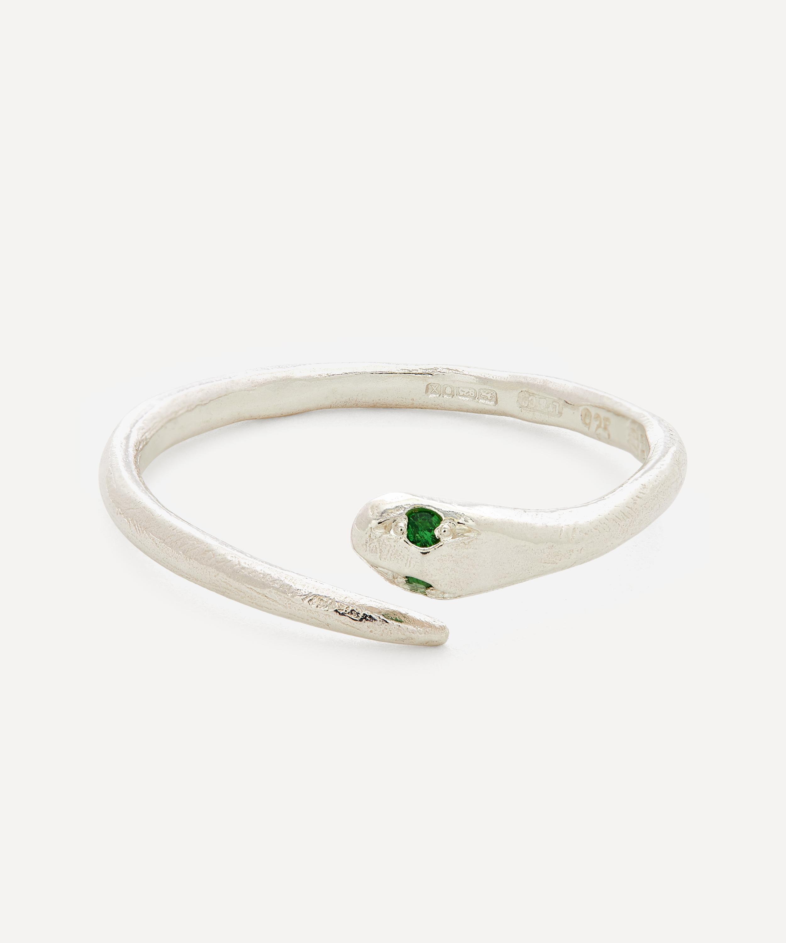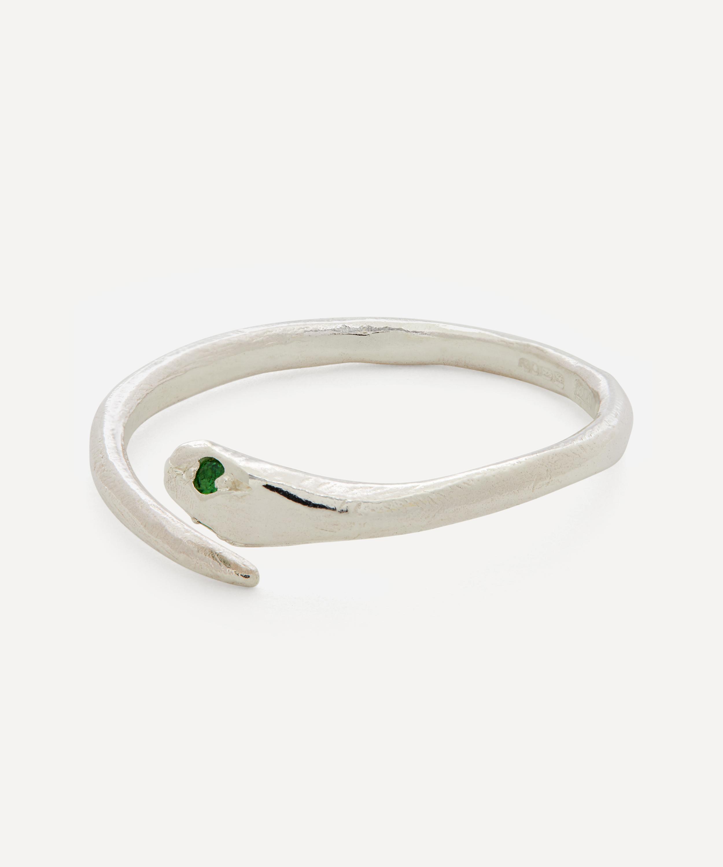 Silver Tsavorite Garnet Serpent Ring