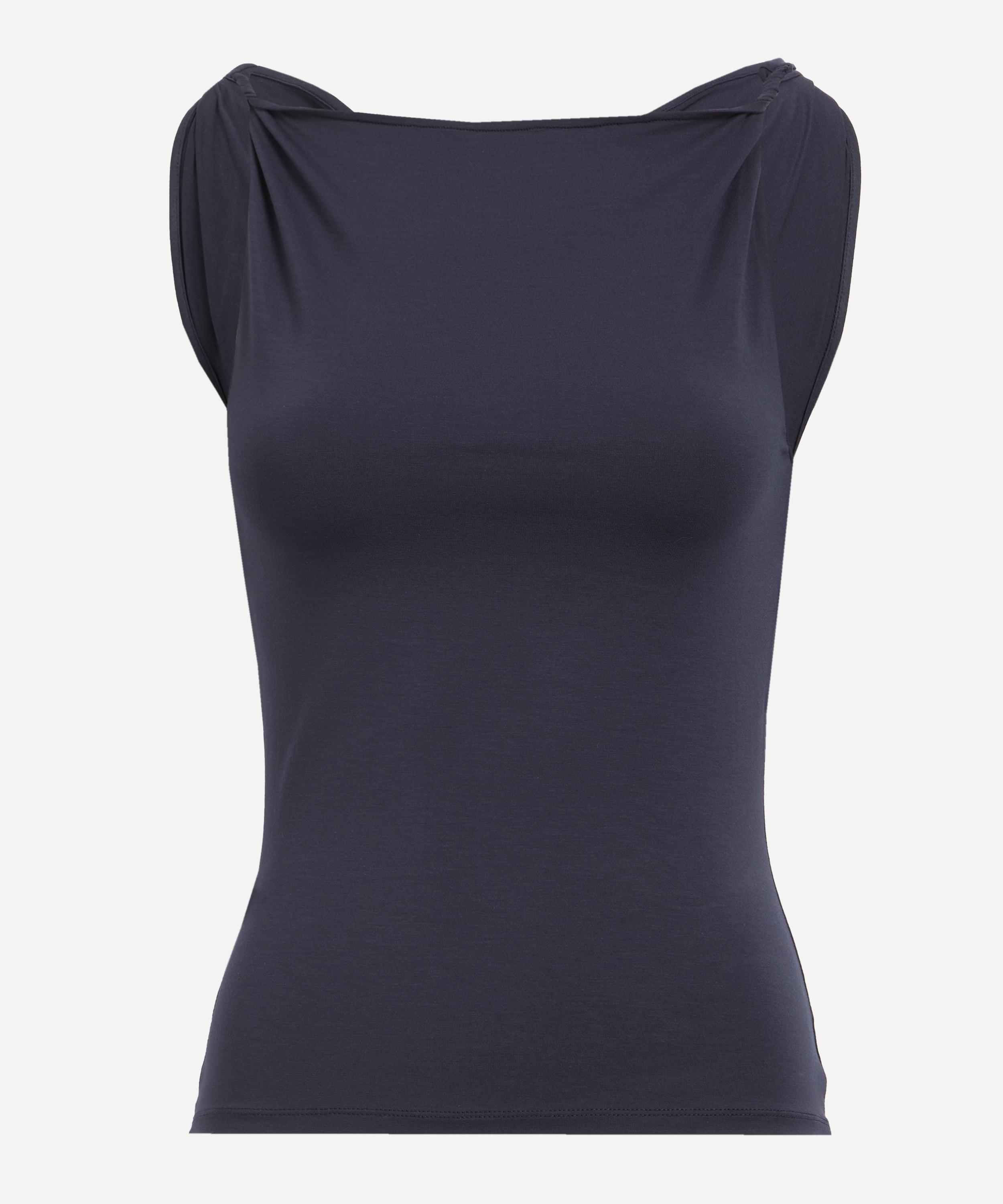 Crafted from luxuriously soft micromodal fabric, the Simp Top showcases an elegant boat neckline and artfully twisted shoulder details.