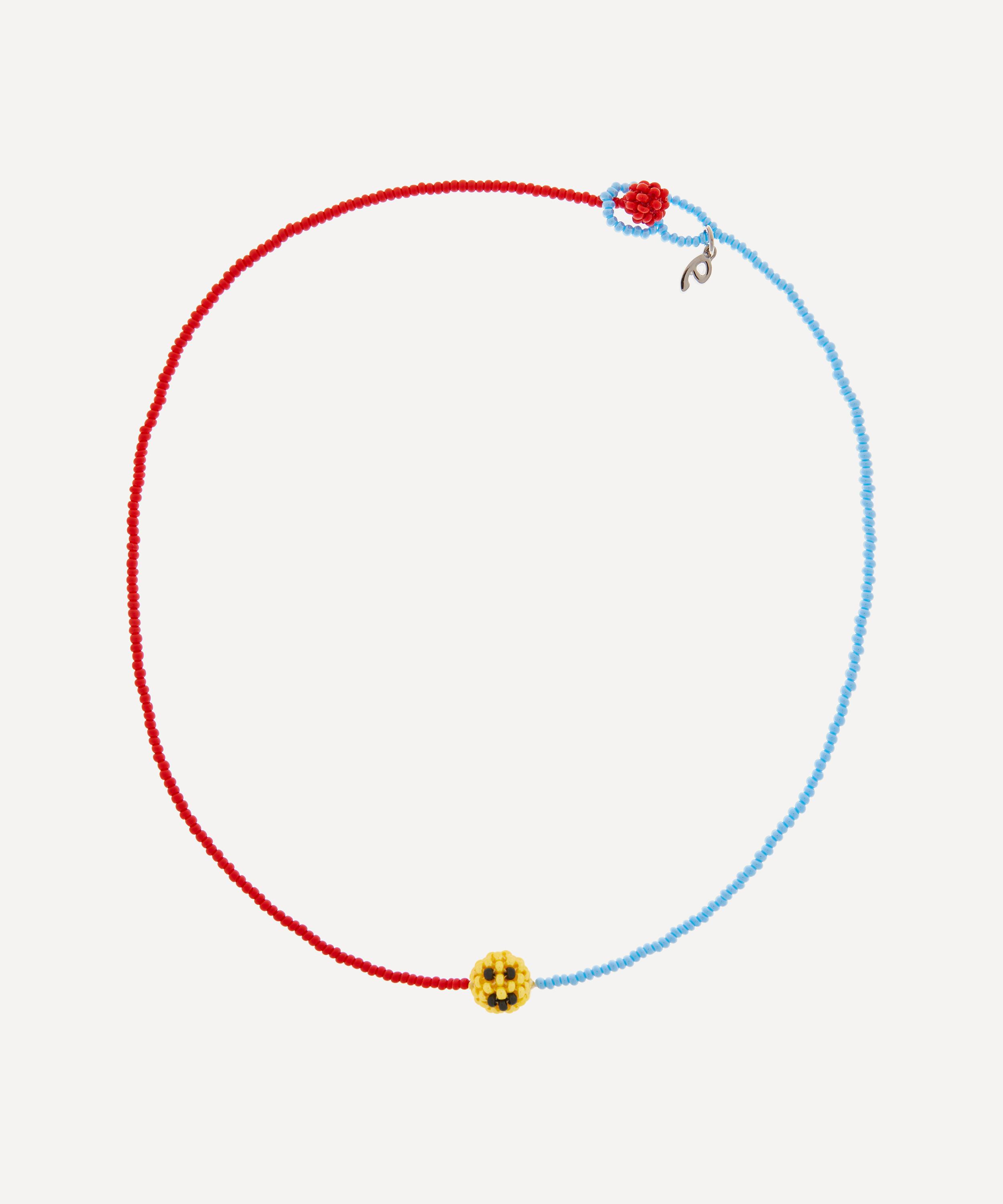 Boasting a delectable composition, this necklace is part of Pura Utz Simple Simple collection, featuring a new take on their renowned bead designs. Handmade by skilled artisans in Guatemala, this exclusive necklace is formed of a block beaded chain, made entirely from red and blue glass beads with a beaded happy face charm as the lock. Offering a fun and playful way of accessorising, style this necklace solo, or mix and match with other styles from the brand.