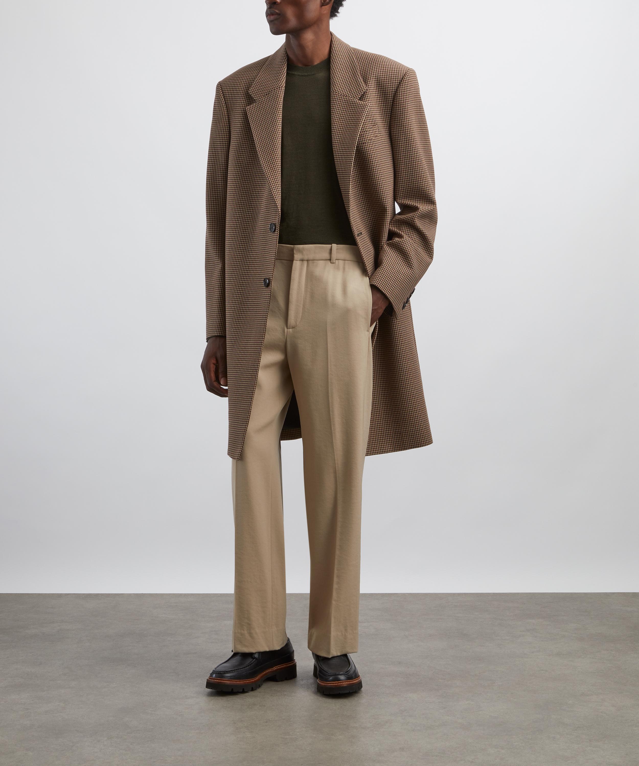 Crafted from wool with a classic houndstooth pattern, this tailored coat features a single-breasted silhouette with structured shoulder pads, a button placket, and two front pockets - offering a timeless, refined finish.