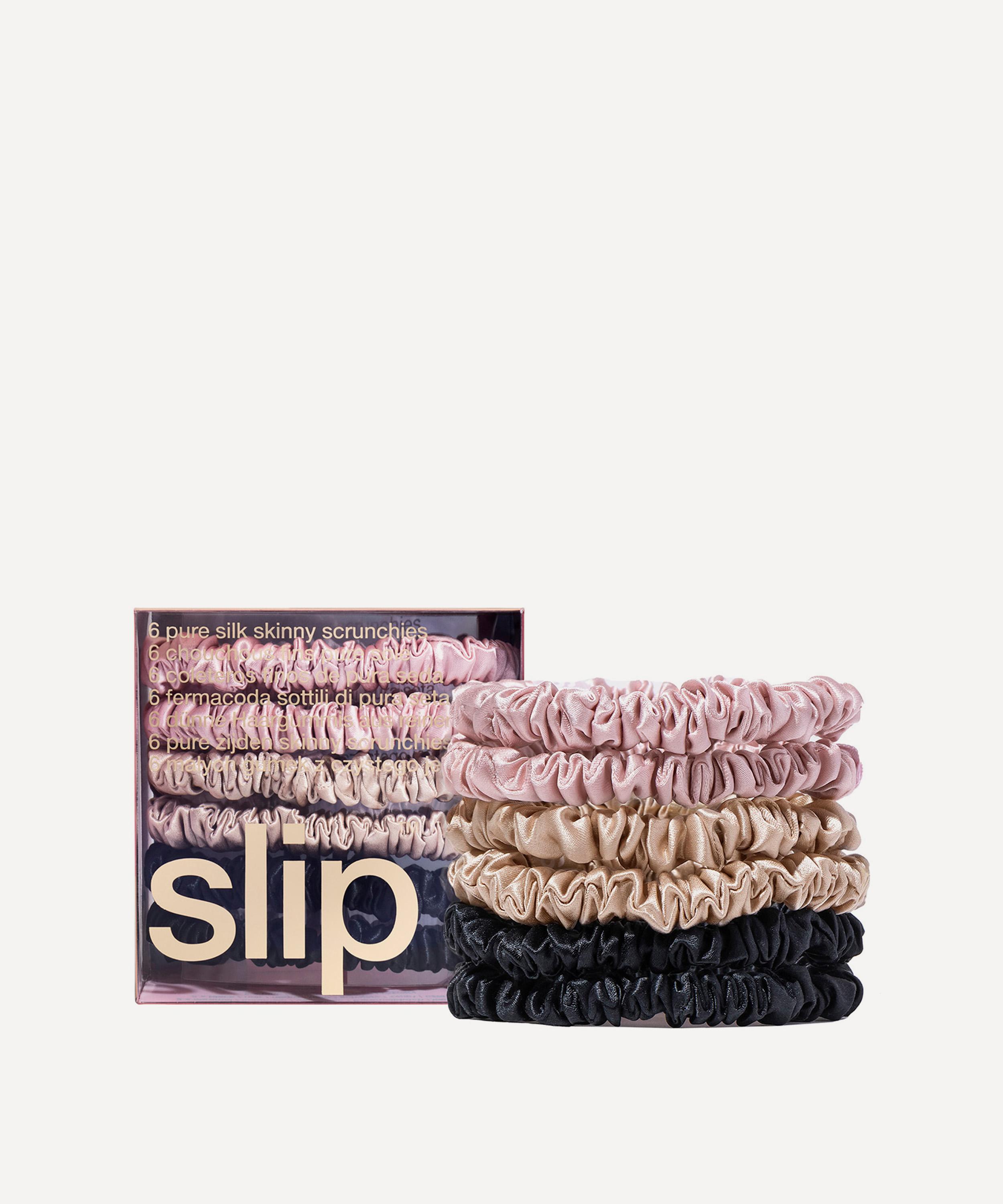 Originally developed for the award-winning pillowcase, skin-loving slipsilk™ is an innovation in silk which is gentle on skin and hair to preserve optimum health and shine. Covered with the highest grade 22 momme long fibre mulberry silk, Slip's elasticated hair tie is specially designed to comfortably hold hair taut without creasing, pulling, damaging or causing disturbance to styling. This pack of six features an assortment of colours that'll always match your outfit.