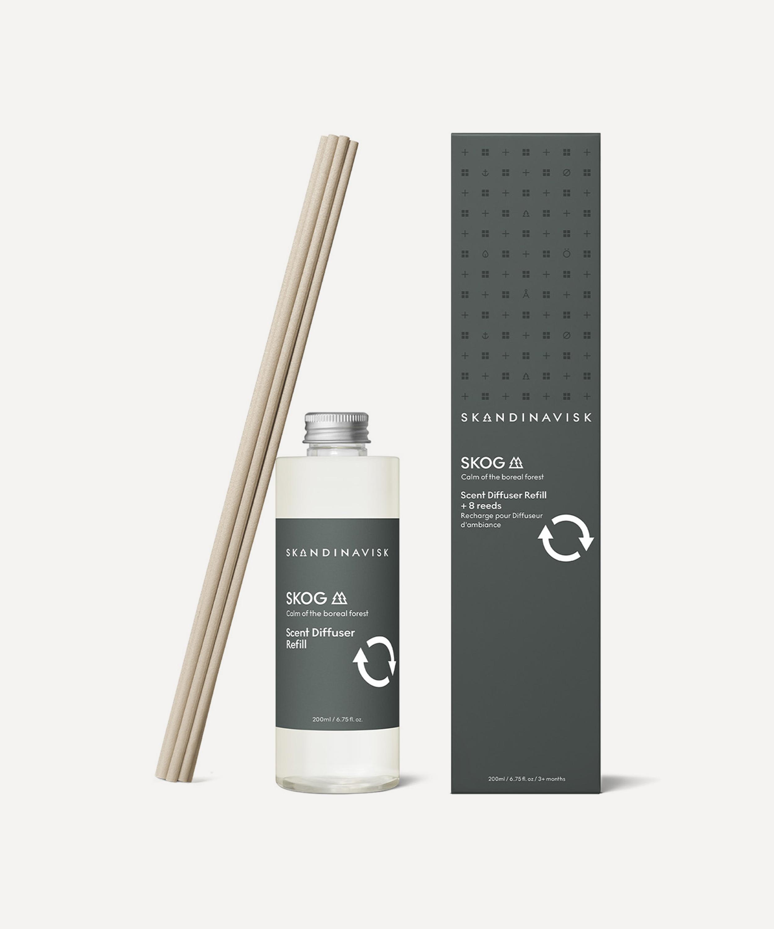 Replenish your beloved SKOG reed diffuser from Skandinavisk with this refill of the deeply calming fragrance, with native green notes cast over woods and musk.