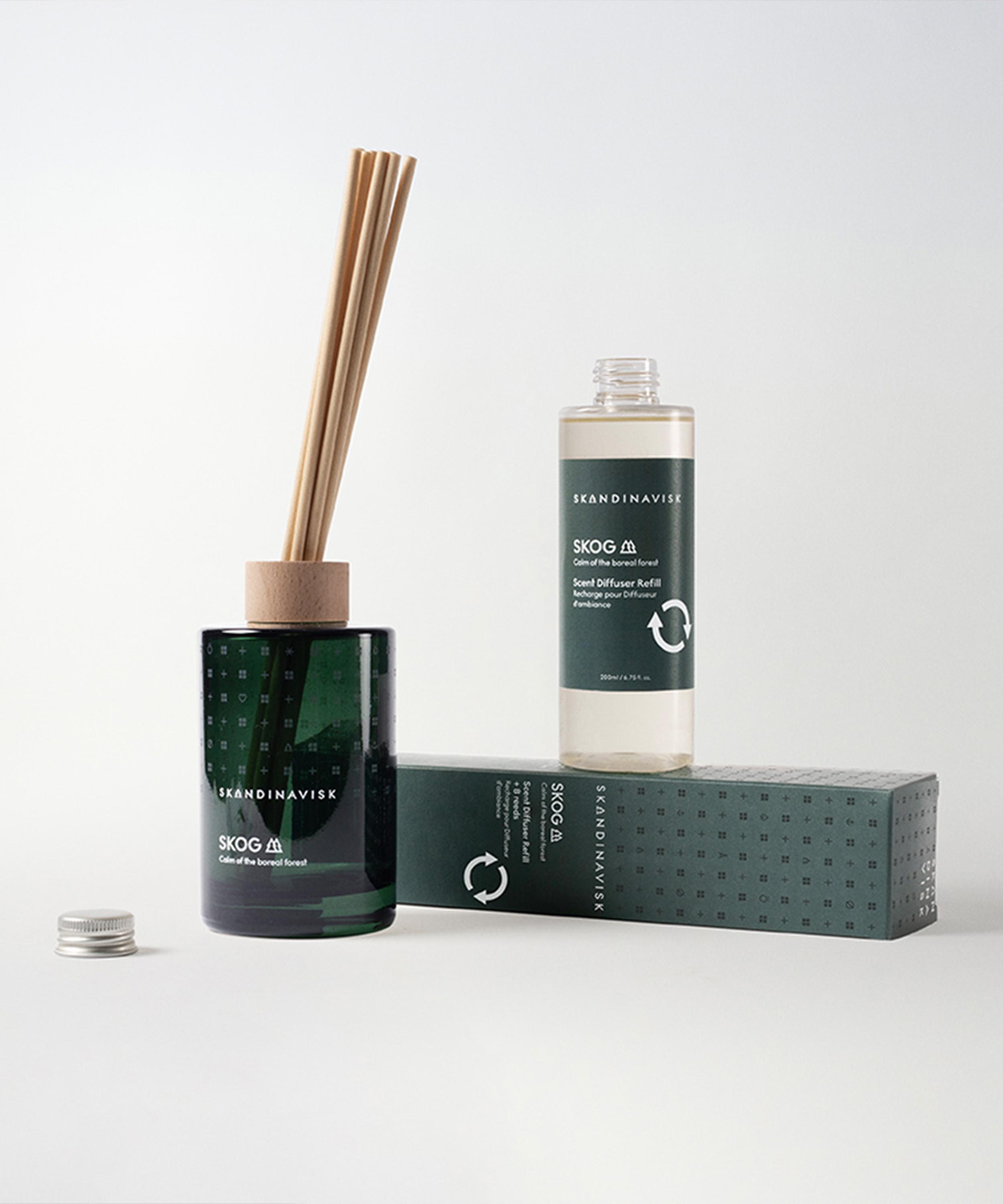 Named after the Norwegian and Swedish word for 'forest', SKOG captures the dense aromas of the lush landscape, evoking a morning mist of spruce and pine needles, woodland blooms of lily-of-the-valley, musk and aged leather – a calming fragrance experience and a blissful sense of wellbeing.