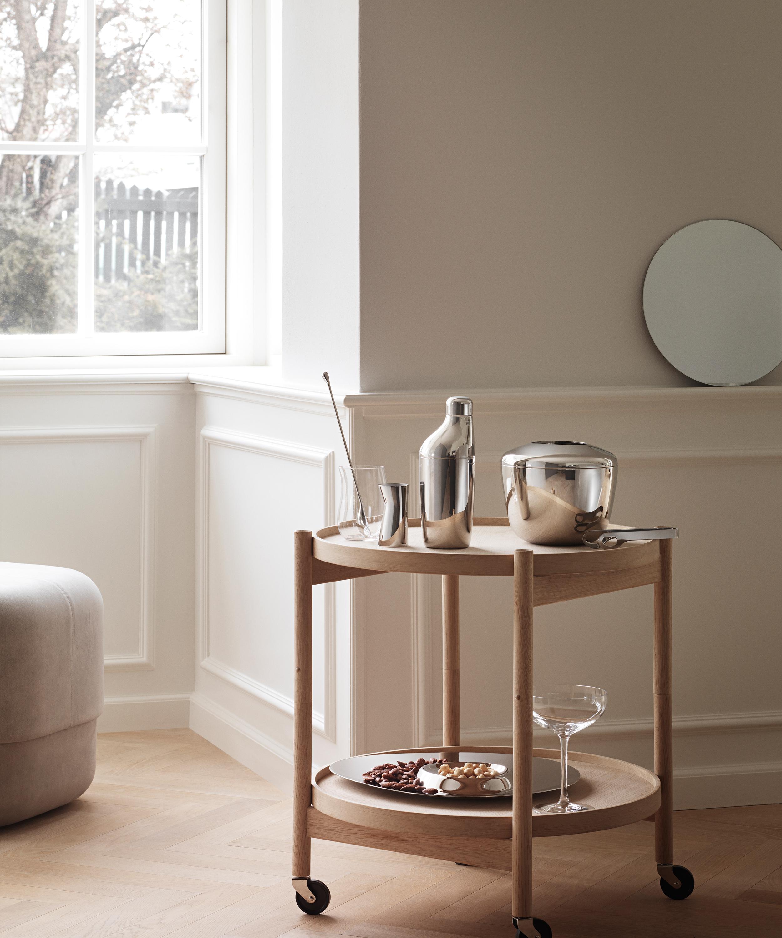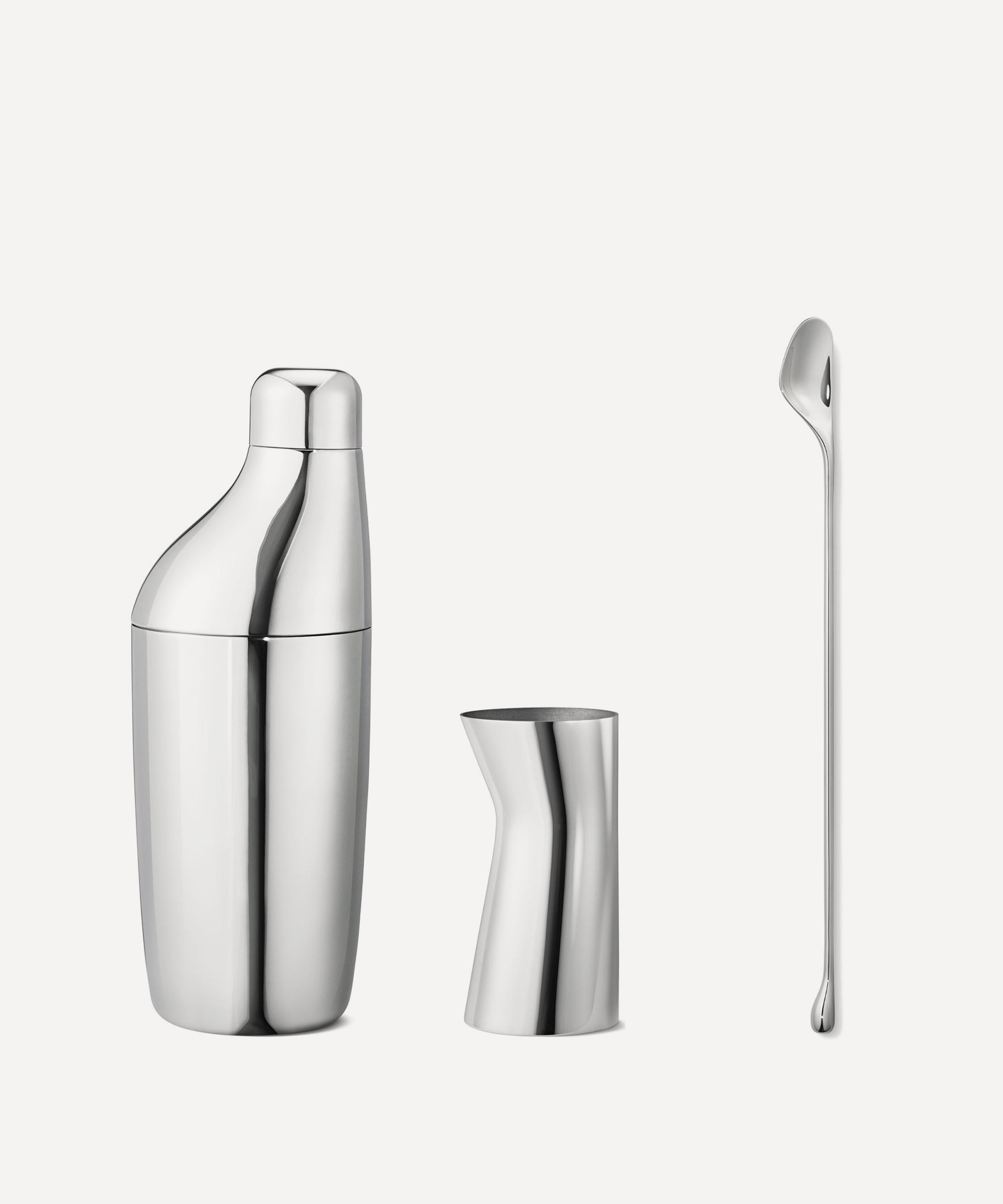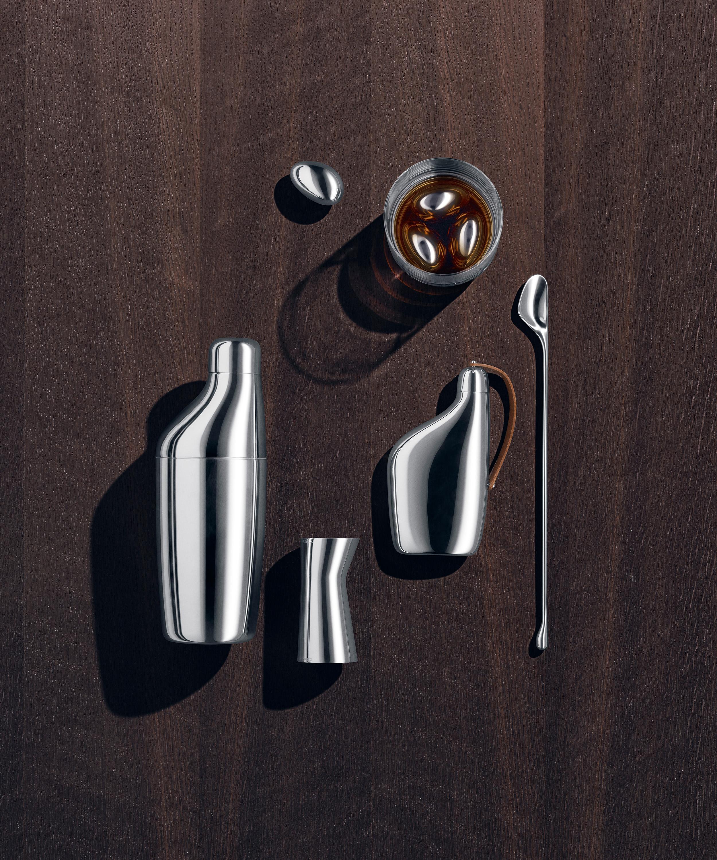 Dedicated to presenting democratic designs possessing both functionality and beauty, the Sky set from Georg Jensen, featuring a cocktail shaker, stirring spoon and measuring jigger, boasts a sleek addition to your serveware staples.