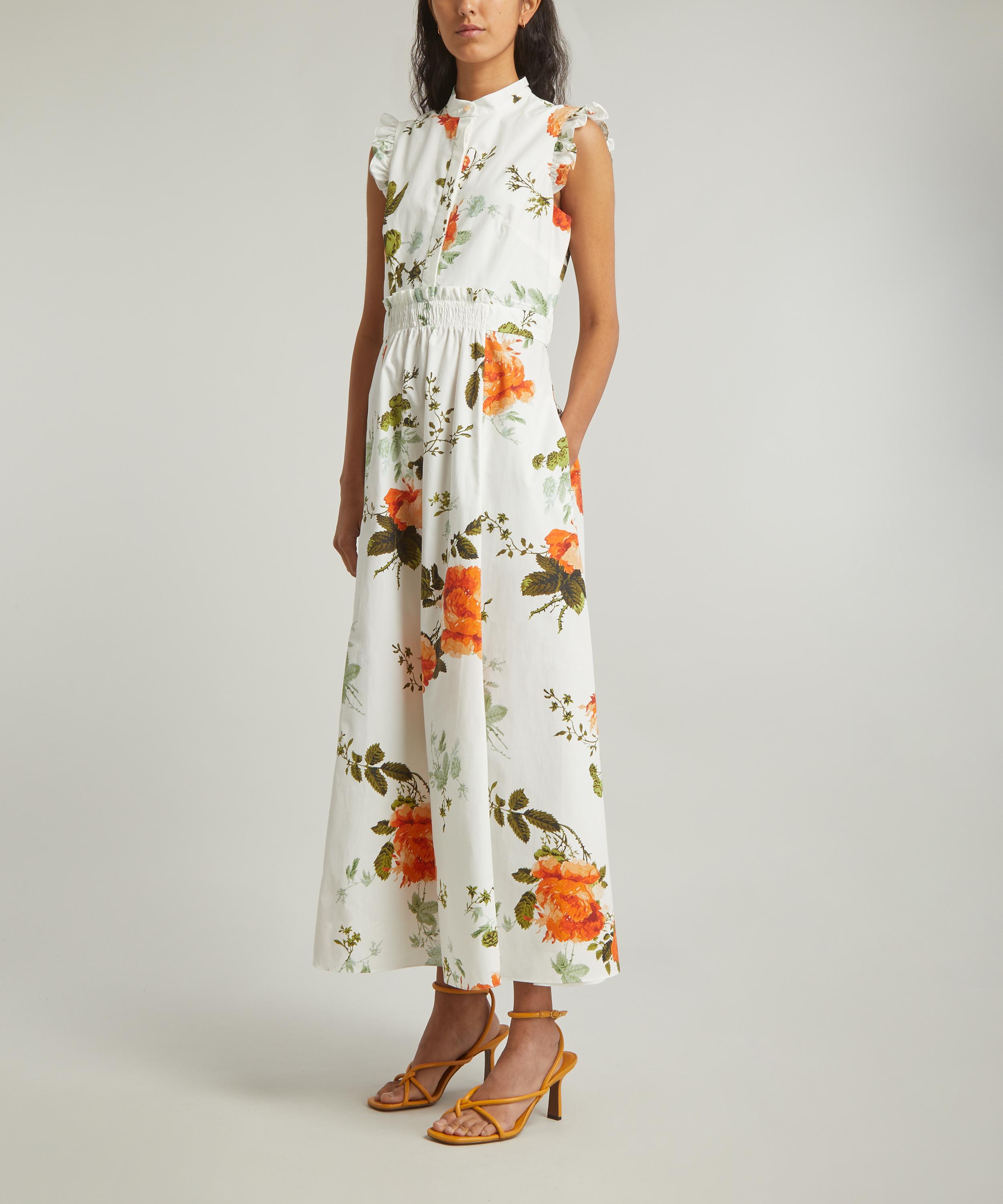 Effortlessly feminine with a playful twist, this rose-adorned Sleeveless Midi-Dress from Erdem translates the brand’s penchant for untamed florals.