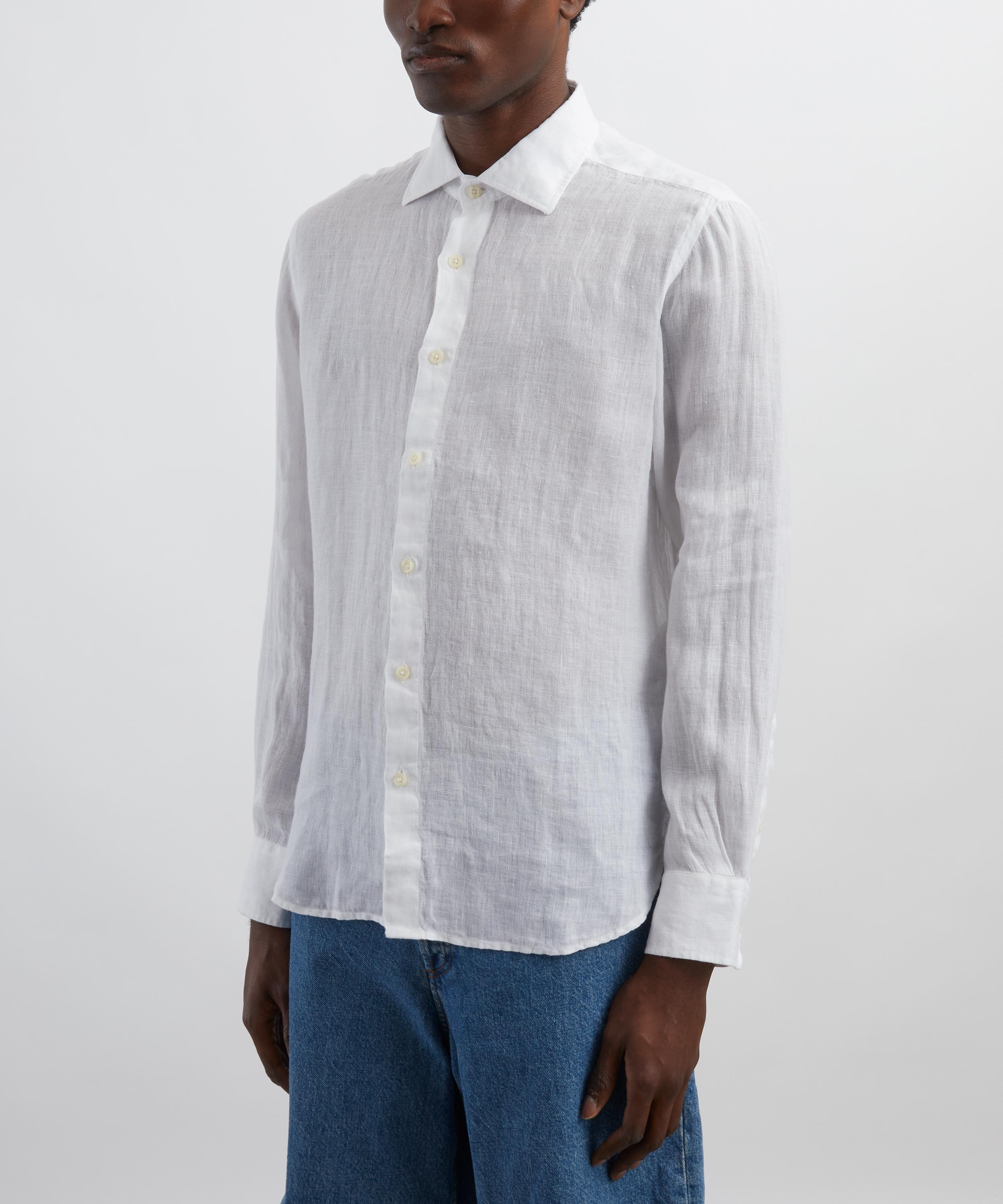 Inspired by British tailoring and crafted in Italy, this Slim Fit Linen Shirt from 120% Lino combines timeless design with exceptional craftsmanship.
