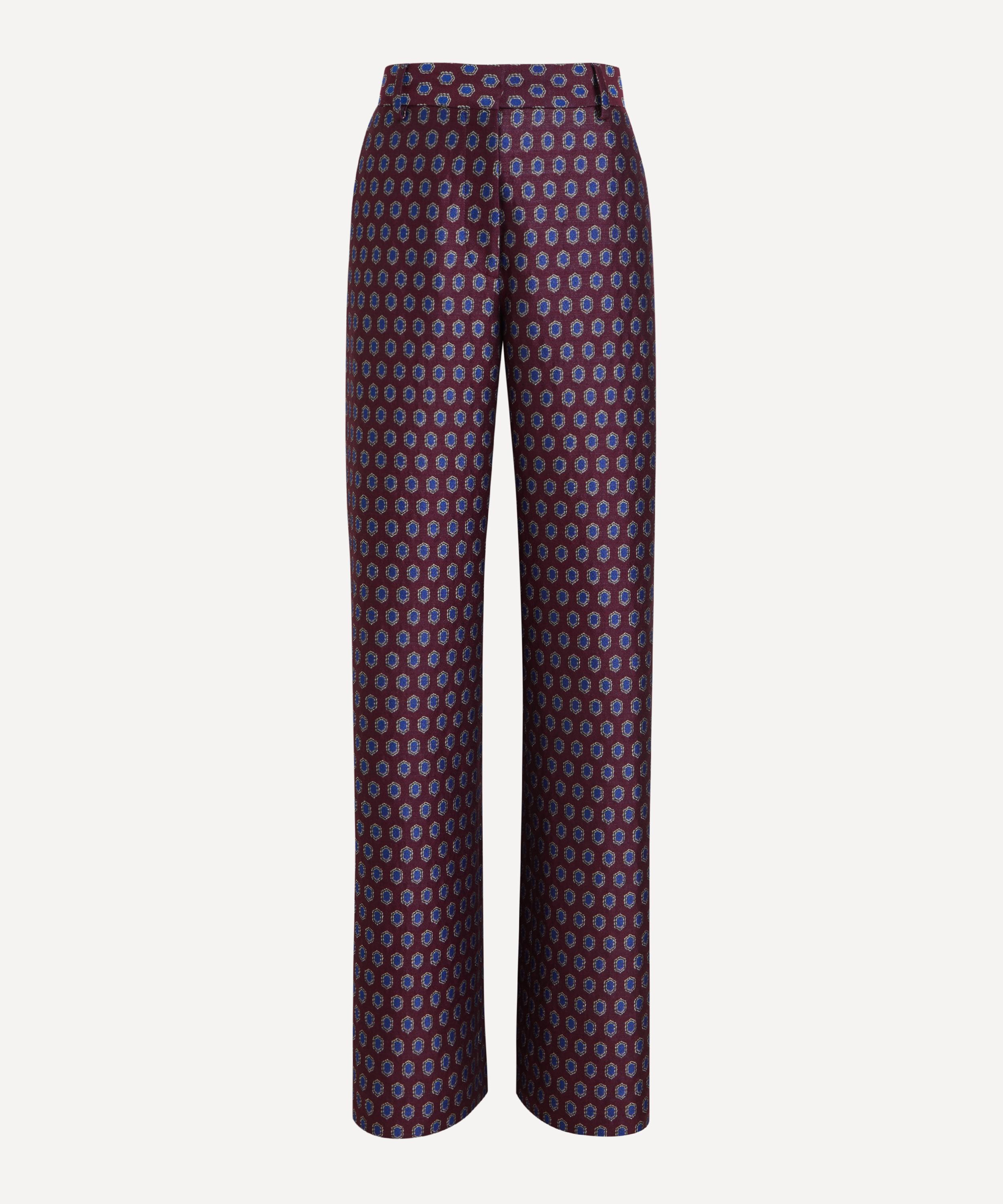 Tailored in a classic straight-leg silhouette, these trousers are cut from jacquard featuring a tie-inspired print. A concealed zip-and-hook closure ensures a clean, modern finish.
