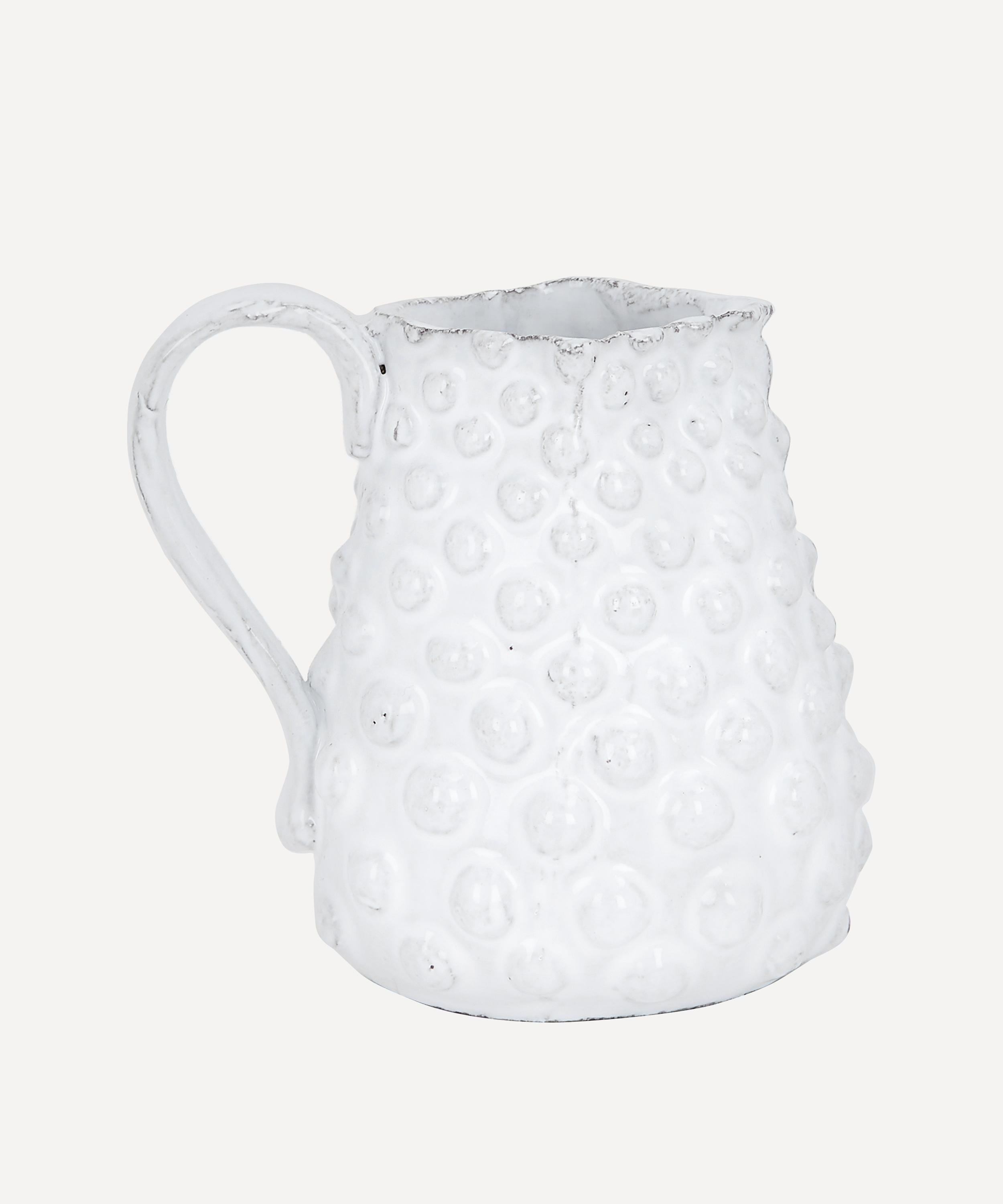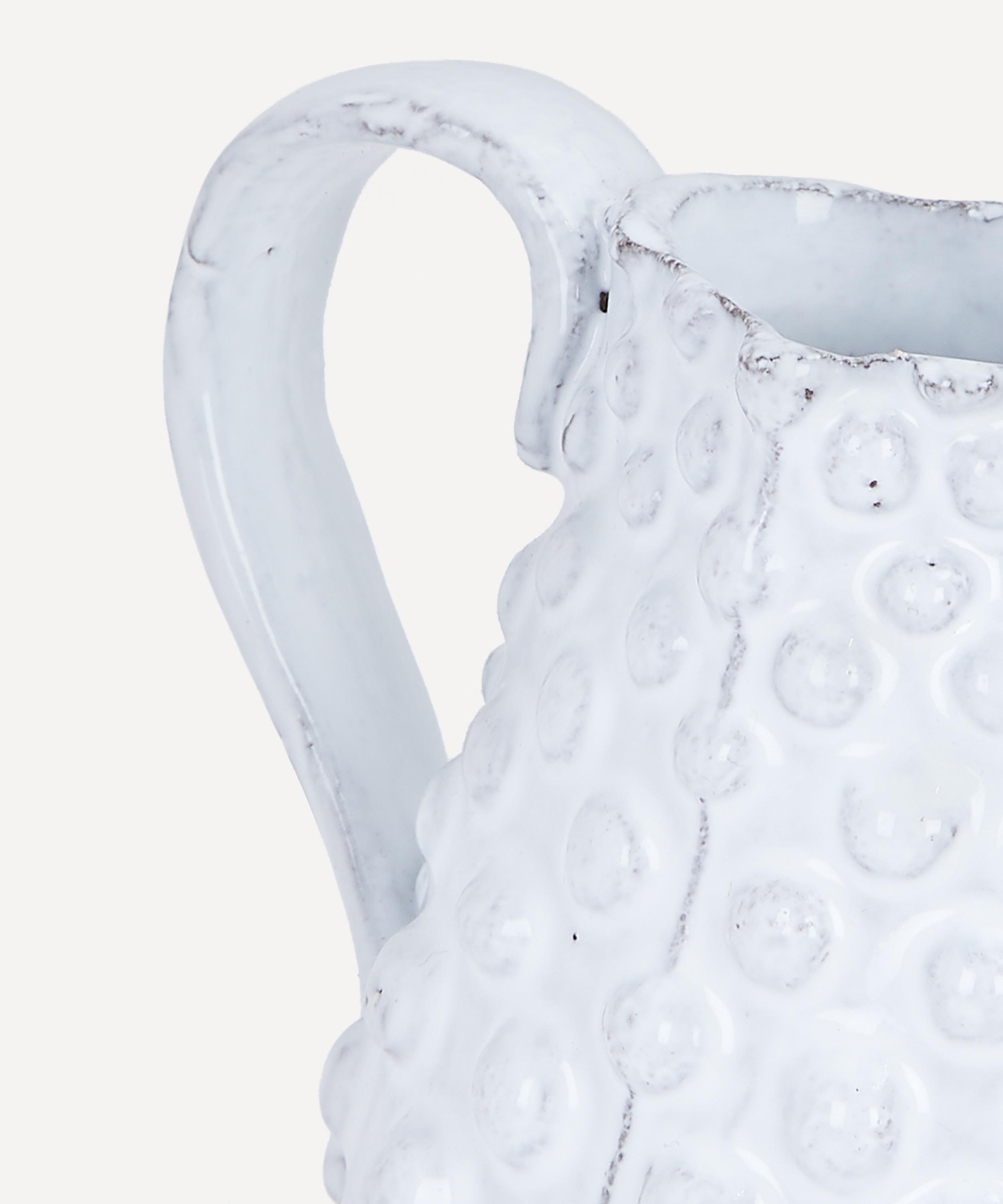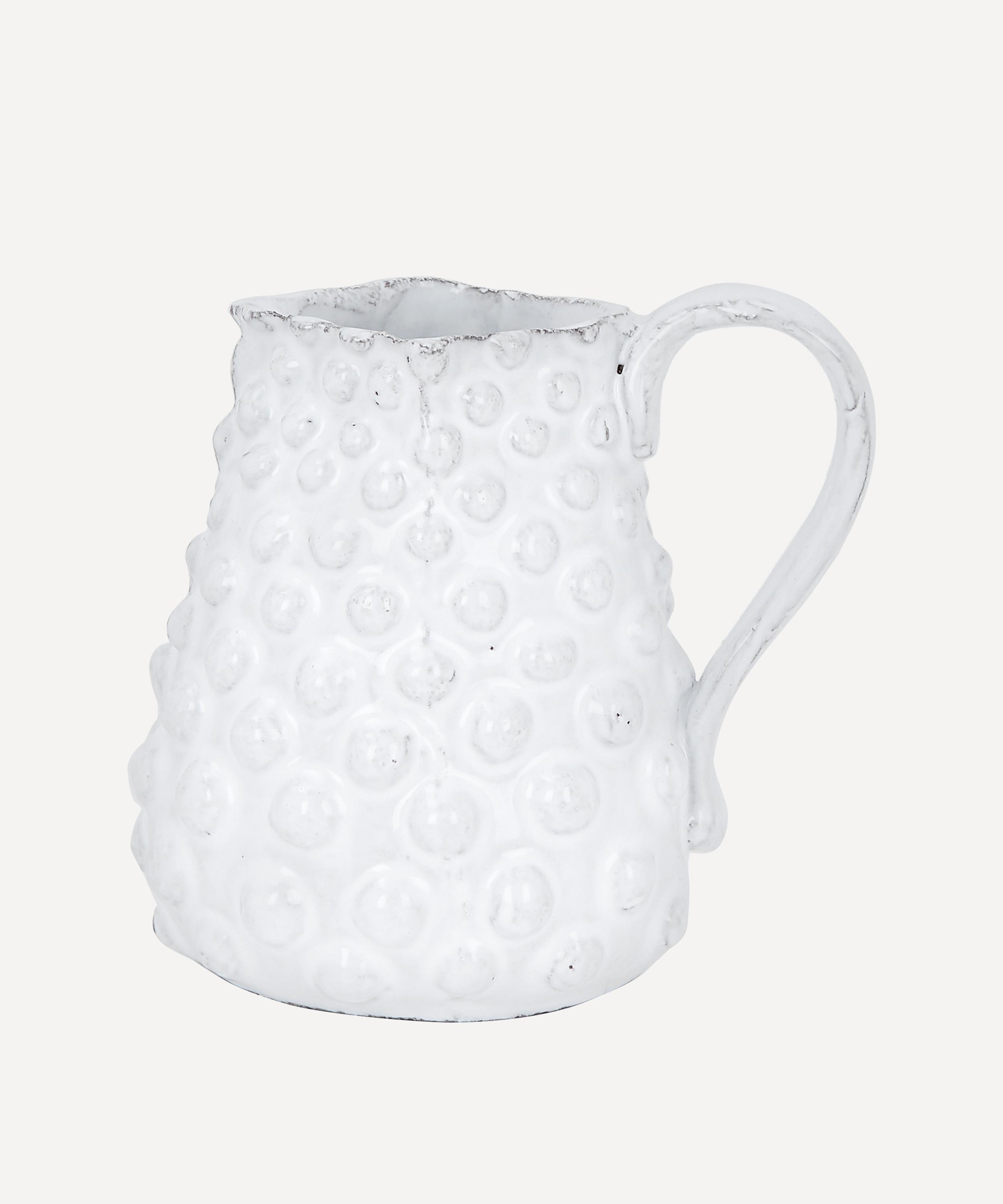 Votary of pre-industrial fabrication, Astier de Villatte is celebrated for being the one and only studio in Paris to hold and harbour the traditions of artisanal ceramic production. Restoring the ancestral systems of moulding and stamping, the Adélaïde pitcher is made using techniques from the Middle Ages which involve moulding a sheet of handmade clay, double firing the ‘biscuit’ piece and glazing the product in white enamel – a lengthy process that requires a drying time of up to one month. Characterised by its bulbous form and knobbly exterior, the Adélaïde jug is engraved with the brand’s signature crest - depicting an interlacing A & V - alongside the initials of one of the 40 master artisans who created it. Each handmade piece tells a beautiful story, it romances and imparts a sense of nostalgia into its owner. Arrange with other serveware in the collection to breathe an air of authenticity into your dining collection.