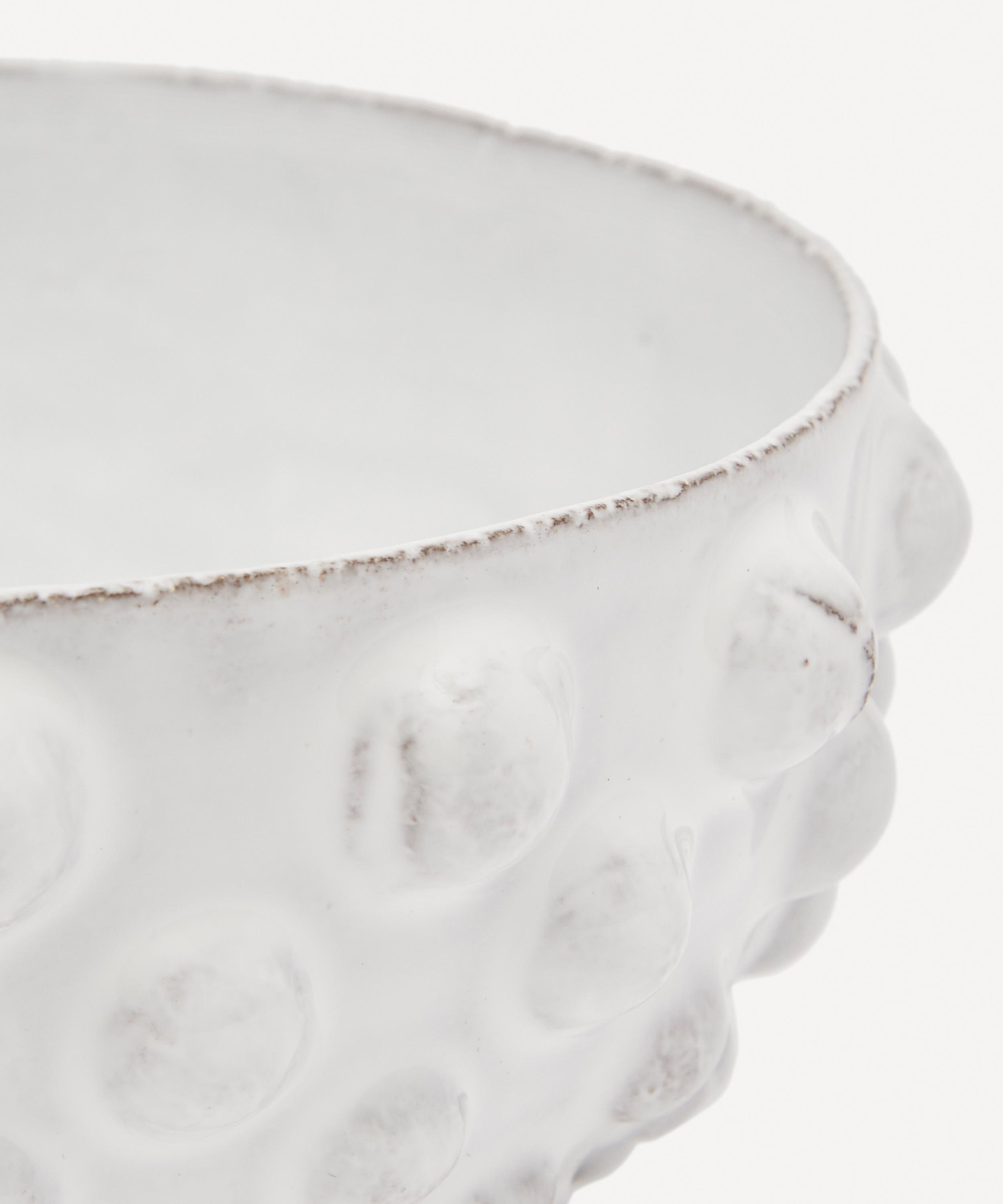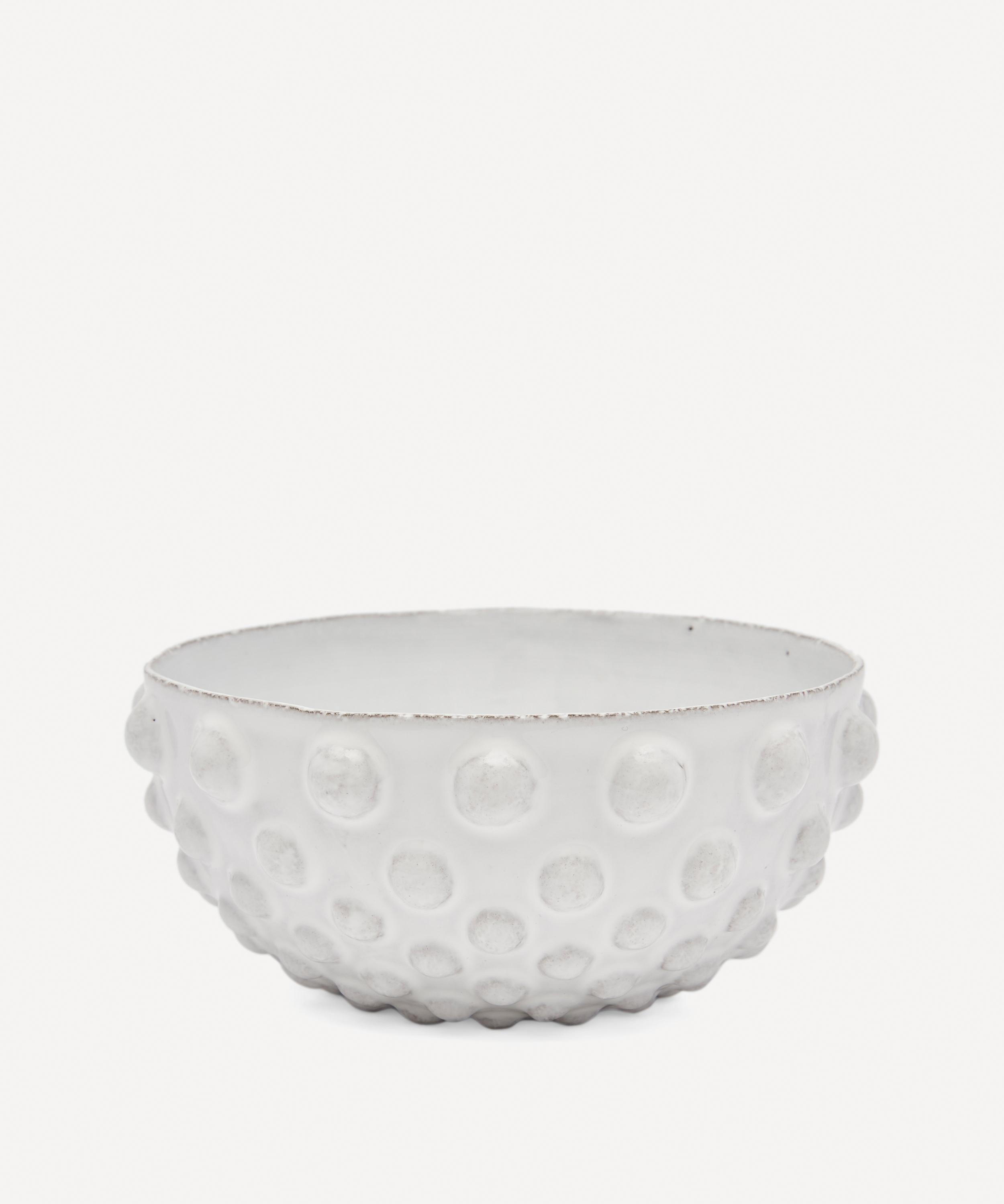 Votary of pre-industrial fabrication, Astier de Villatte is celebrated for being the one and only studio in Paris to hold and harbour the traditions of artisanal ceramic production. Restoring the ancestral systems of moulding and stamping, the Adélaïde salad bowl is made using handcrafting techniques from the Middle Ages which involve moulding a handmade sheet of clay, double firing the ‘biscuit’ piece and glazing the product in white enamel – a lengthy process that involves a drying time of up to one month. Characterised by a knobbly exterior and exposed clay, it is engraved with the brand’s signature crest - depicting an interlacing A & V - alongside the initials of one of the 40 master artisans who created it. Each handmade piece tells a beautiful story, it romances and imparts a sense of nostalgia into its owner. Arrange with other serveware in the collection to breathe an air of authenticity into your dining collection.